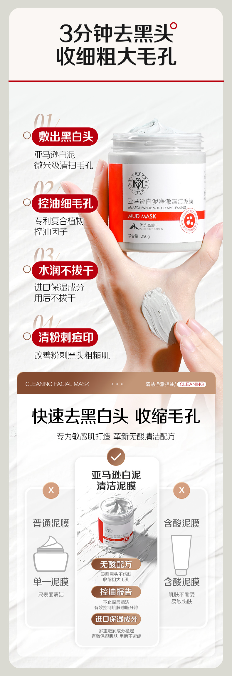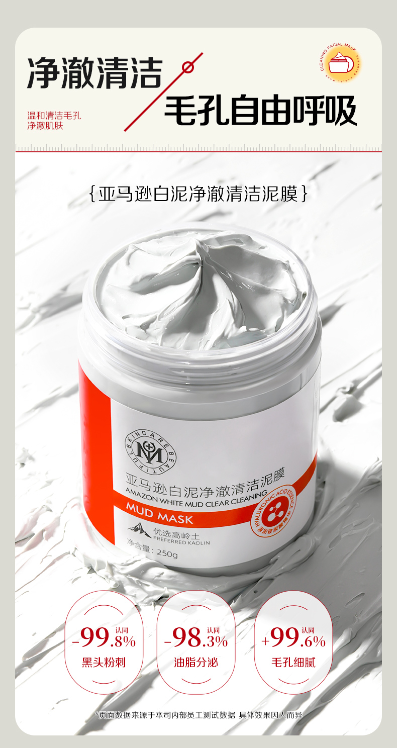 【微信会员专属】瑜然美亚马逊白泥净澈清洁泥膜去黑头收缩毛孔涂抹面膜官方旗舰店
