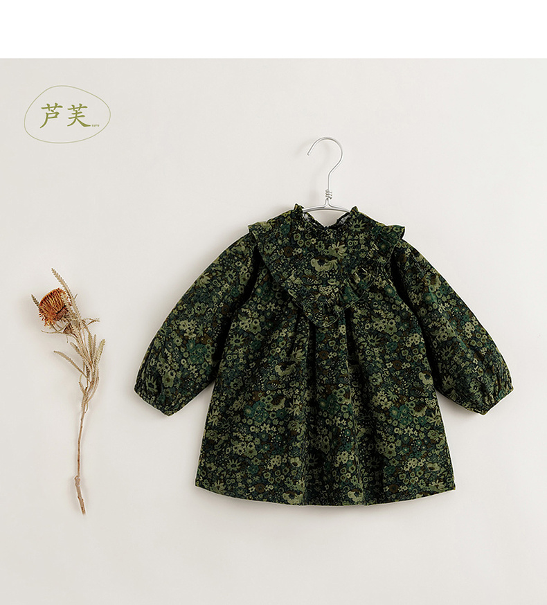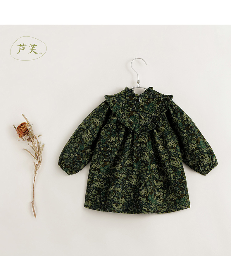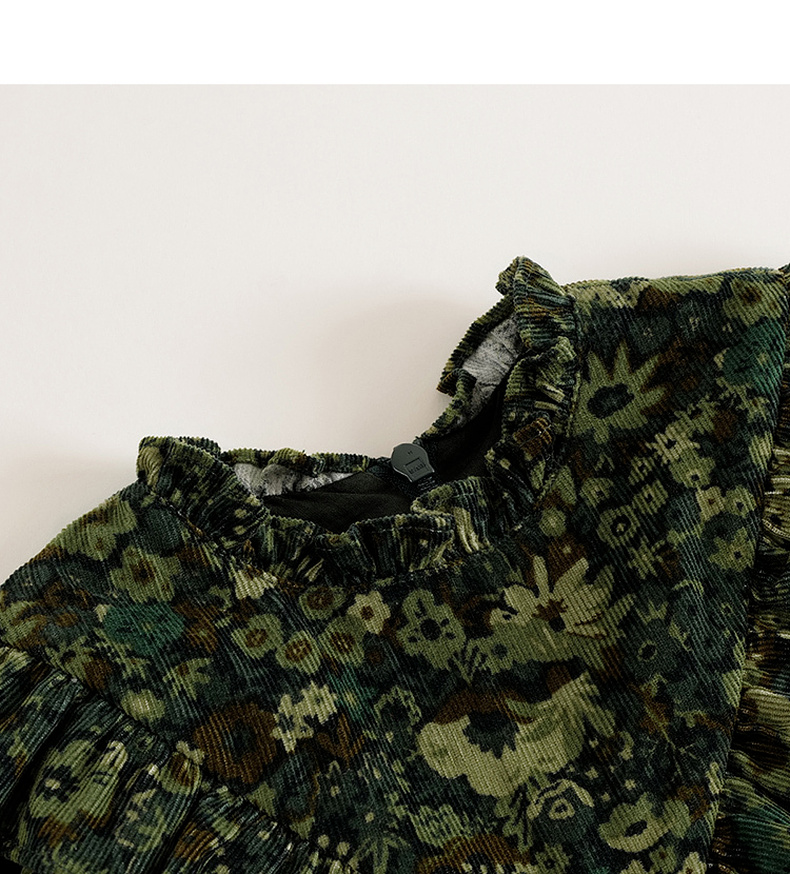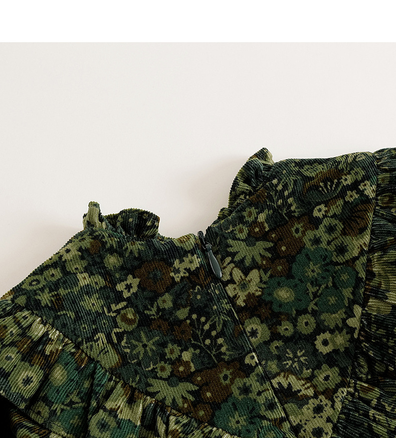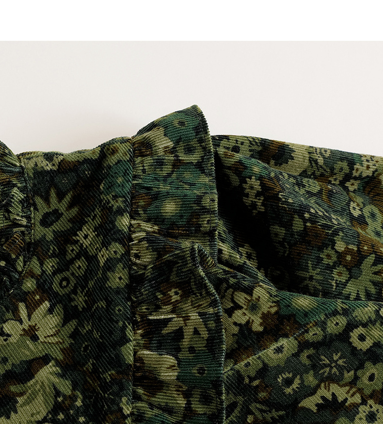 【马克珍妮 芦芙】秋装新款 灯芯绒碎花纯棉连衣裙 231555