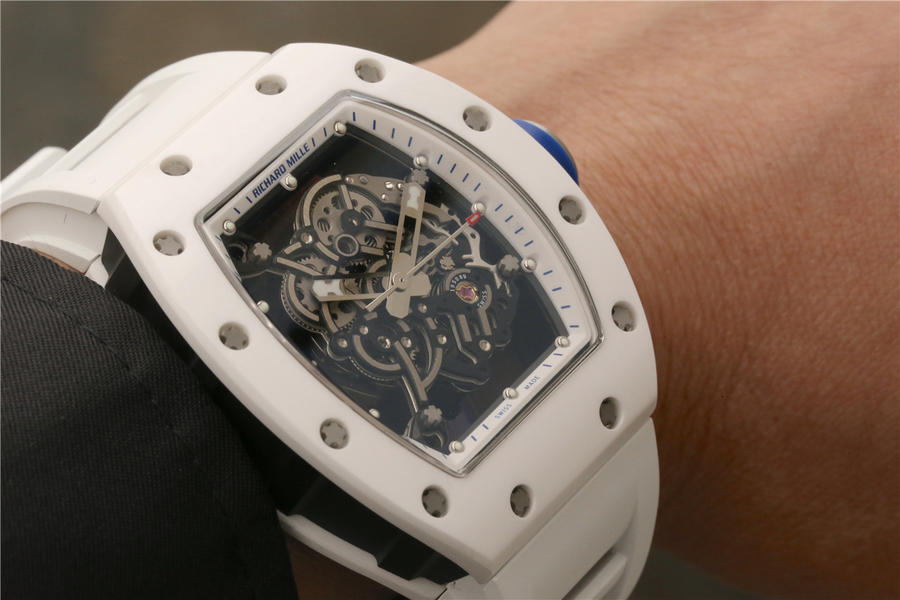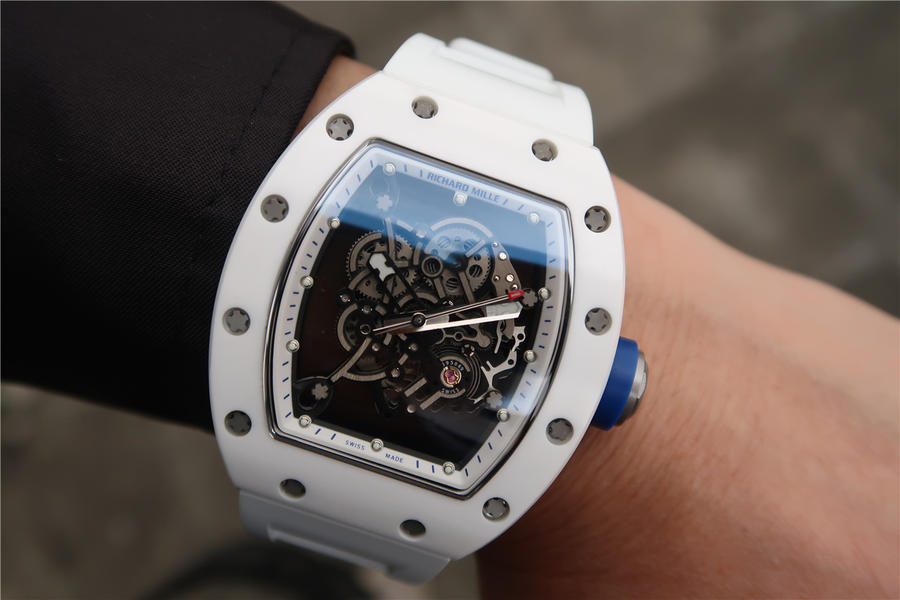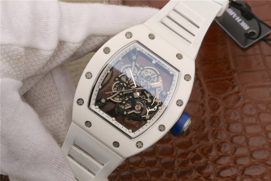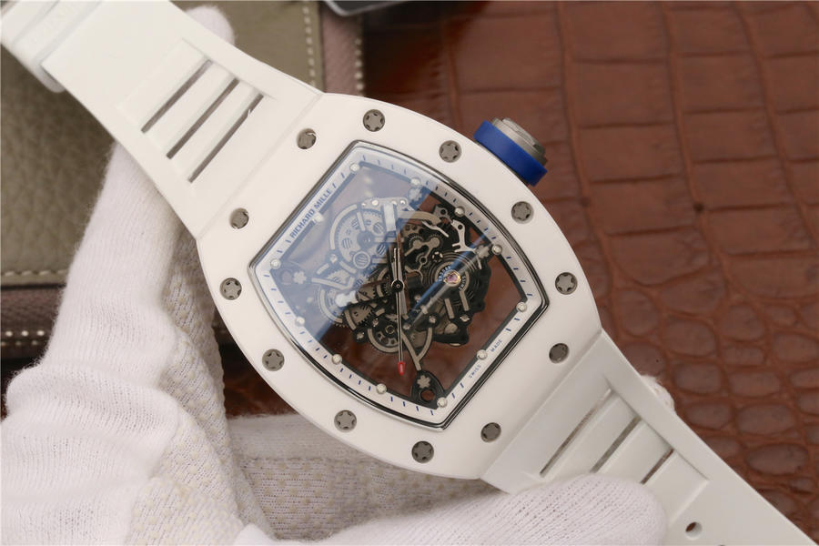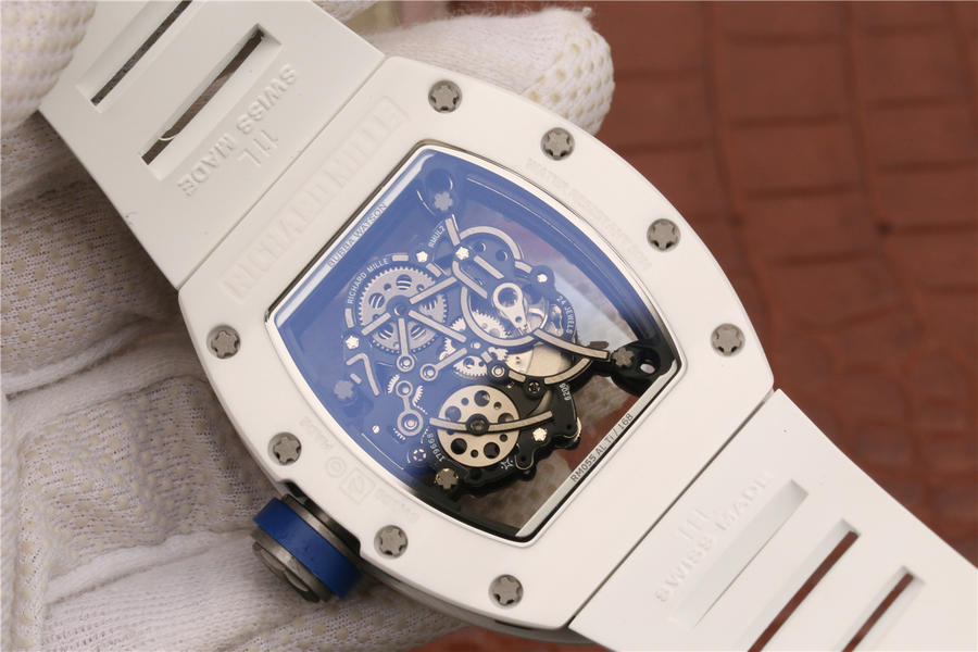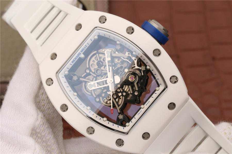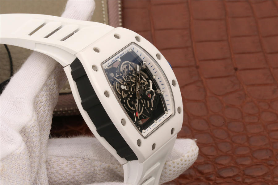 KV理查德米勒 RM 055 陶瓷腕表 经典酒桶造型表身 镂空立体设计 男士腕表,硅胶表带,自动机械机芯,透底