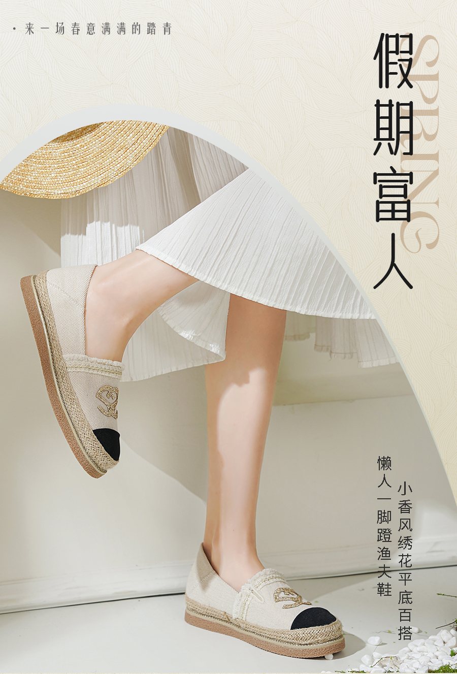 预售10天发|Safiya/索菲娅2025小香风绣花平底百搭懒人一脚蹬渔夫鞋SFD1112075