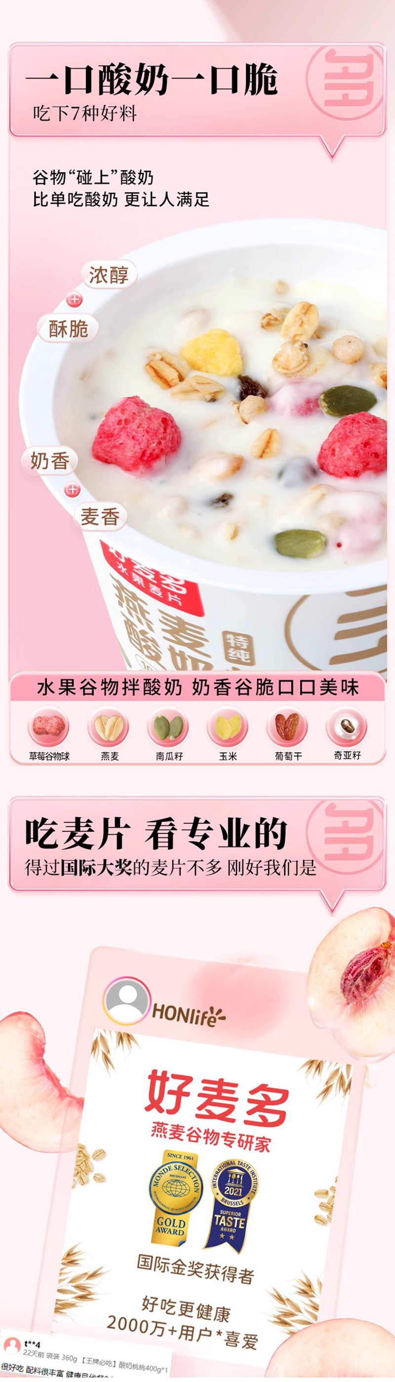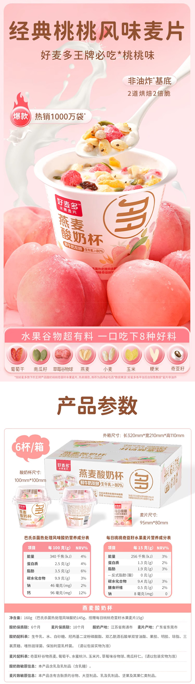 好麦多燕麦搅拌酸奶碗杯-桃桃燕麦酸奶杯160g*6杯