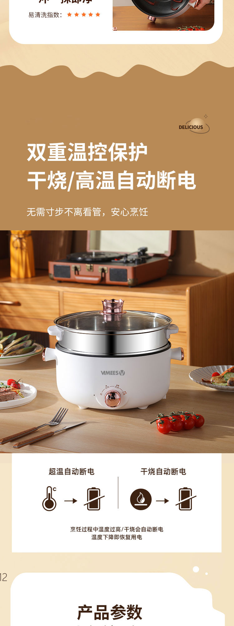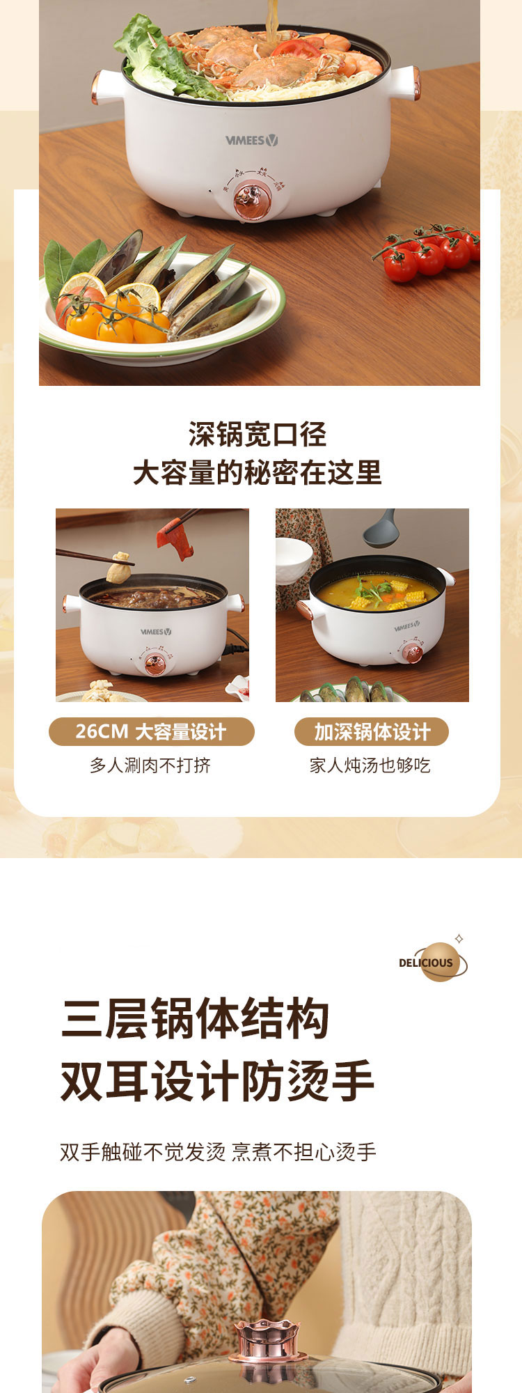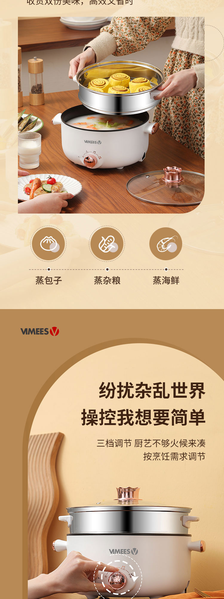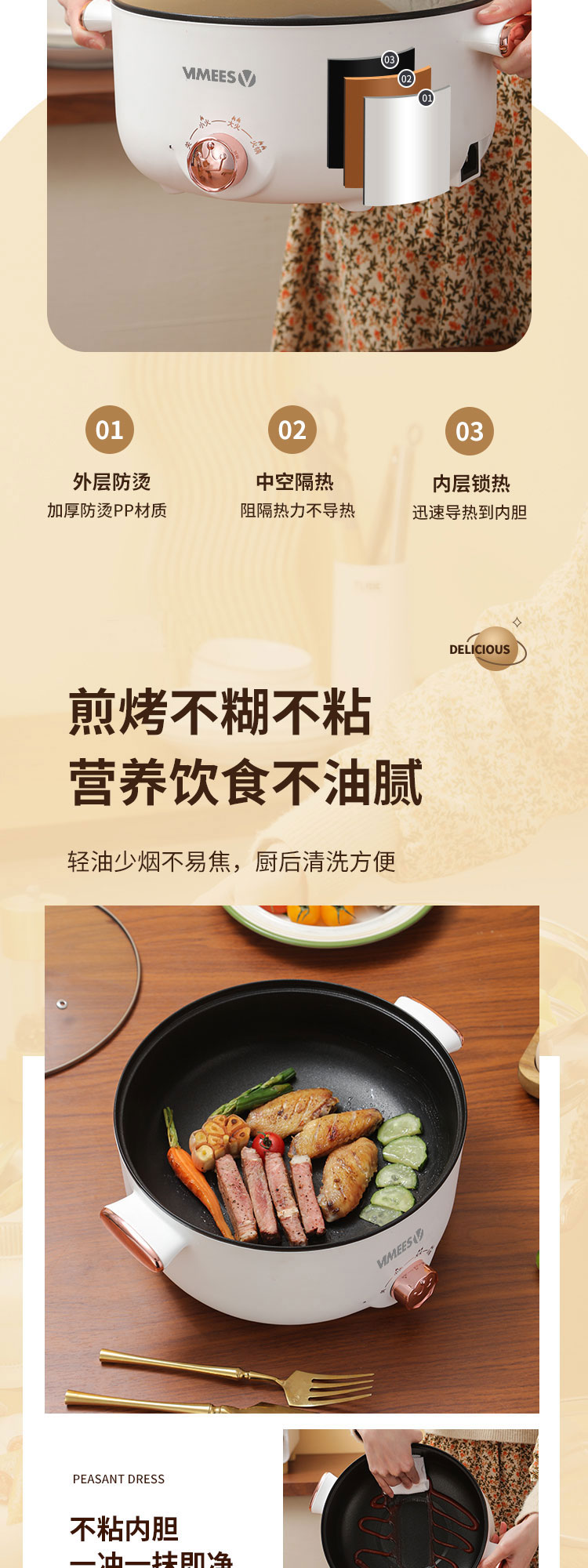 维米仕(vimees)多功能双层电火锅3L 白色VM6012