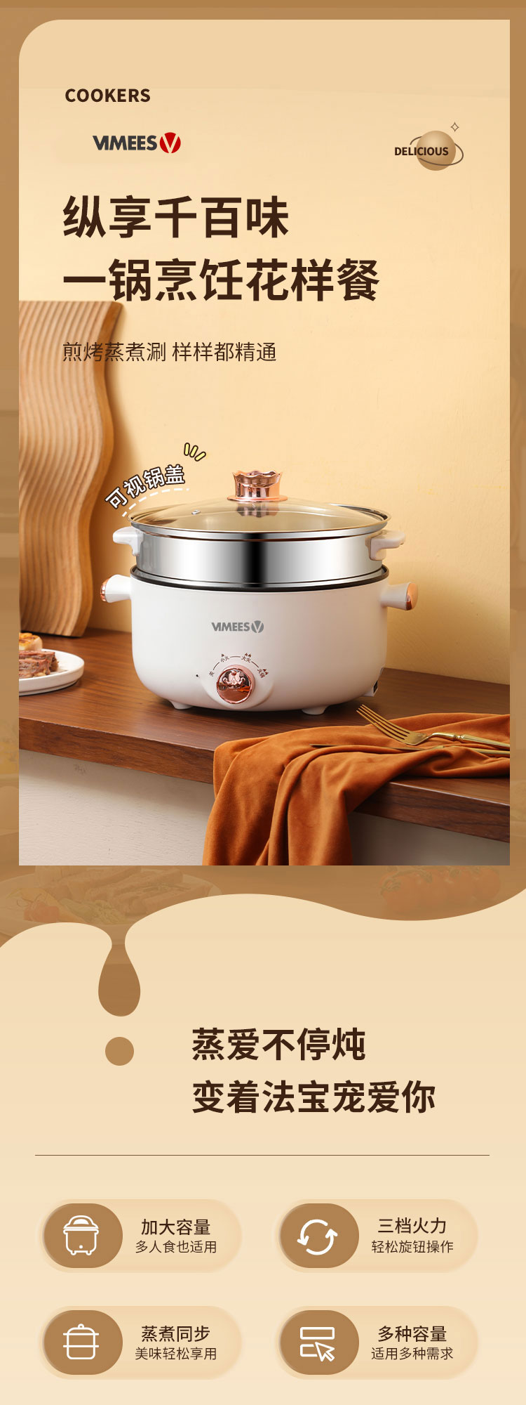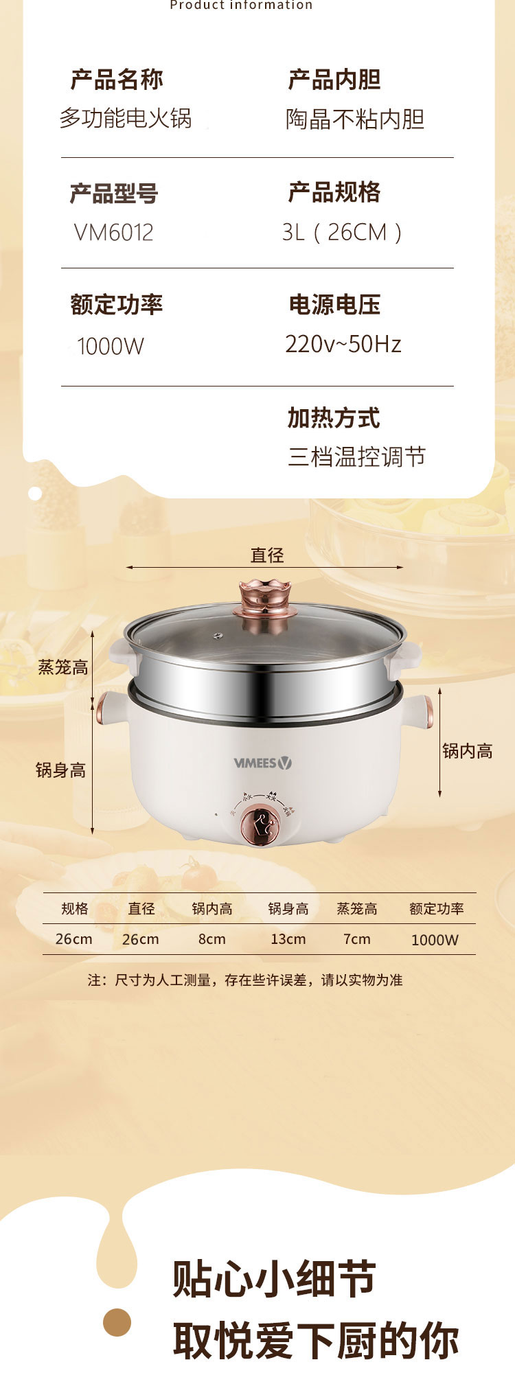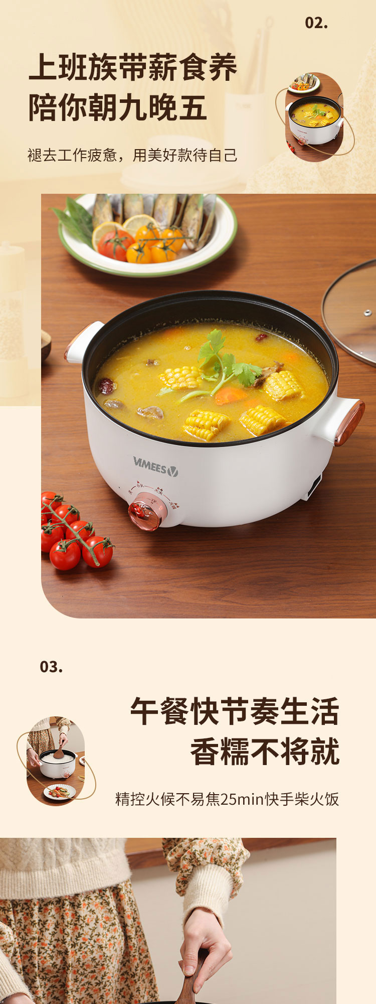 维米仕(vimees)多功能双层电火锅3L 白色VM6012