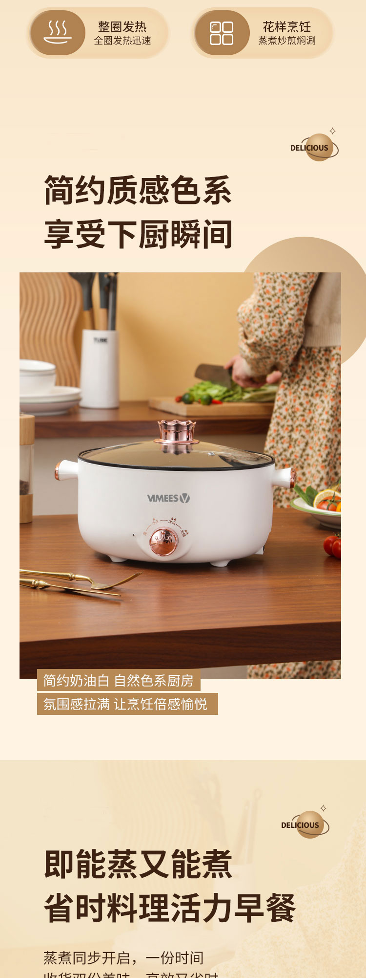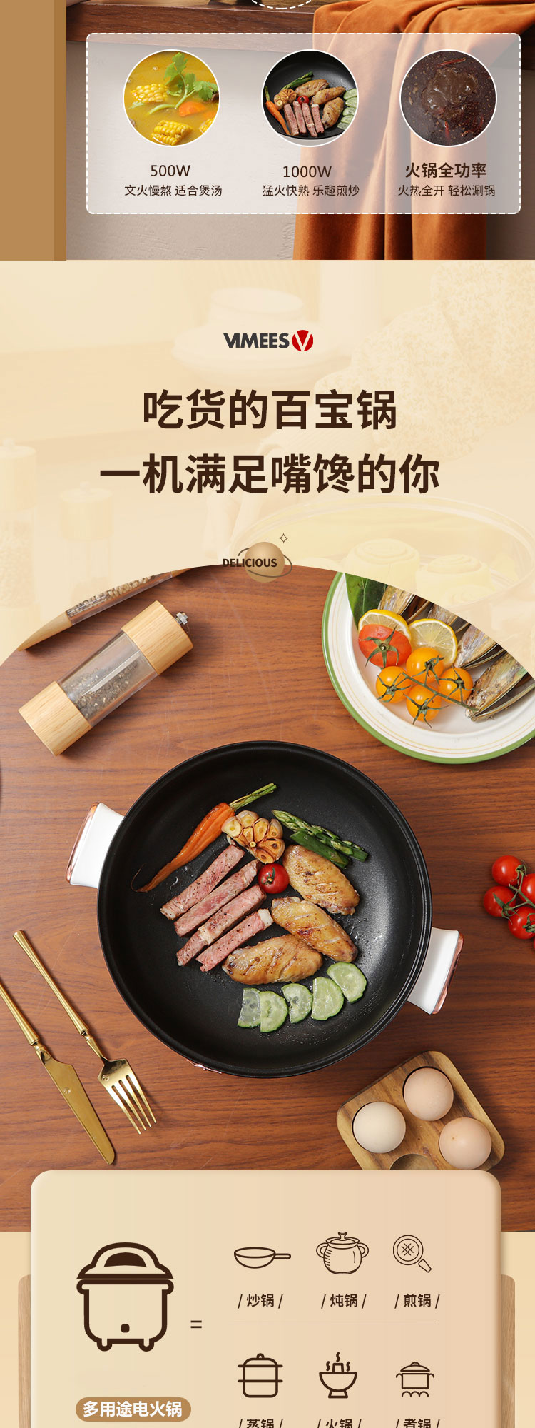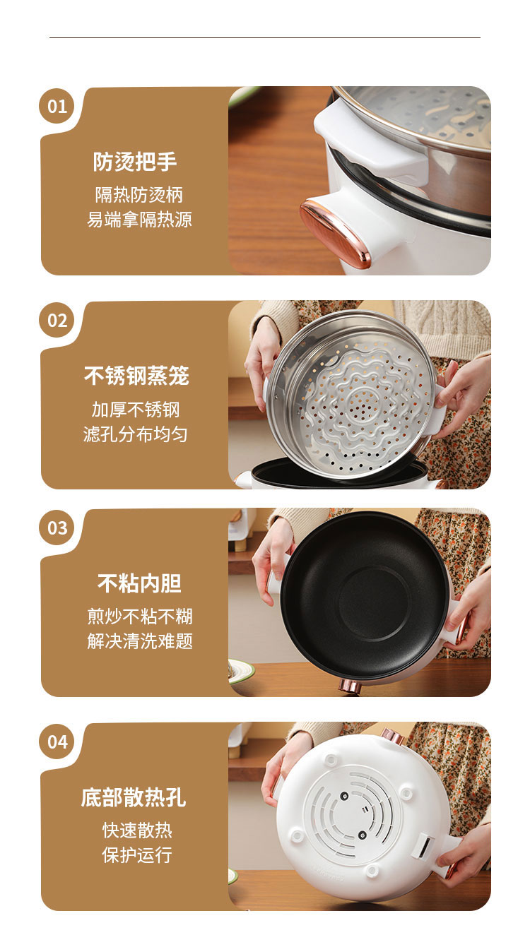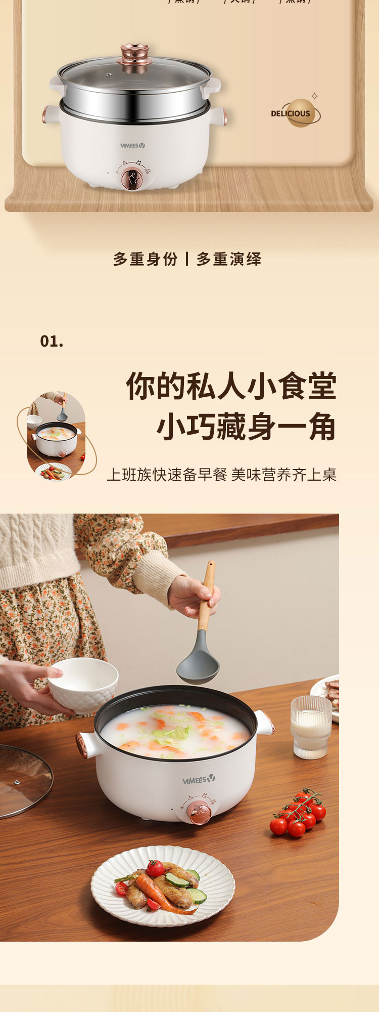 维米仕(vimees)多功能双层电火锅3L 白色VM6012