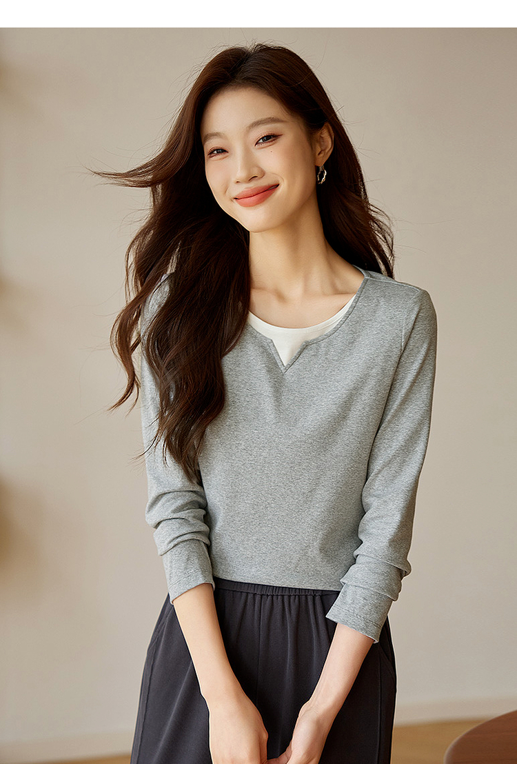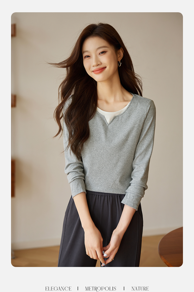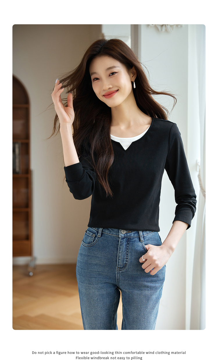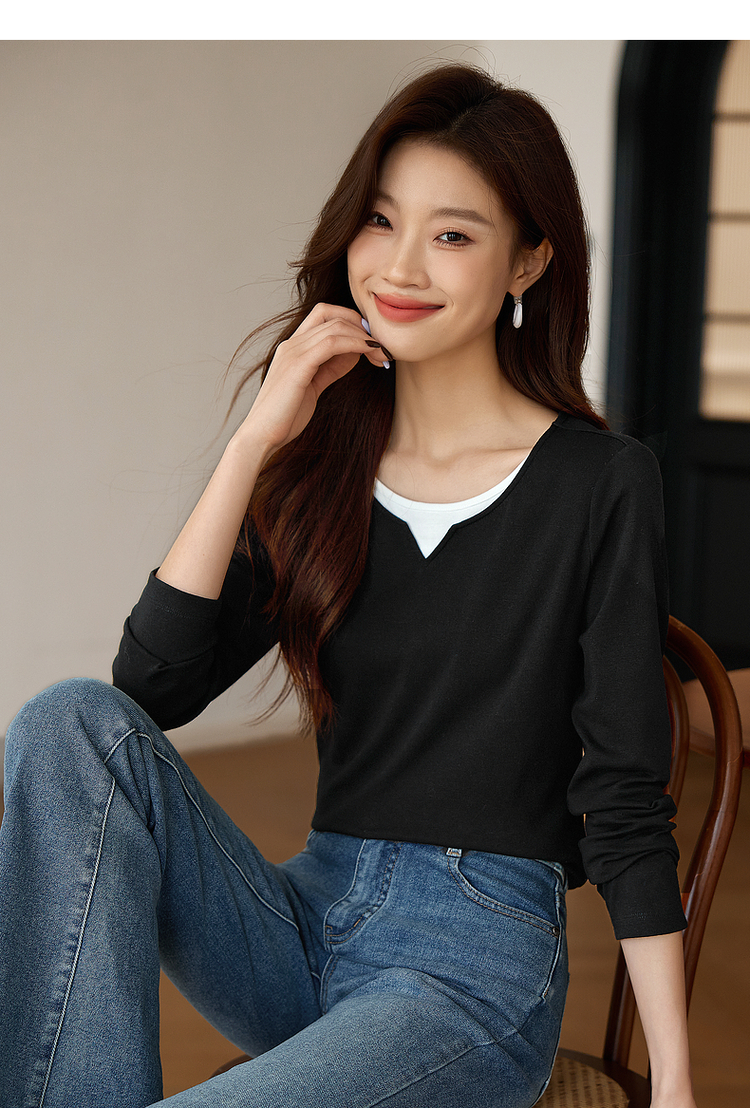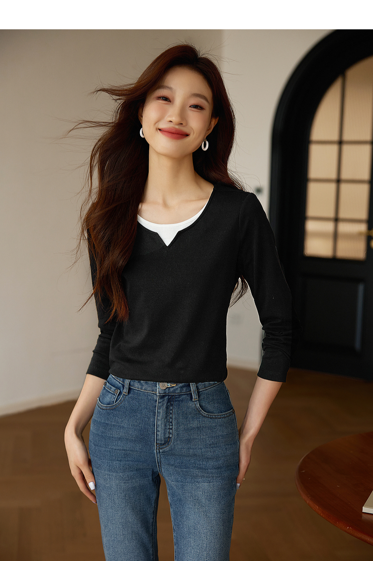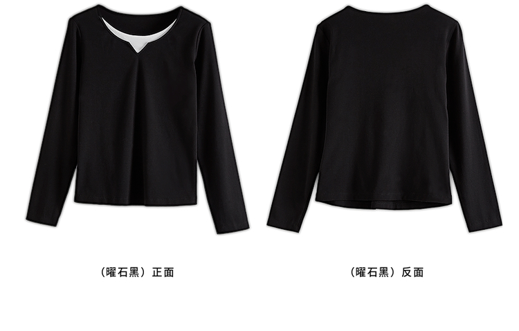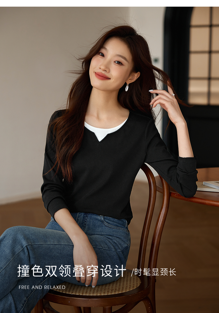 【专属特价】熙世界时尚假两件红色t恤2025秋季新款显瘦长袖内搭打底衫上衣