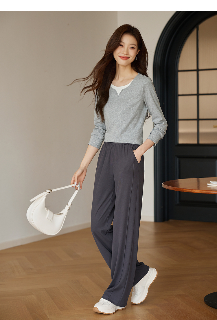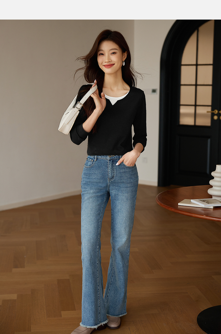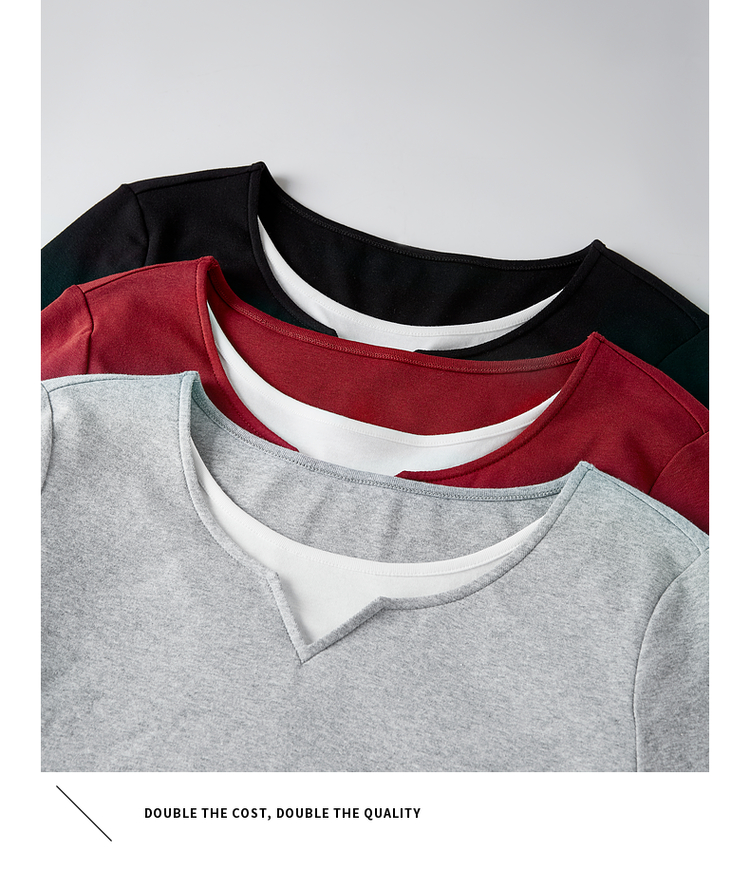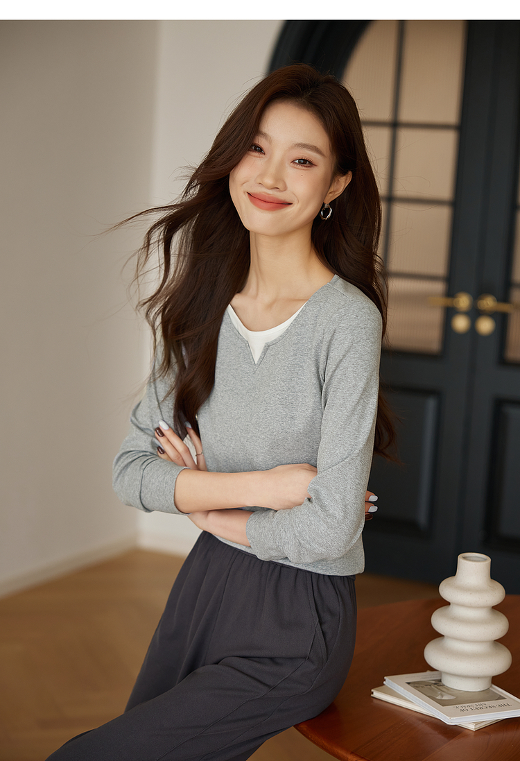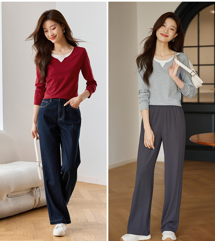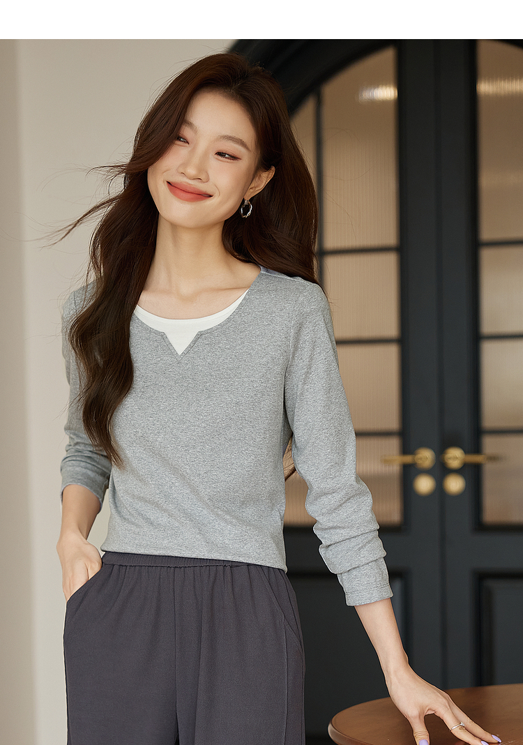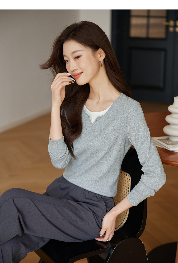 【专属特价】熙世界时尚假两件红色t恤2025秋季新款显瘦长袖内搭打底衫上衣