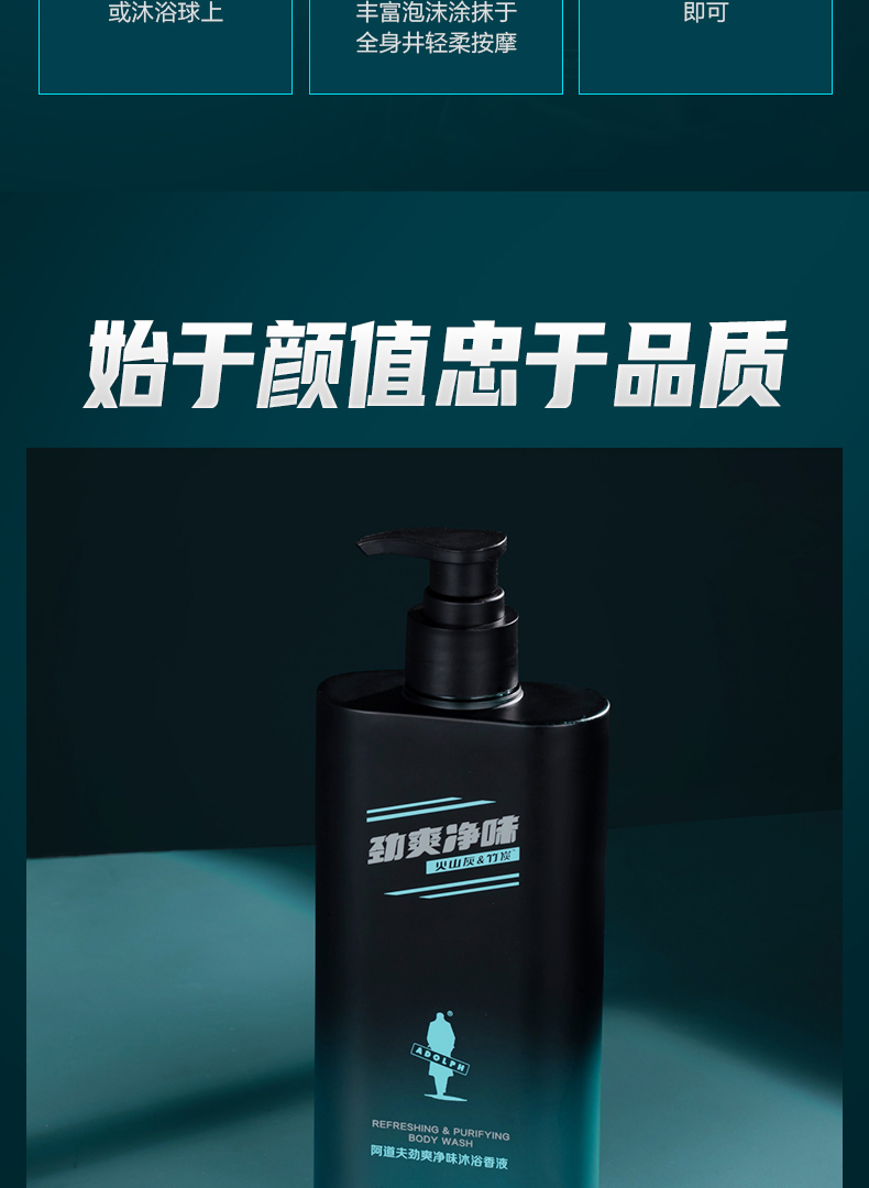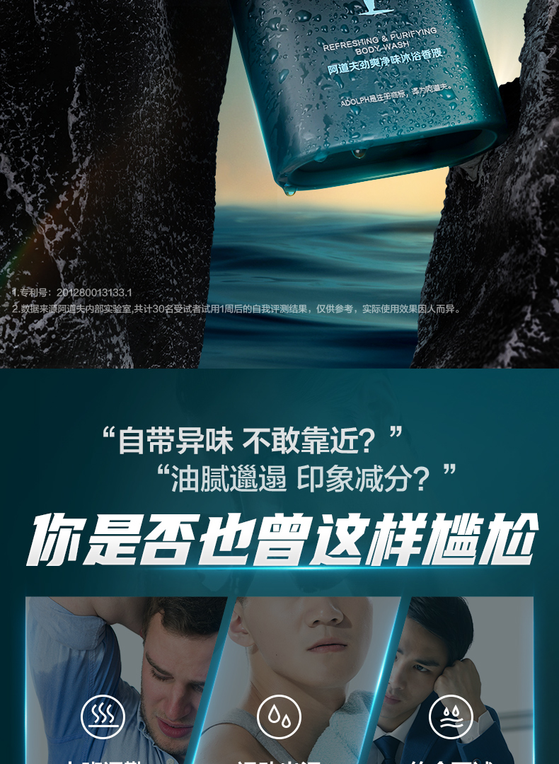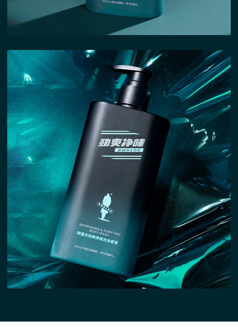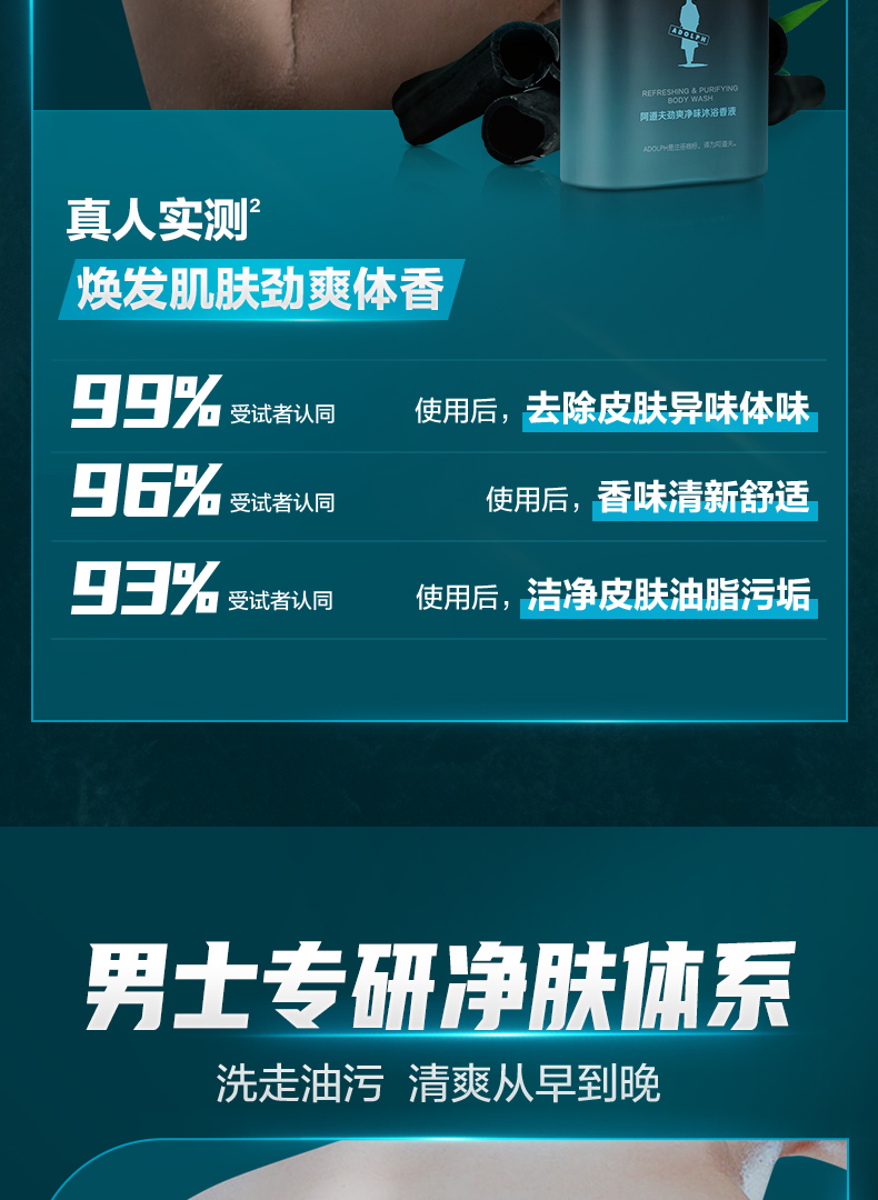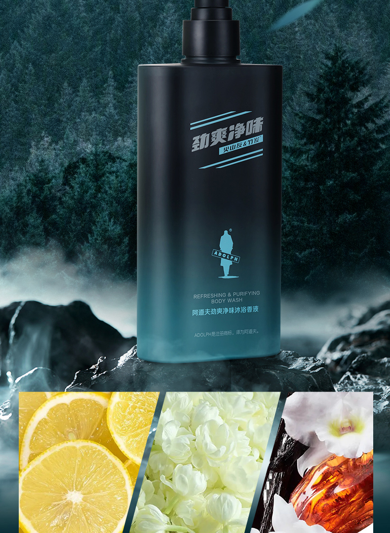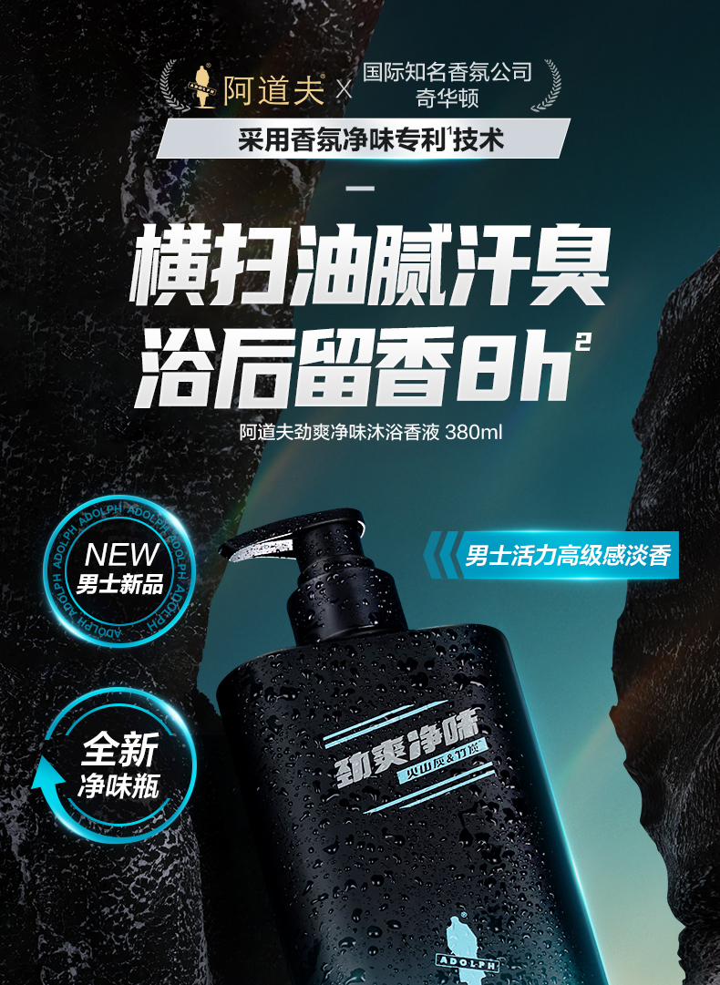 阿道夫控油祛异味劲爽沐浴液380ml 净味专利技术火山泥竹炭清爽控油
