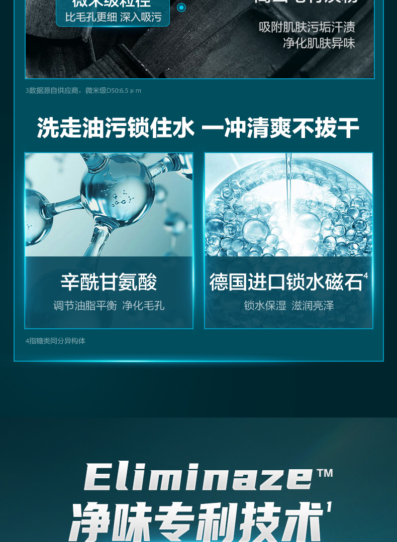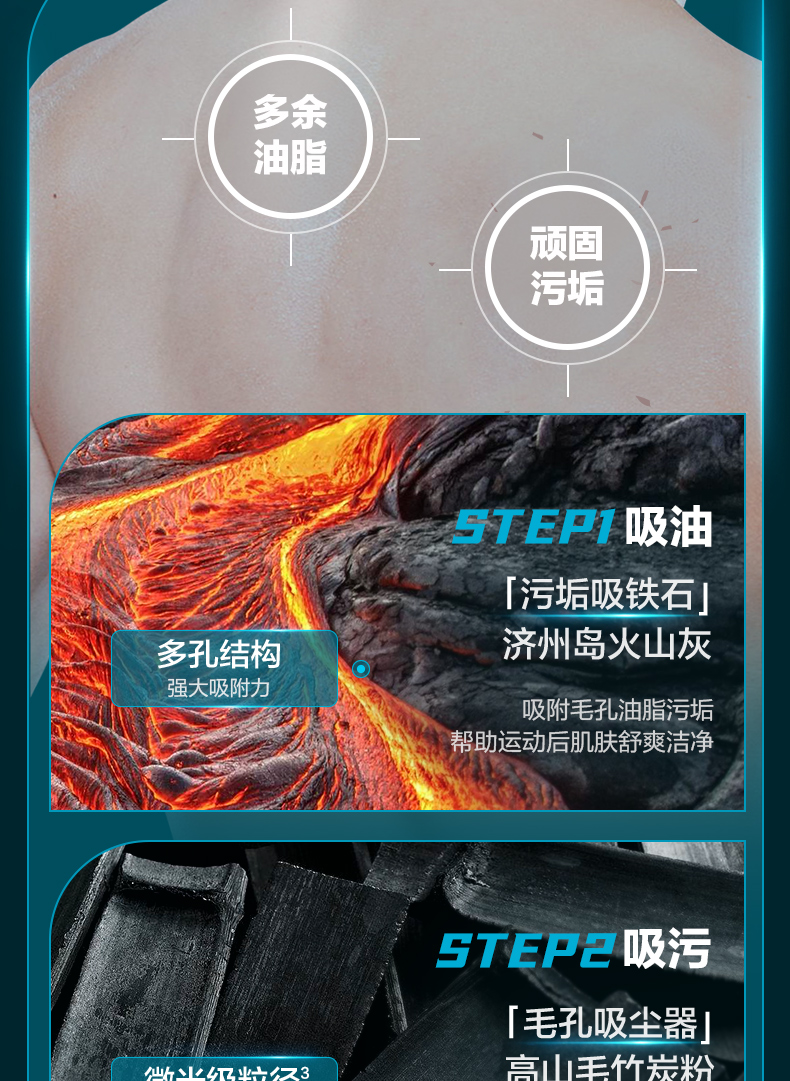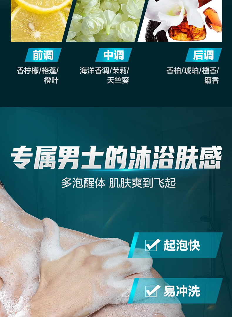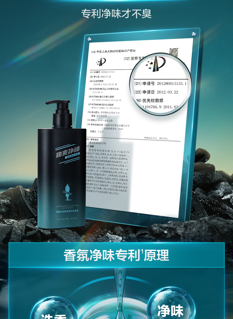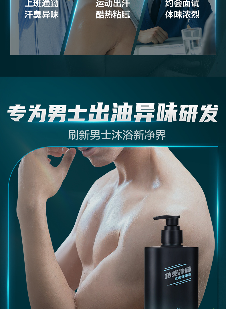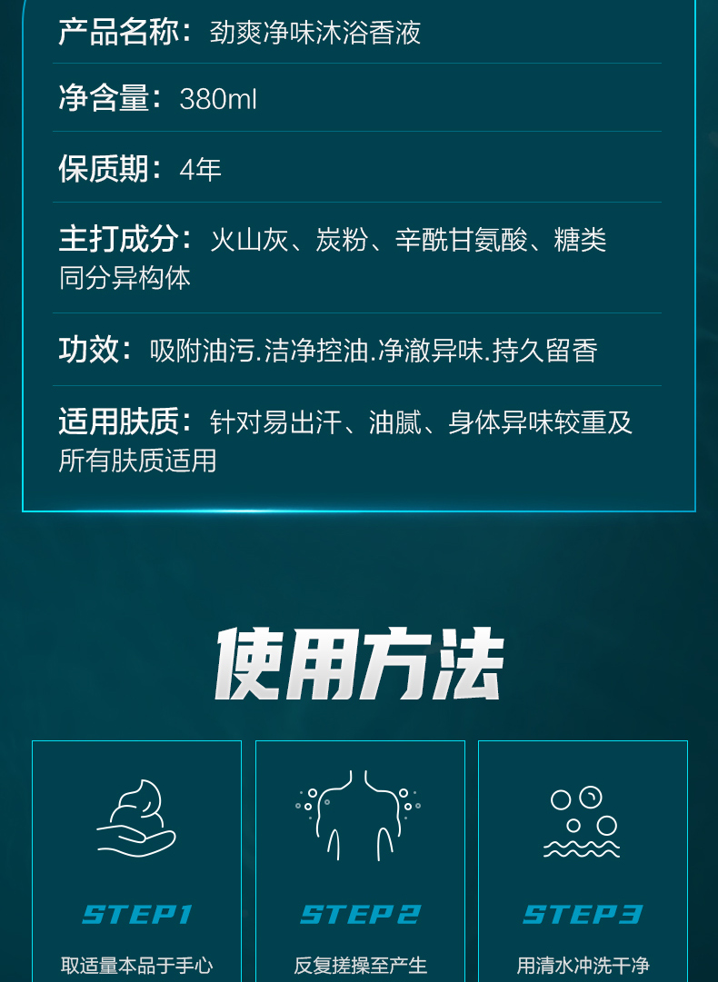 阿道夫控油祛异味劲爽沐浴液380ml 净味专利技术火山泥竹炭清爽控油