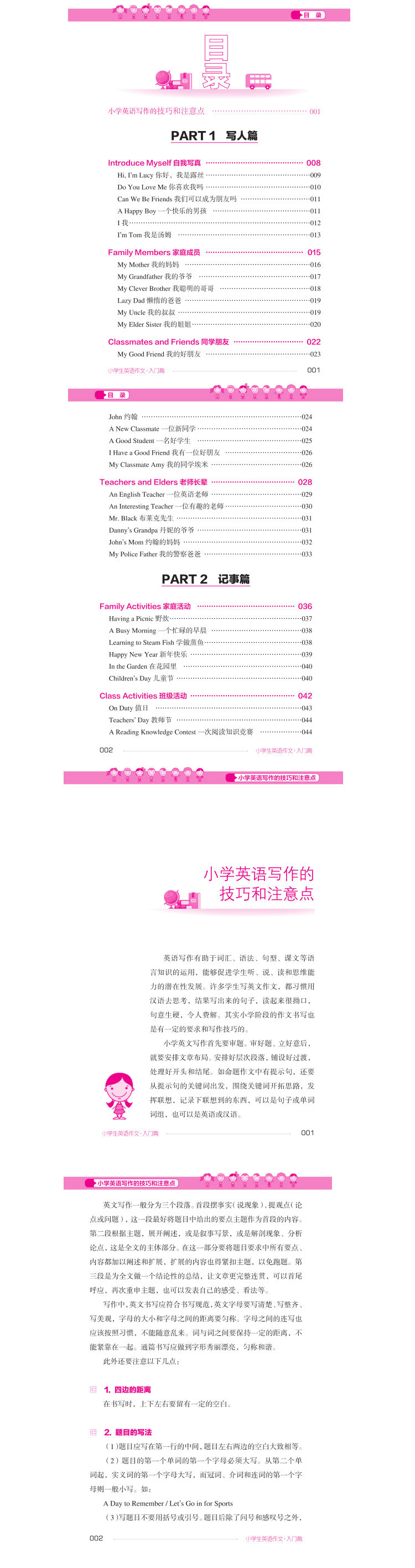 本书根据小学生的知识水平和学习特点编写,注重讲解。除了每个章节的指导性讲解意外,还在范文中加入细节性讲解,两者相辅相成,互为补充;