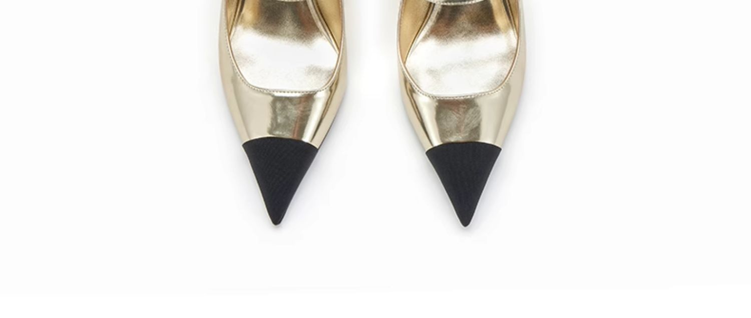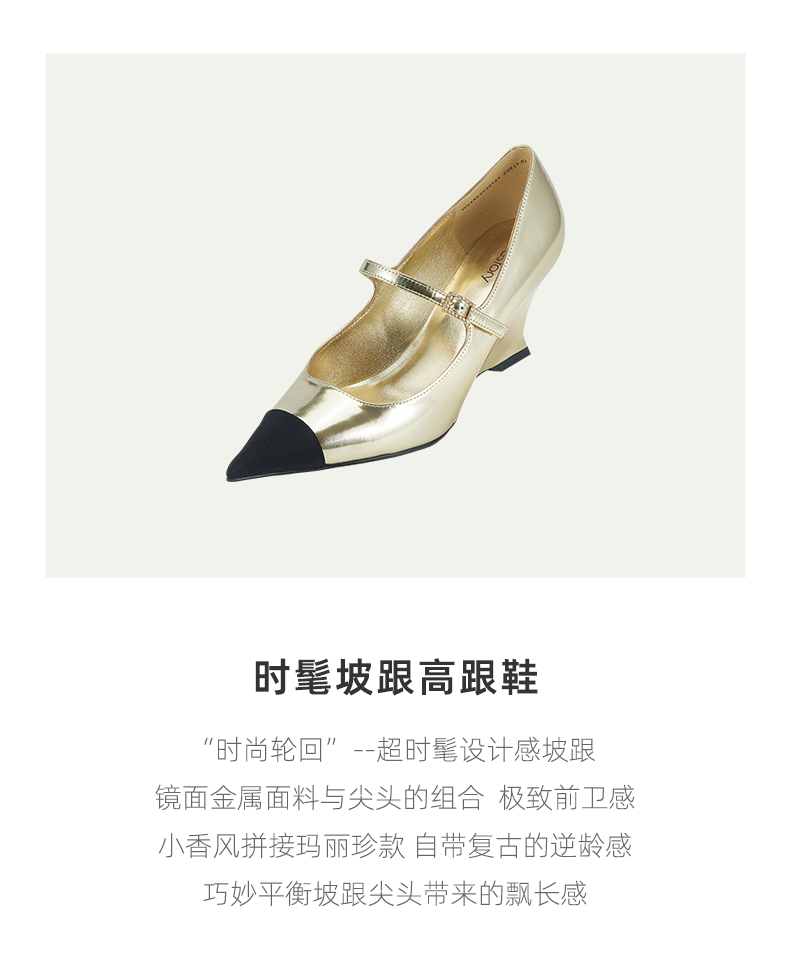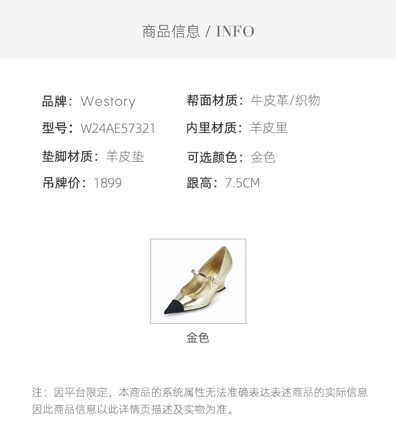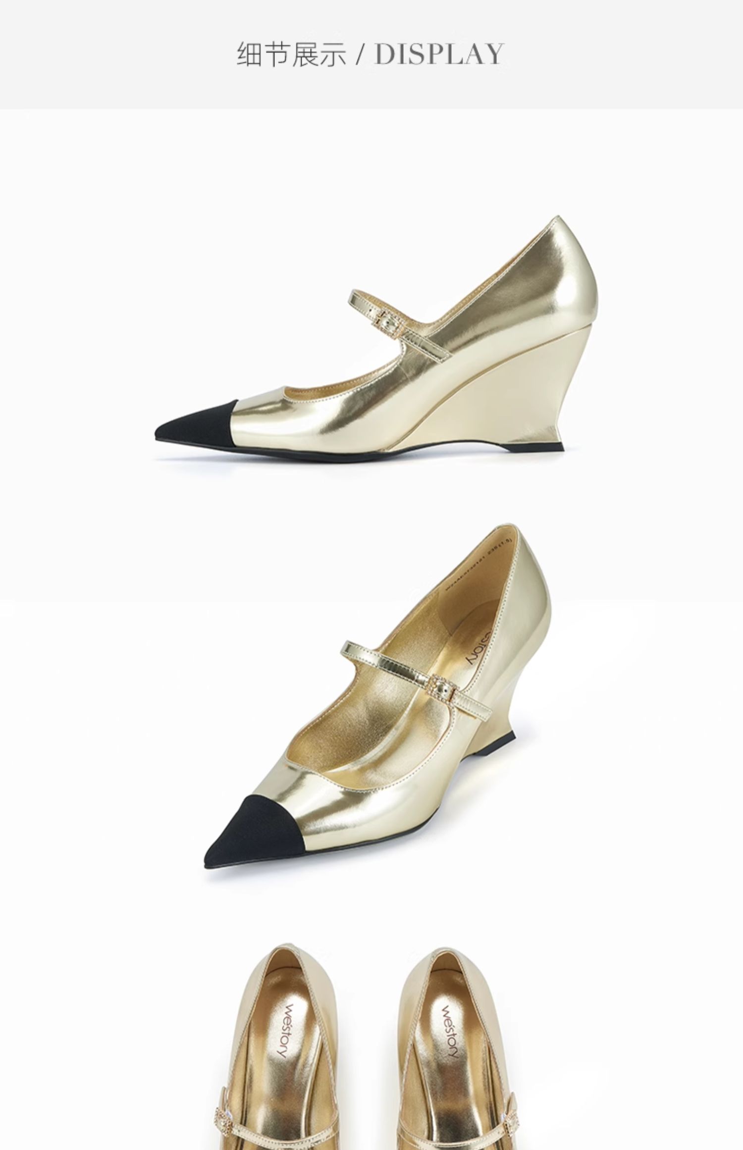westory2024春季新款尖头拼色玛丽珍复古气质百搭坡跟高跟鞋W24AE57321