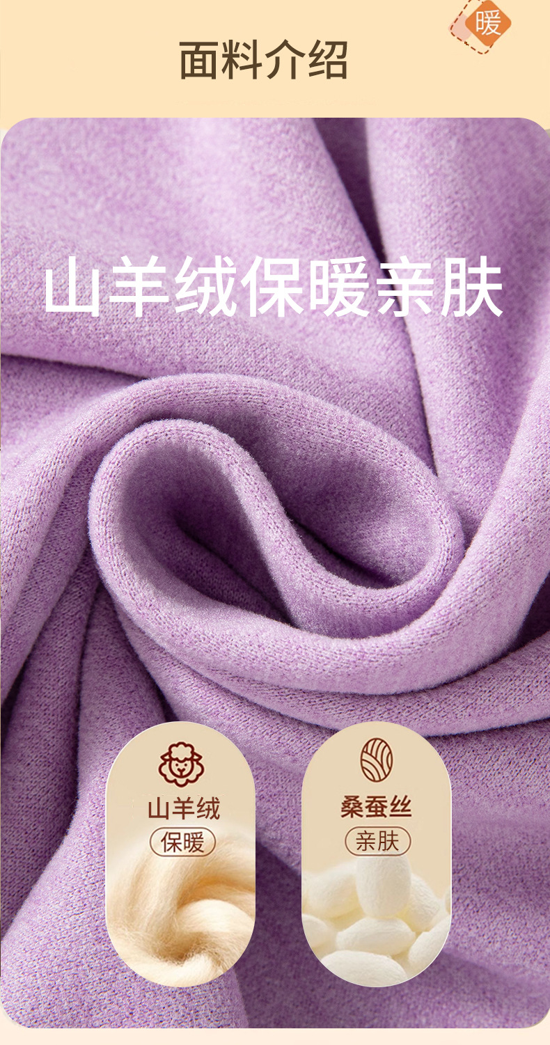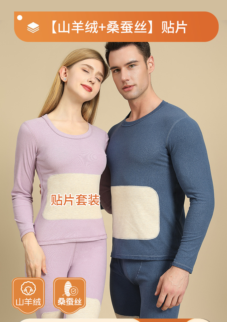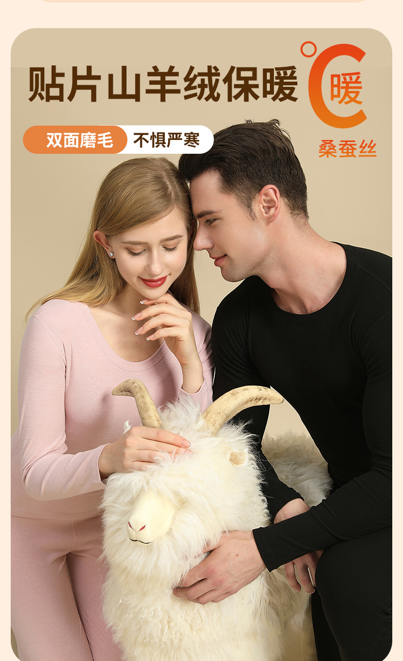 山羊绒桑蚕丝贴片保暖内衣女套装德双面绒磨毛女士秋衣秋裤男