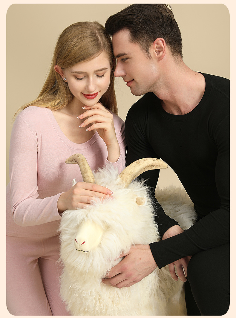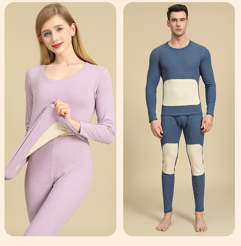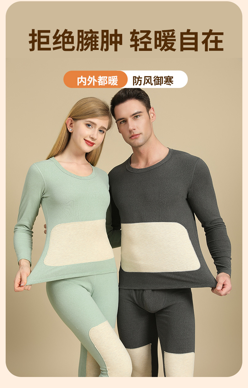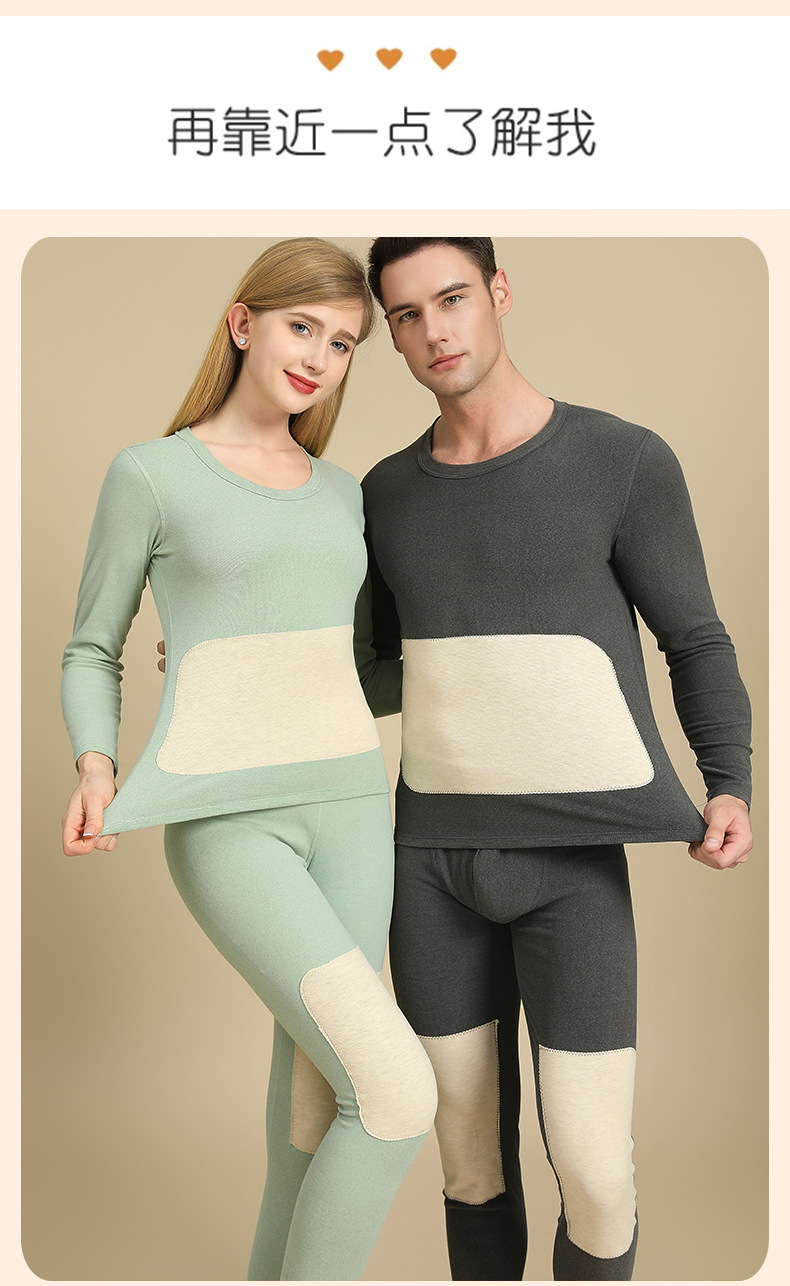 山羊绒桑蚕丝贴片保暖内衣女套装德双面绒磨毛女士秋衣秋裤男