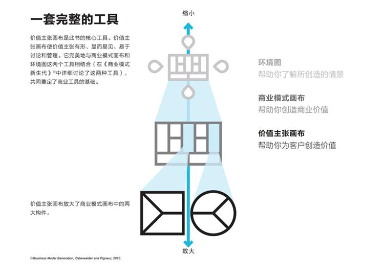 价值主张画布是此书的核心工具。价值主张画布使价值主张有形、显而易见、易于讨论和管理。它完美地与商业模式画布和环境图这两个工具相结合(在《商业模式新生代》中详细讨论了这两种工具),共同奠定了商业工具的基础。