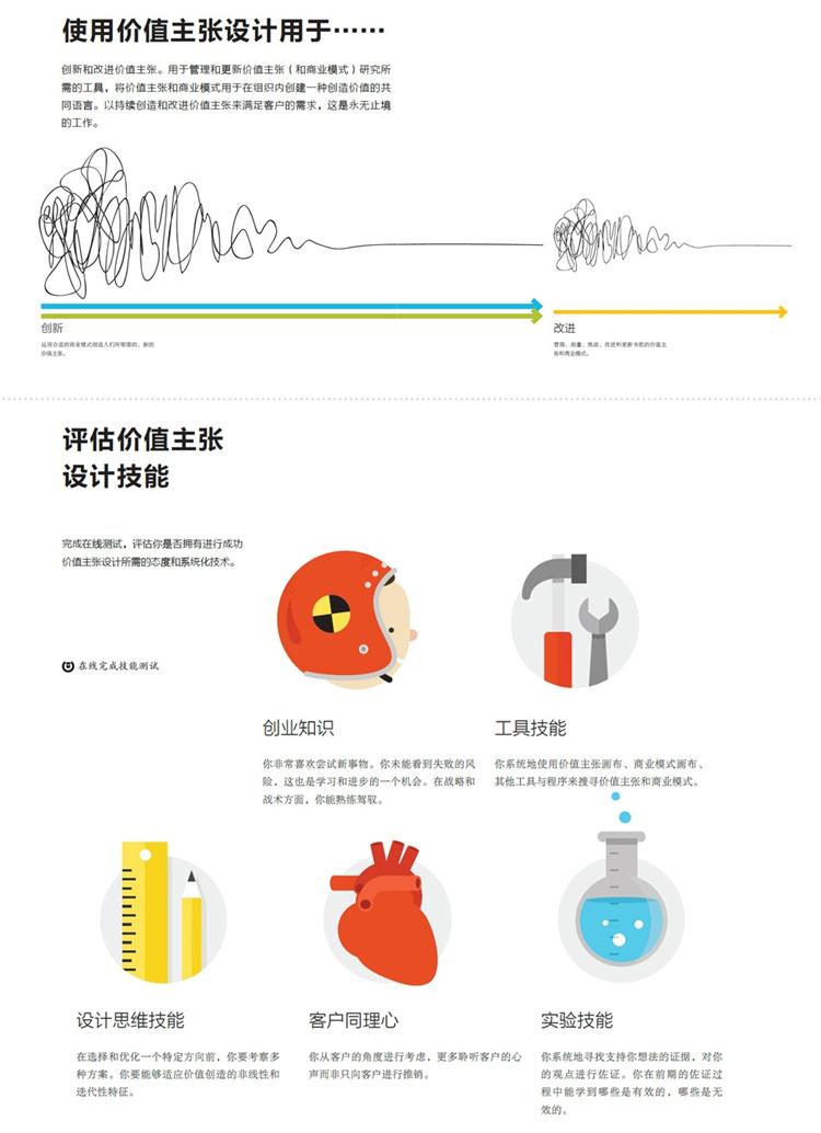 创新和改进价值主张。用于管理和更新价值主张(和商业模式)研究所需的工具,将价值主张和商业模式用于在组织内创建一种创造价值的共同语言。以持续创造和改进价值主张来满足客户的需求,这是永无止境的工作。