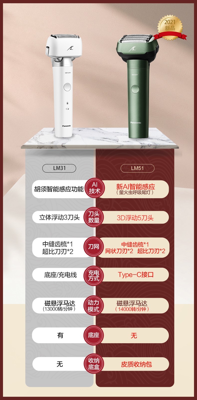 松下剃须刀小锤子Pro五刀头往复式日本电动胡须刀大锤子剃胡刀干湿两剃刮胡刀男士生日礼物LM51 ES-LM51-W405 【白色】