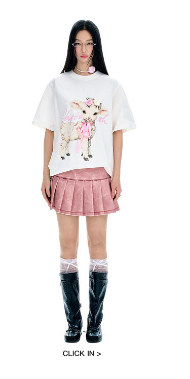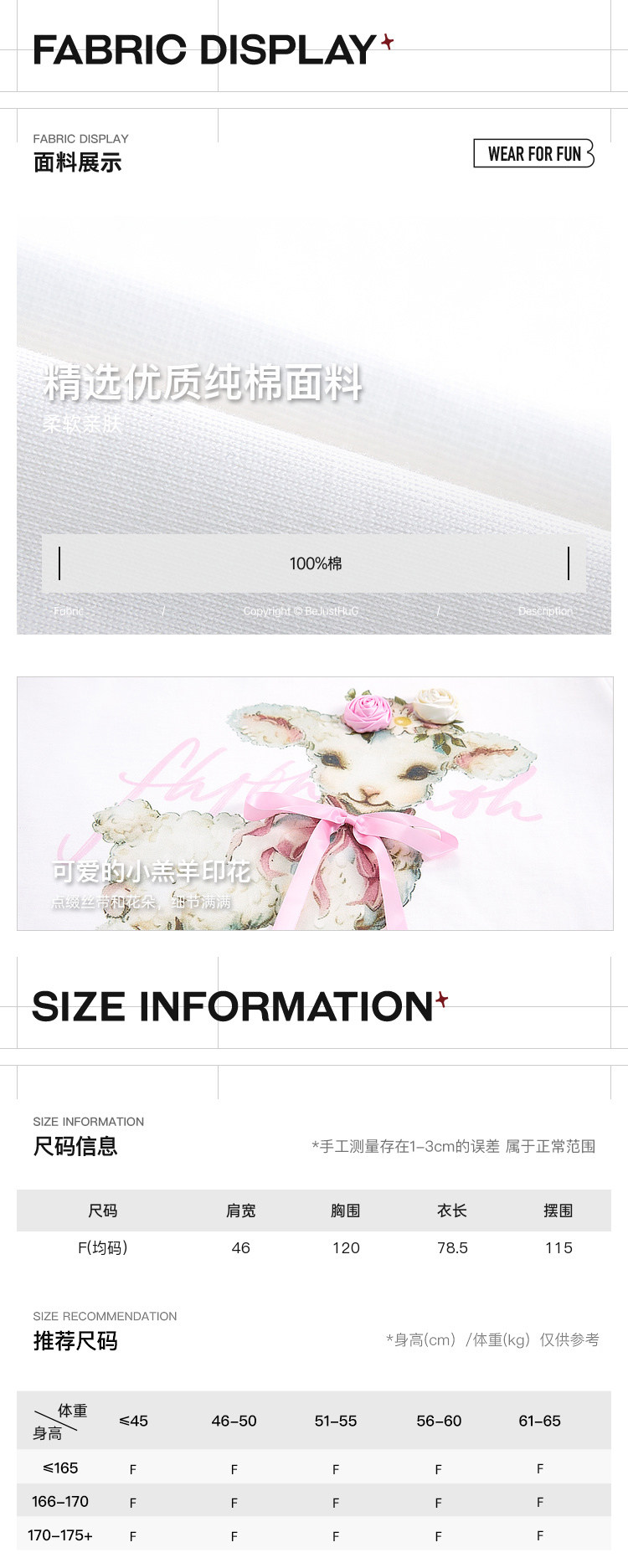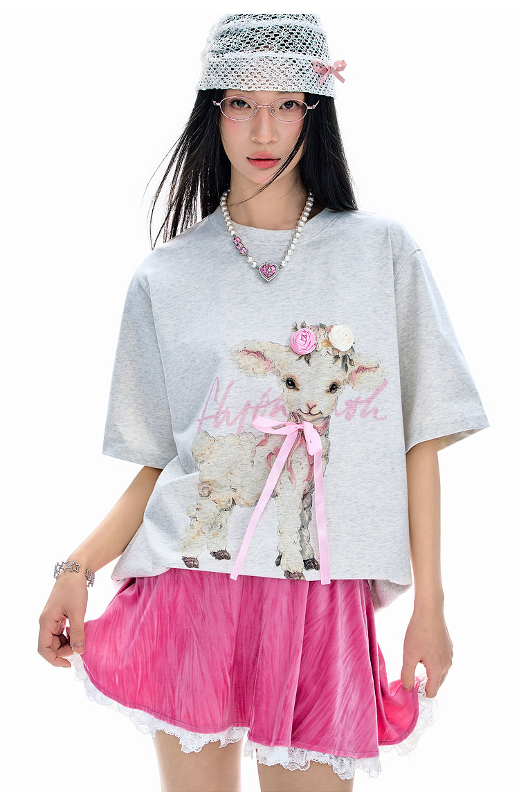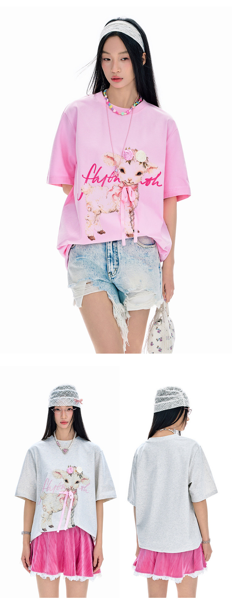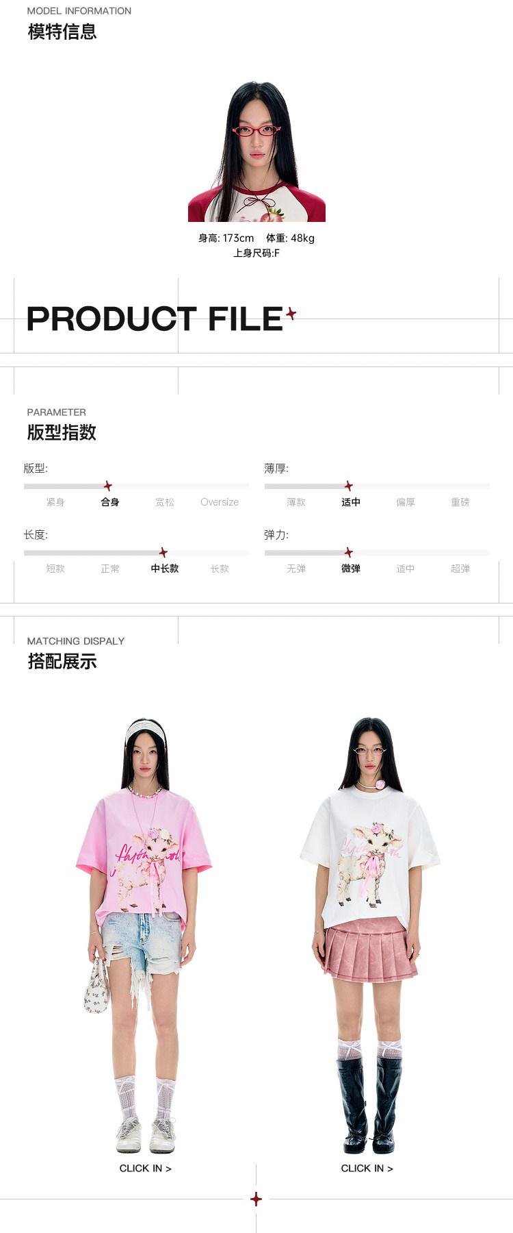FTT FlyTheTruth 小羊印花短袖T恤女夏季宽松慵懒设计感纯棉上衣