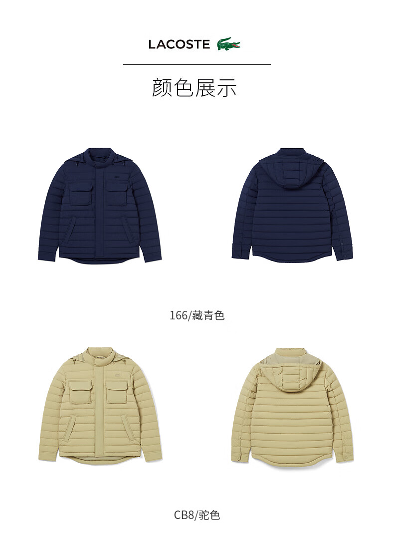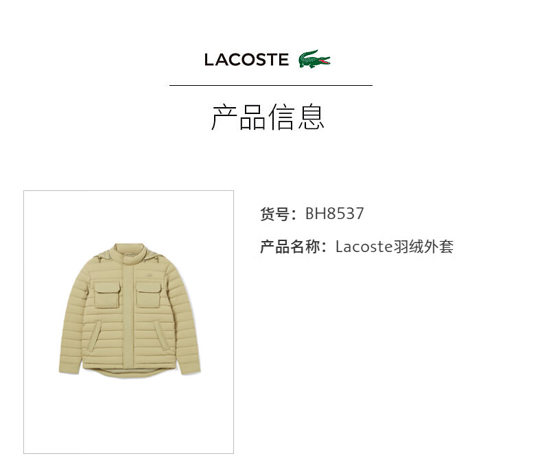 【海南专供价】Lacoste法国鳄鱼男装新款时尚连帽鹅绒羽绒服外套BH8537-98