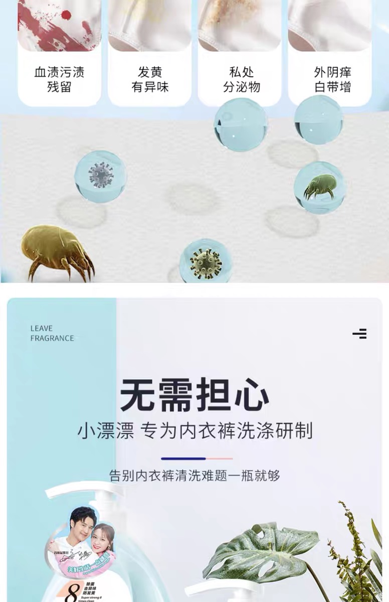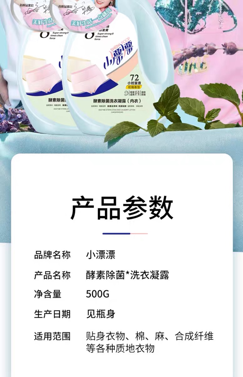 【包邮到家|小漂漂内衣洗衣液】500g/瓶,除菌除螨 母婴适用,深入织物内部 有效杀灭常见菌种。如风生活特惠
