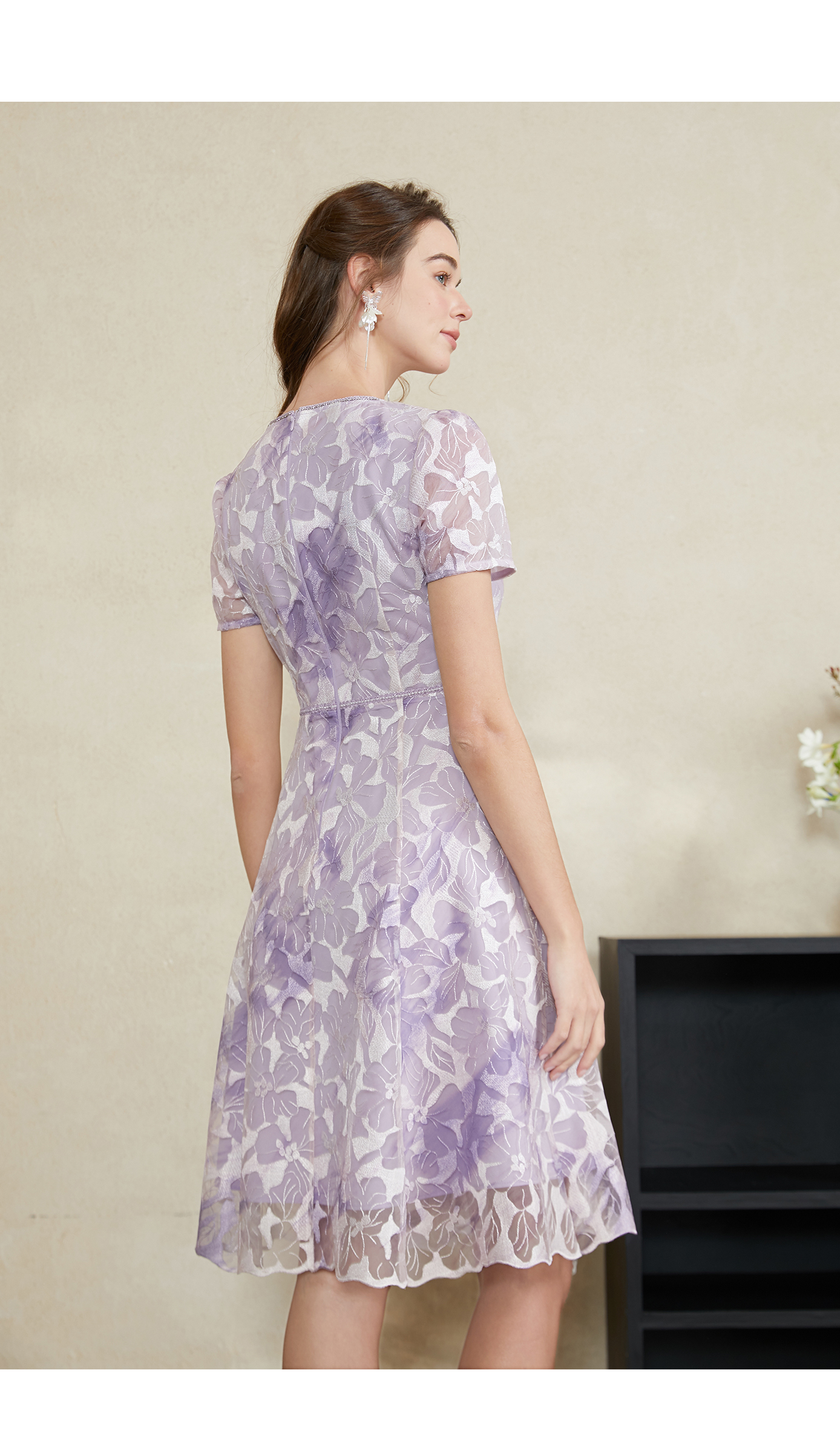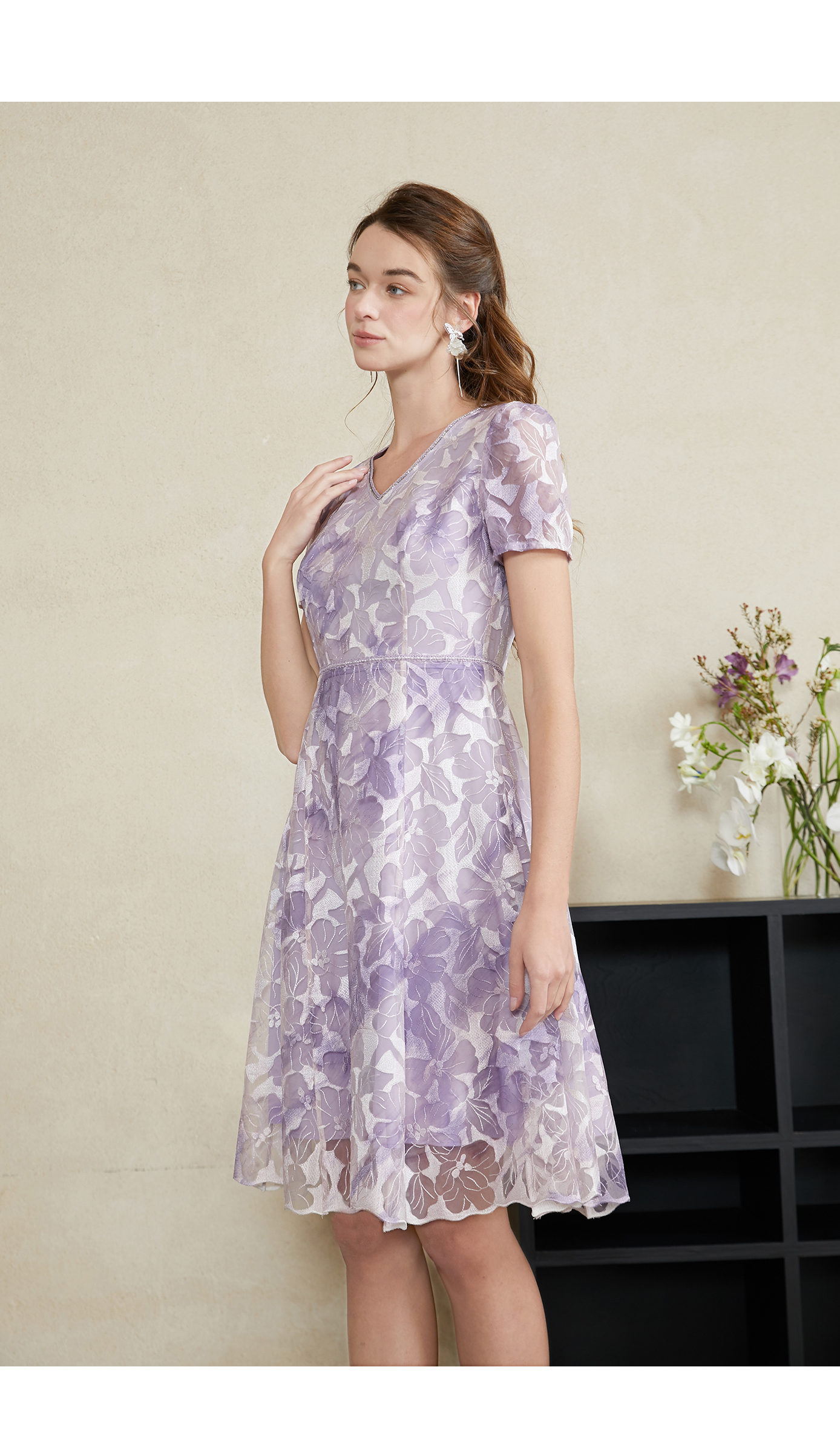 司歌刺绣连衣裙短袖显瘦端庄A911038X