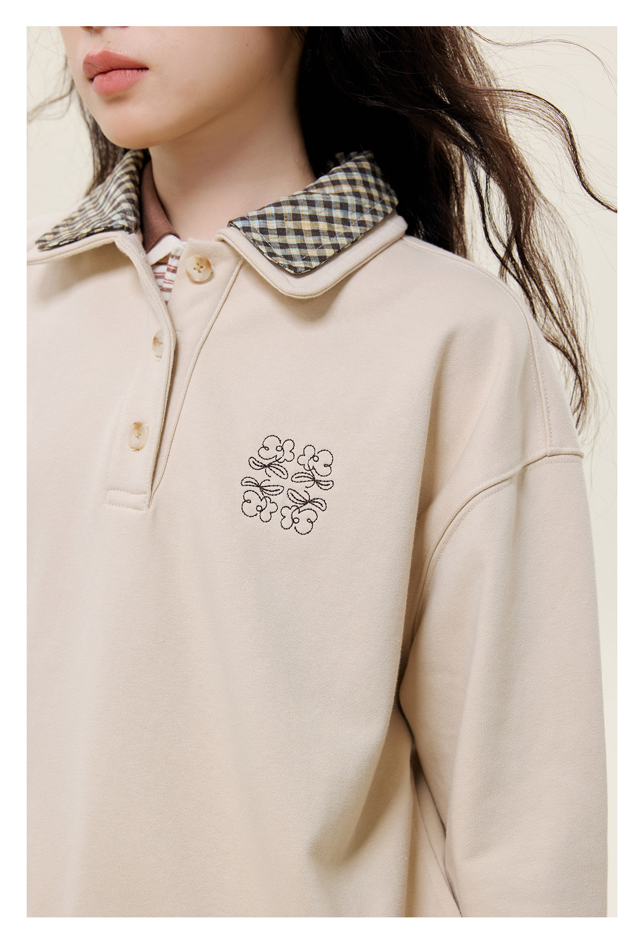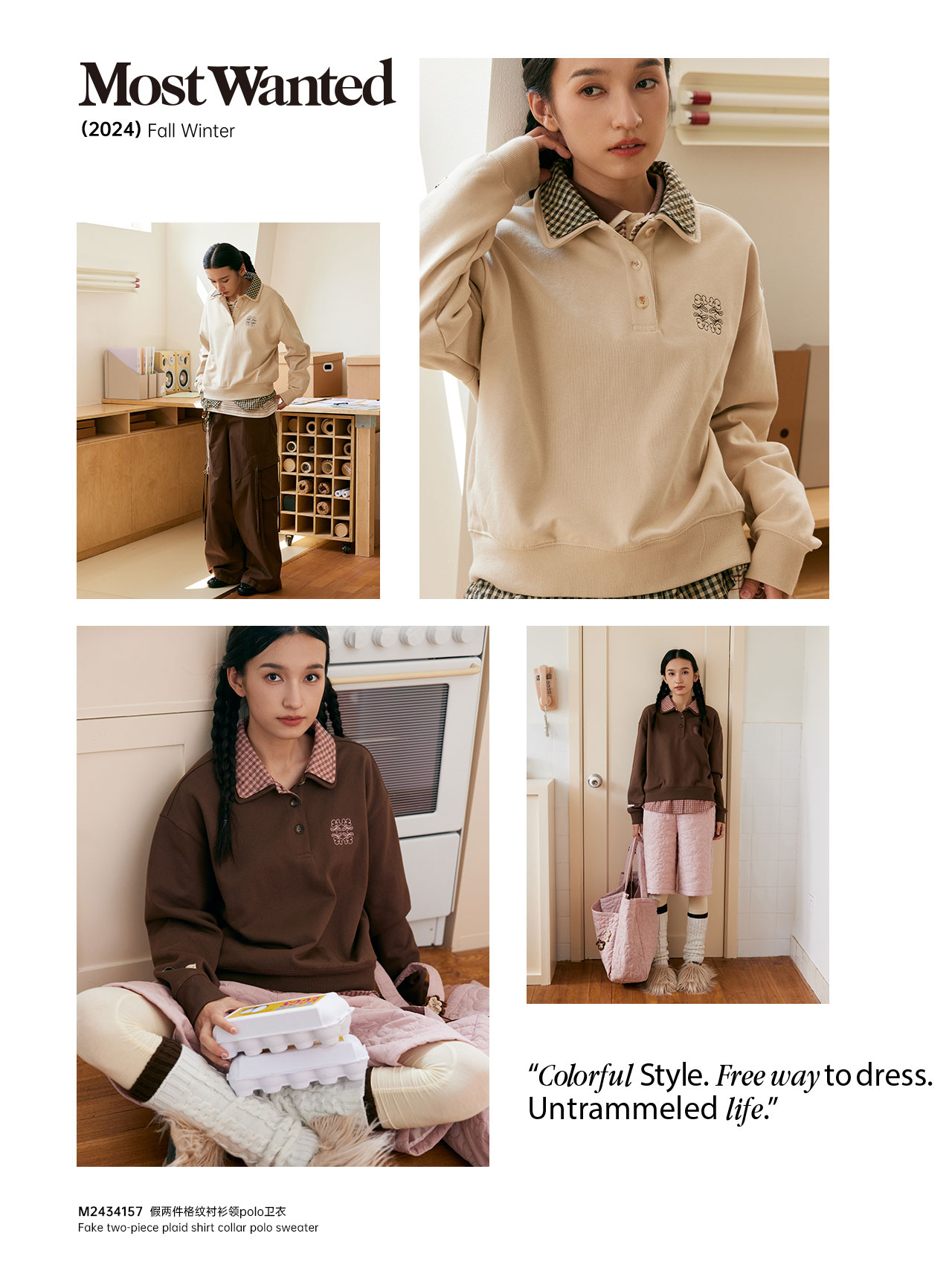 mostwantedlab彩虹/M2434157/假两件格纹衬衫领polo卫衣