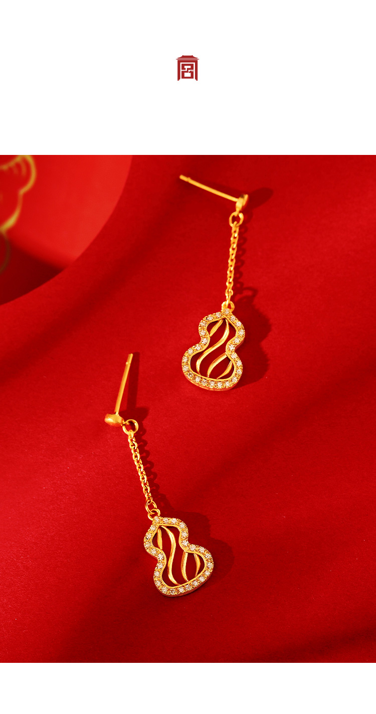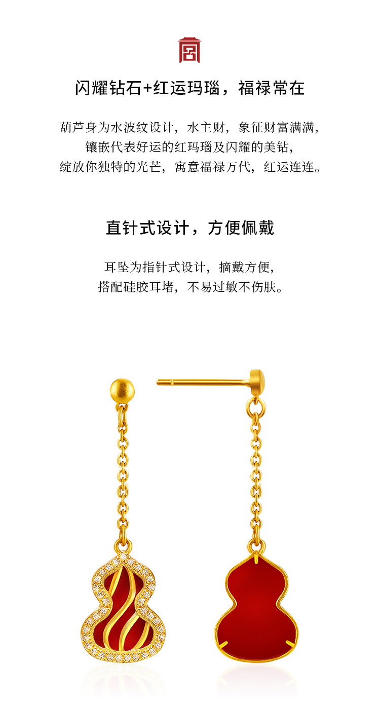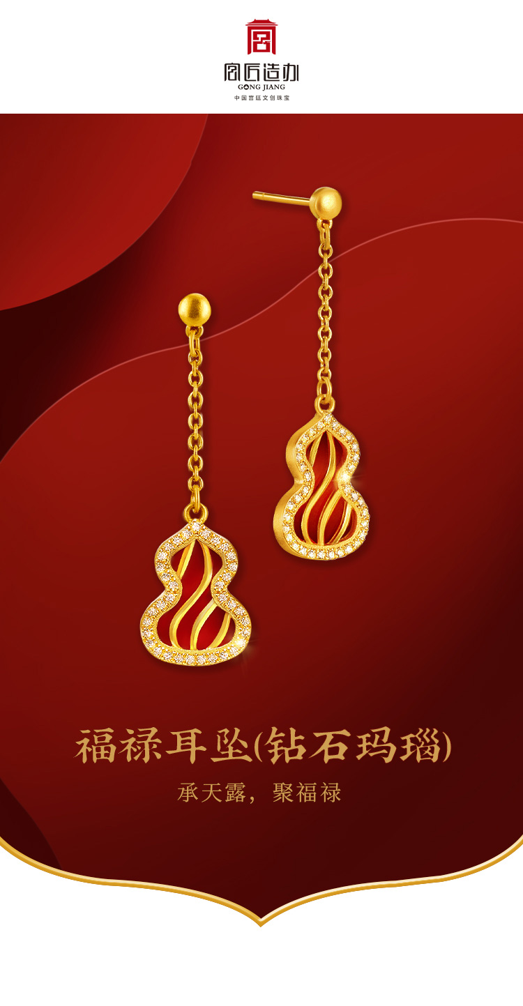 宫匠造办 福禄耳坠 黄金镶钻红玛瑙