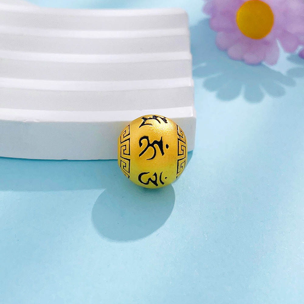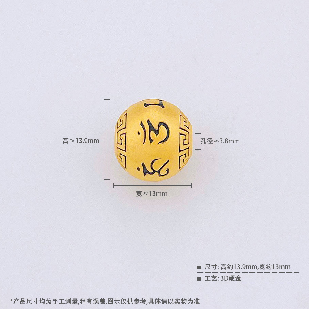 【限时7.5折】【定价黄金】足金 #电黑金 3D硬金空心六字真言转运珠手串配件Diy手串配件(AU3DSC00065-1)预售产品下单后不退款不退货不换货不补差价