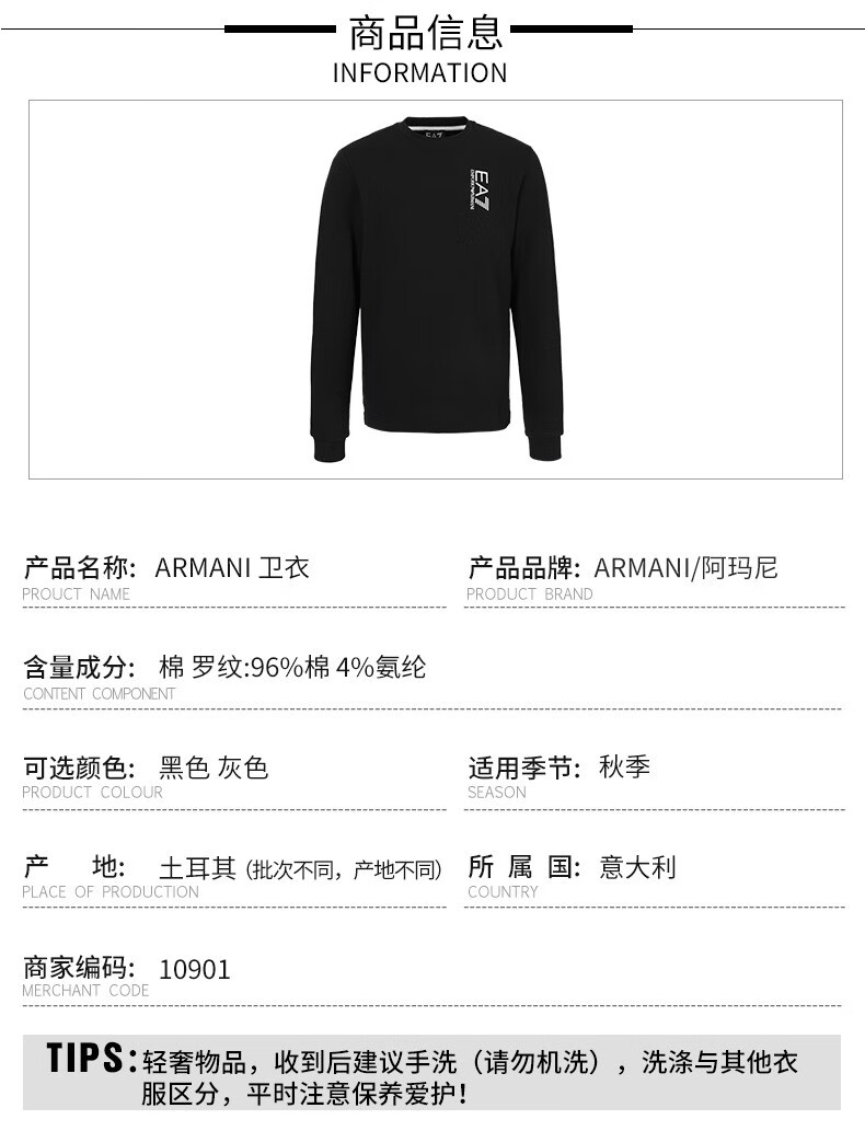 【超惠秒】Armani EA7 男士弹棉风格运动休闲卫衣外套10901
