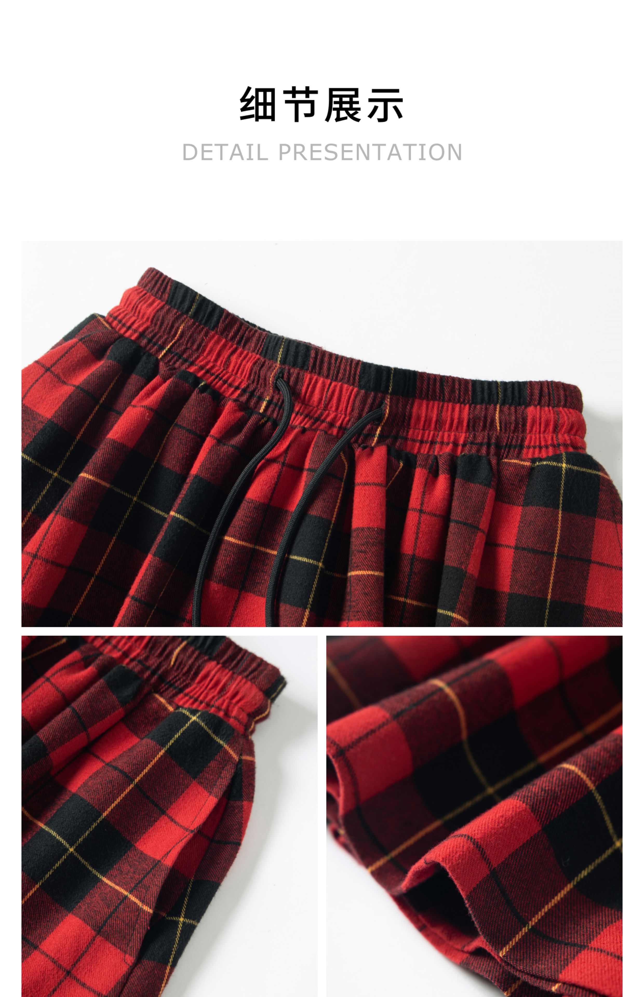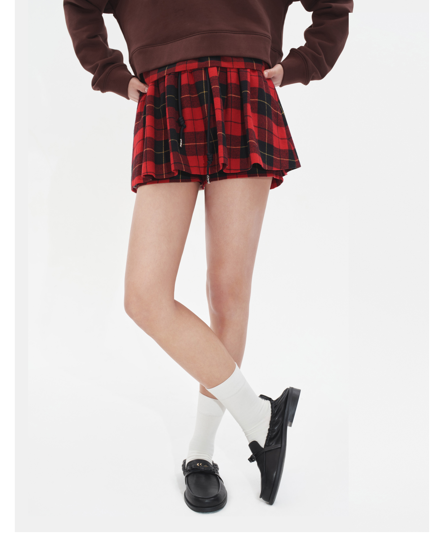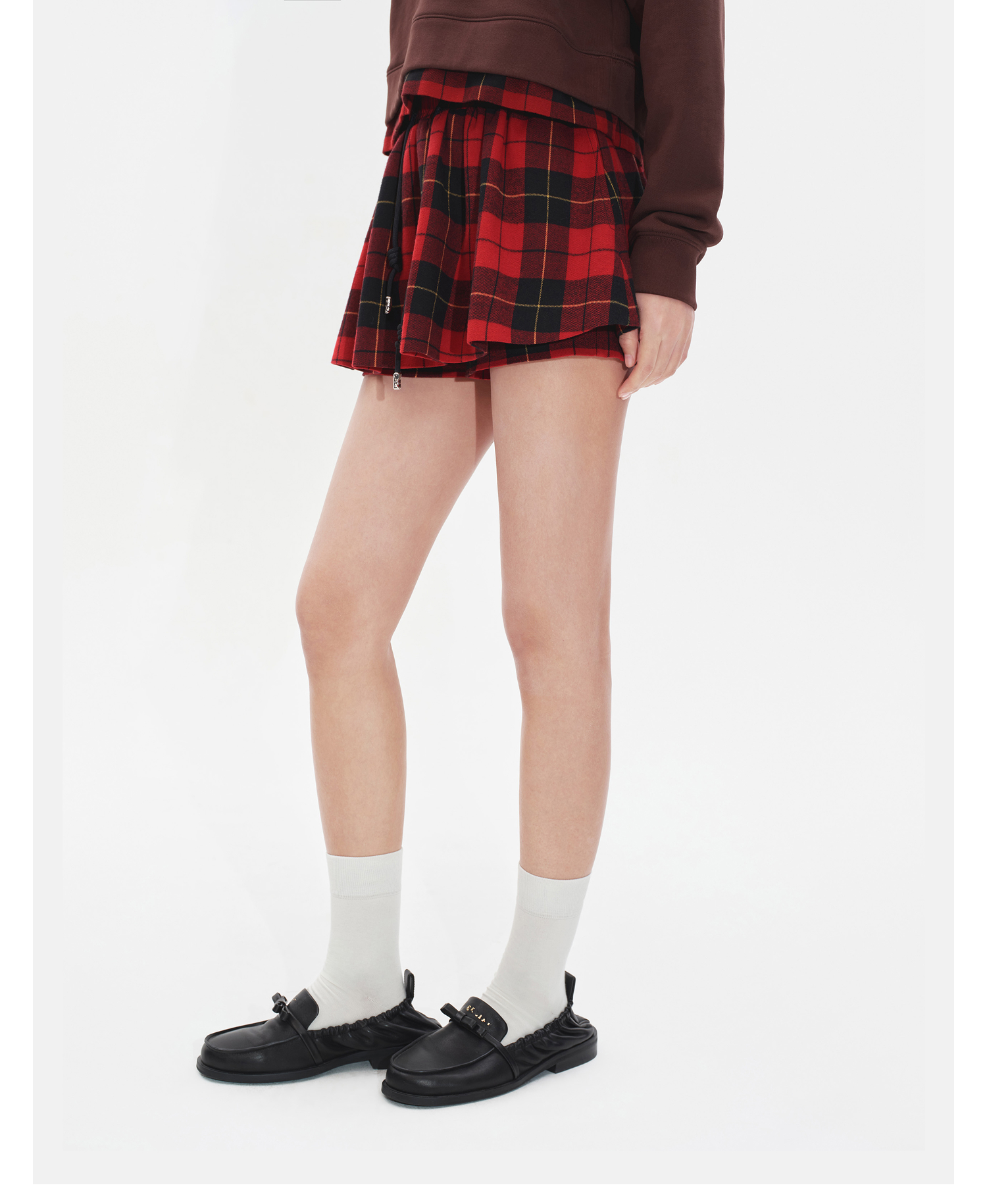 HERLIAN2025年秋季新品女士腰部抽绳设计黑红格纹裙裤
