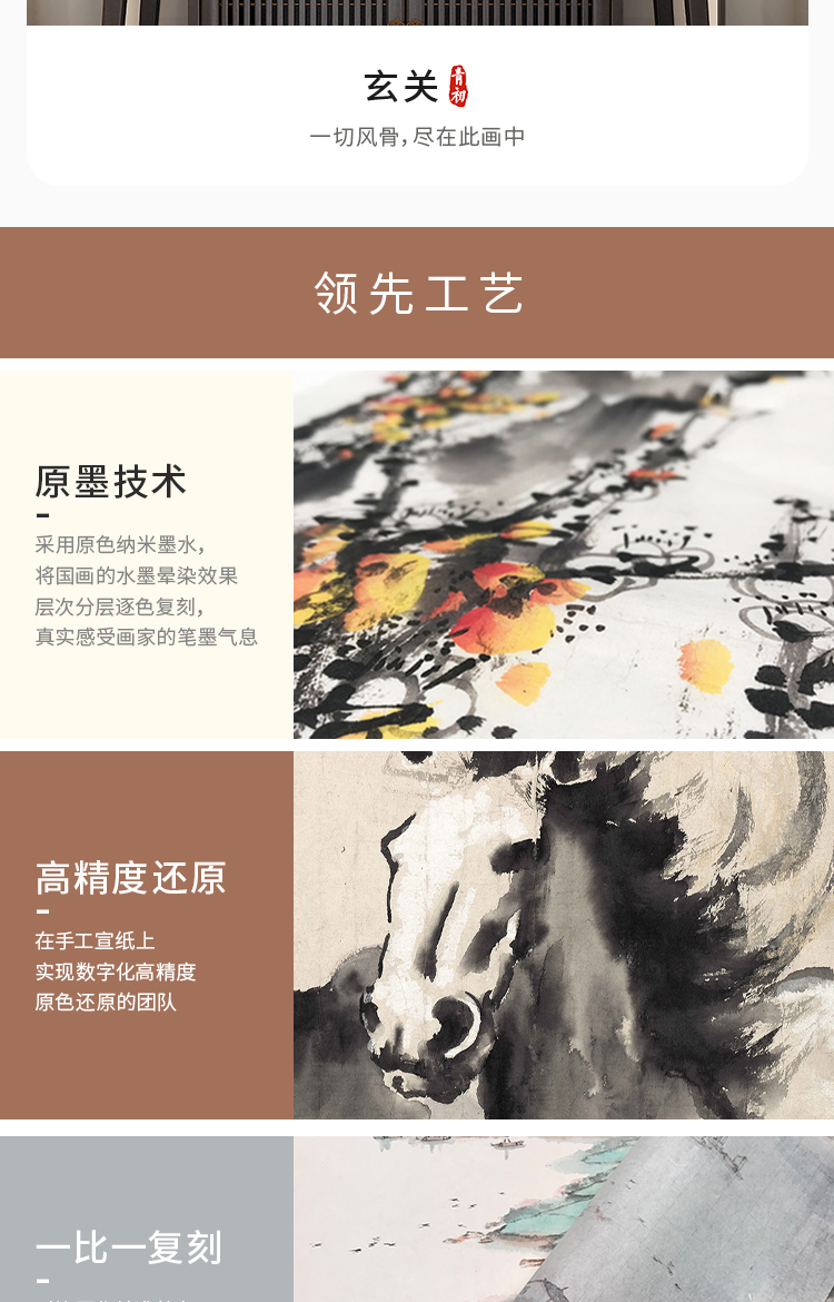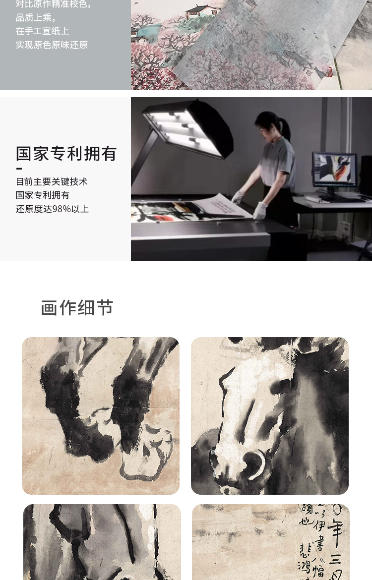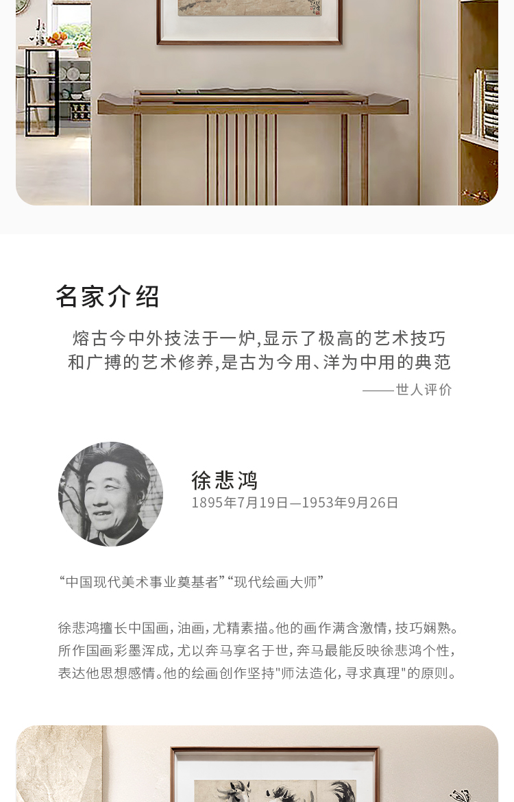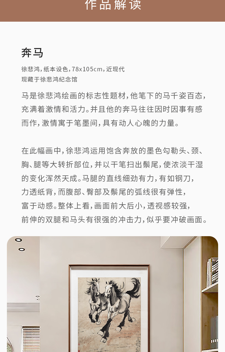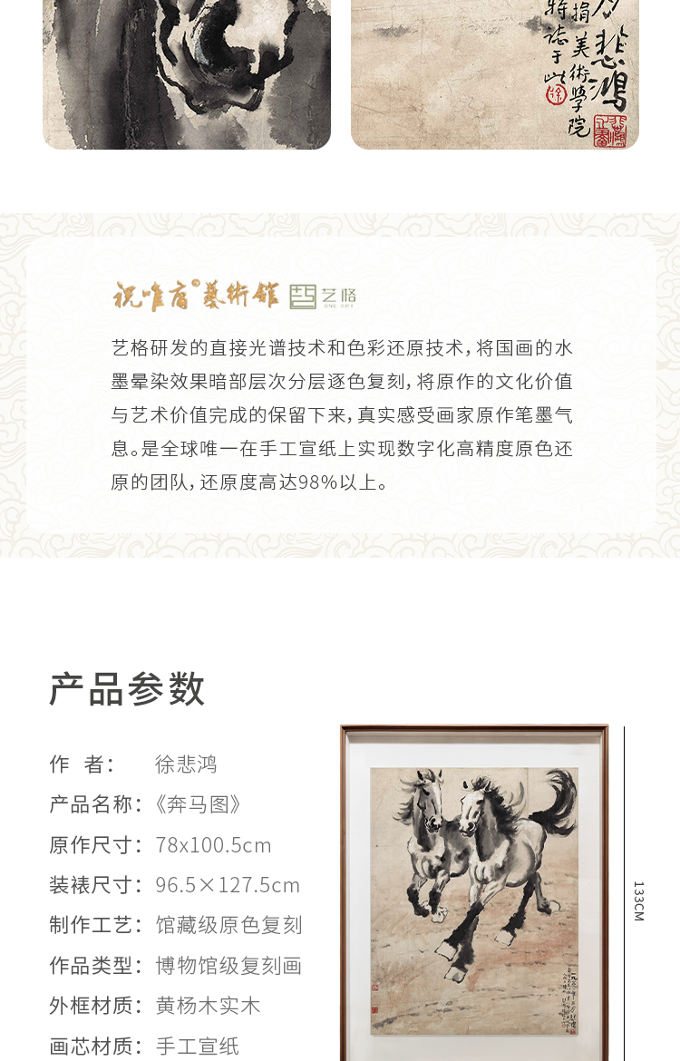 徐悲鸿《奔马图》 博物馆原版复刻画 精品实木卡纸框(付款后15天发货)