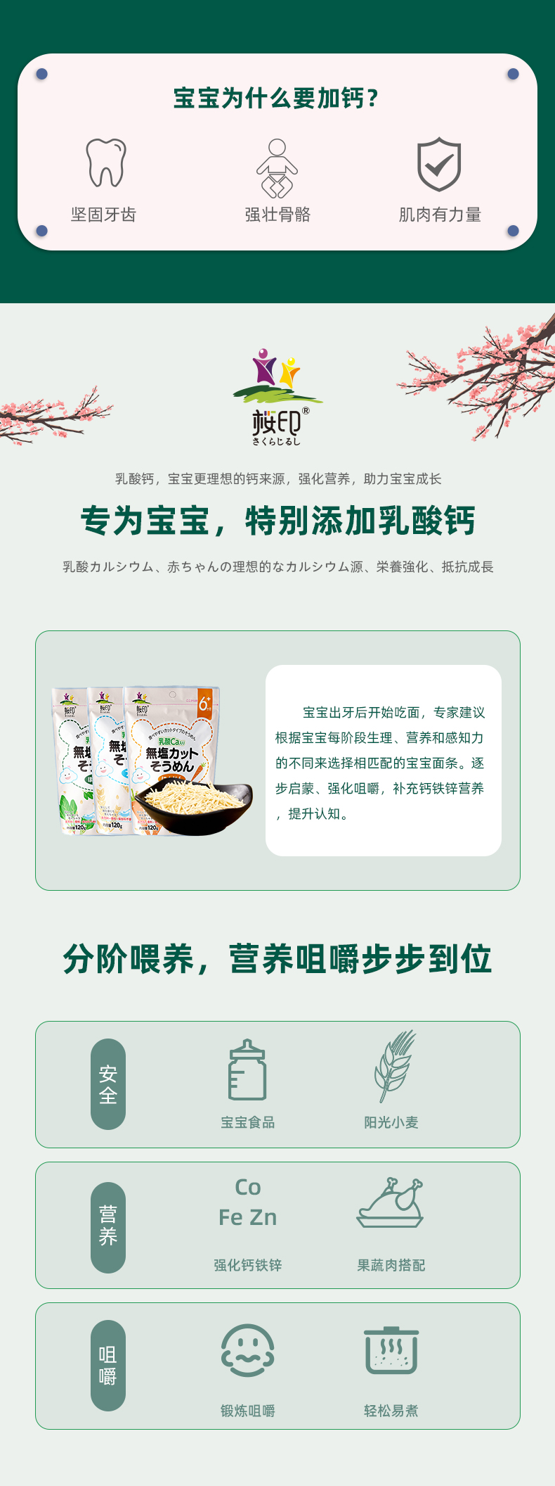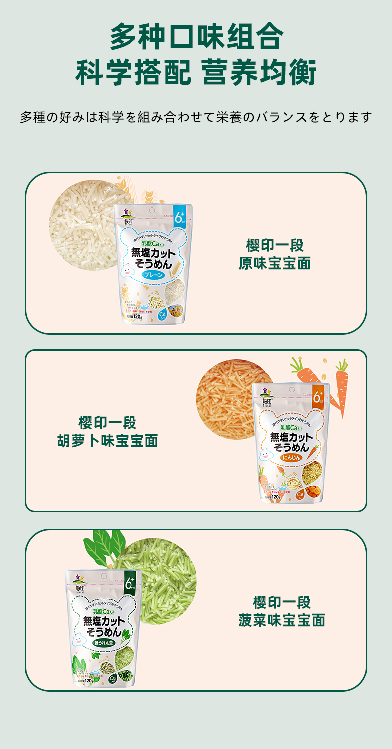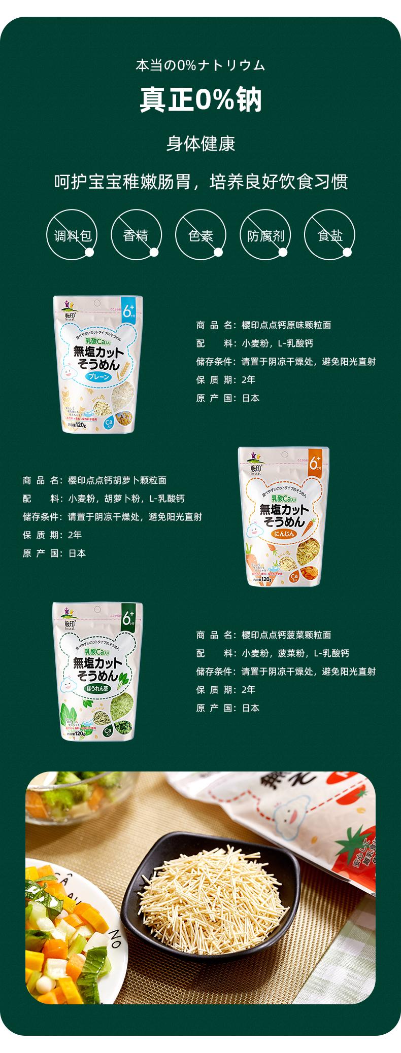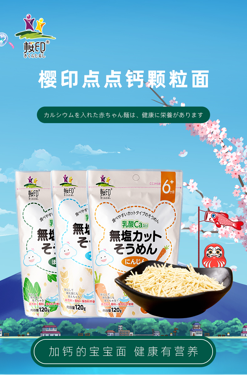 樱印(桜印)日本原装进口宝宝儿童一段点点钙乳酸钙面条120g/袋
