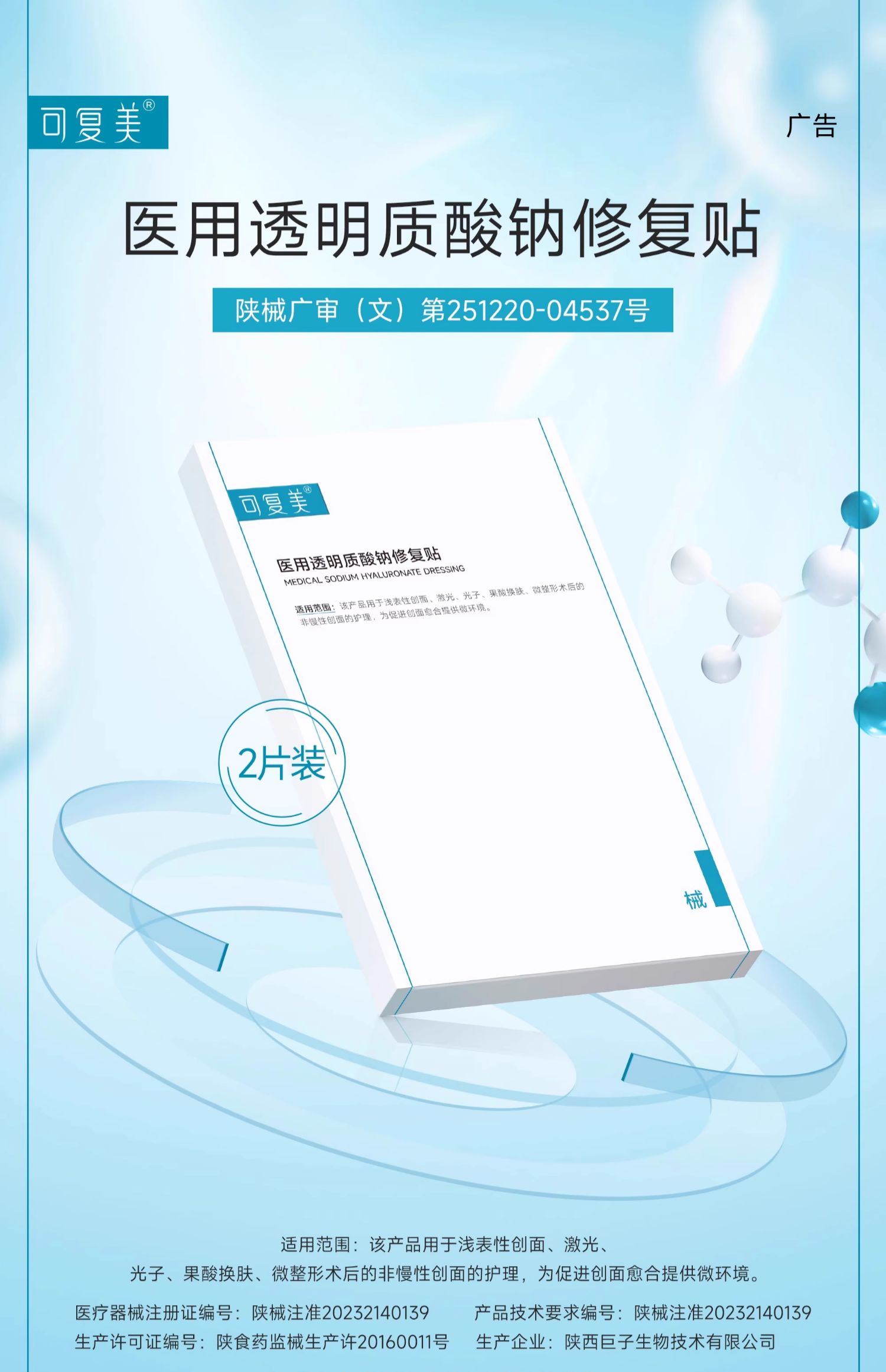 【打包链接】可复美医用敷料创面护理非面膜透明质酸钠修复贴1片