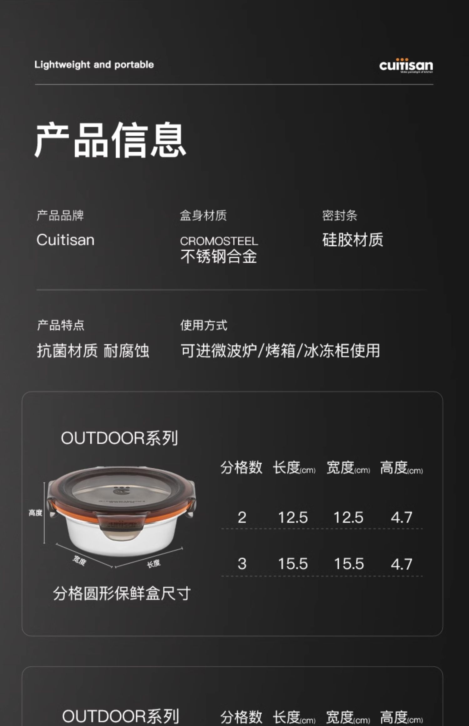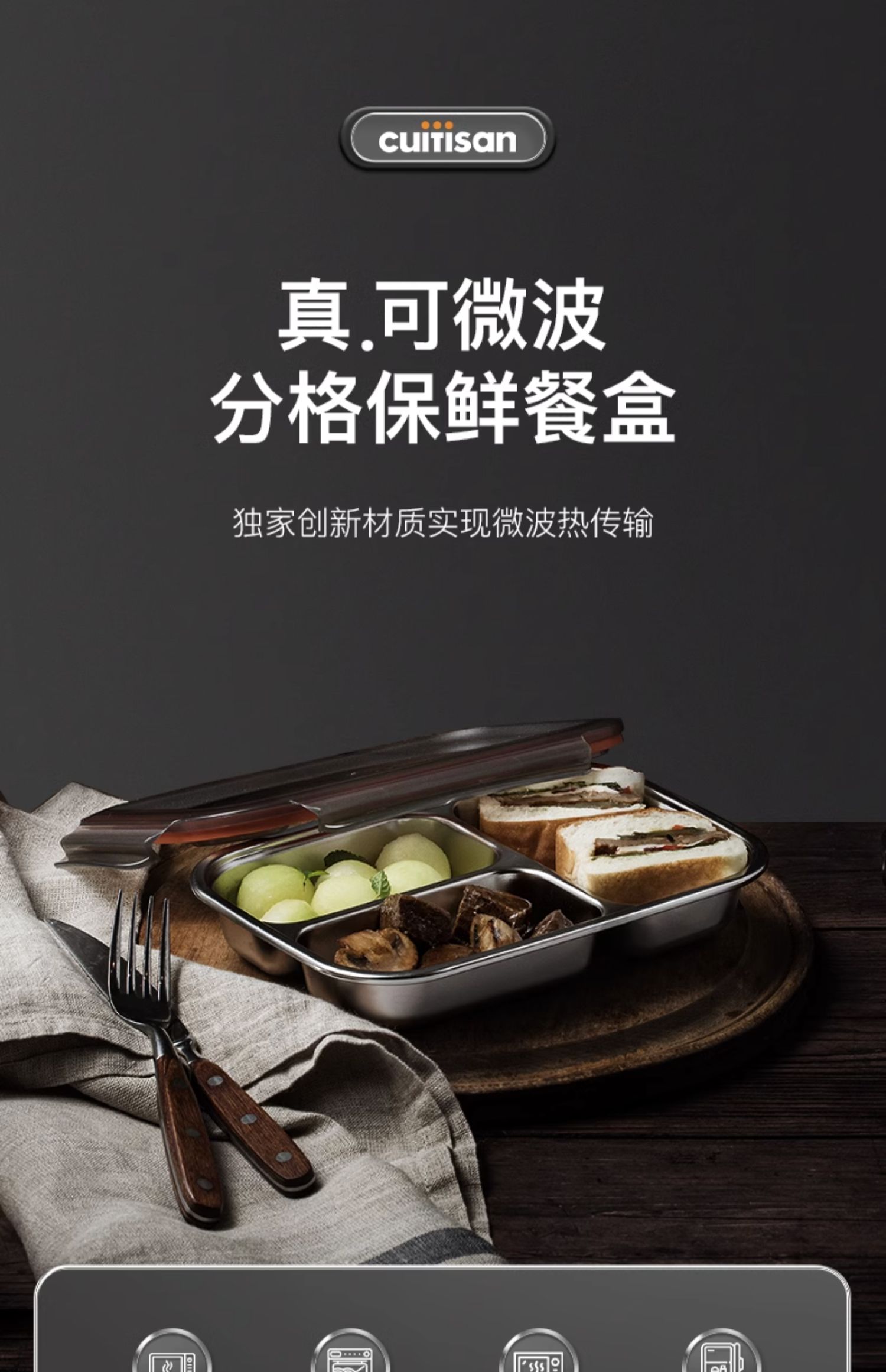 韩国Cuitisan分格系列 304不锈钢保鲜盒 微波炉专用FX-A-2294-240429 -【HGSY2404666666】