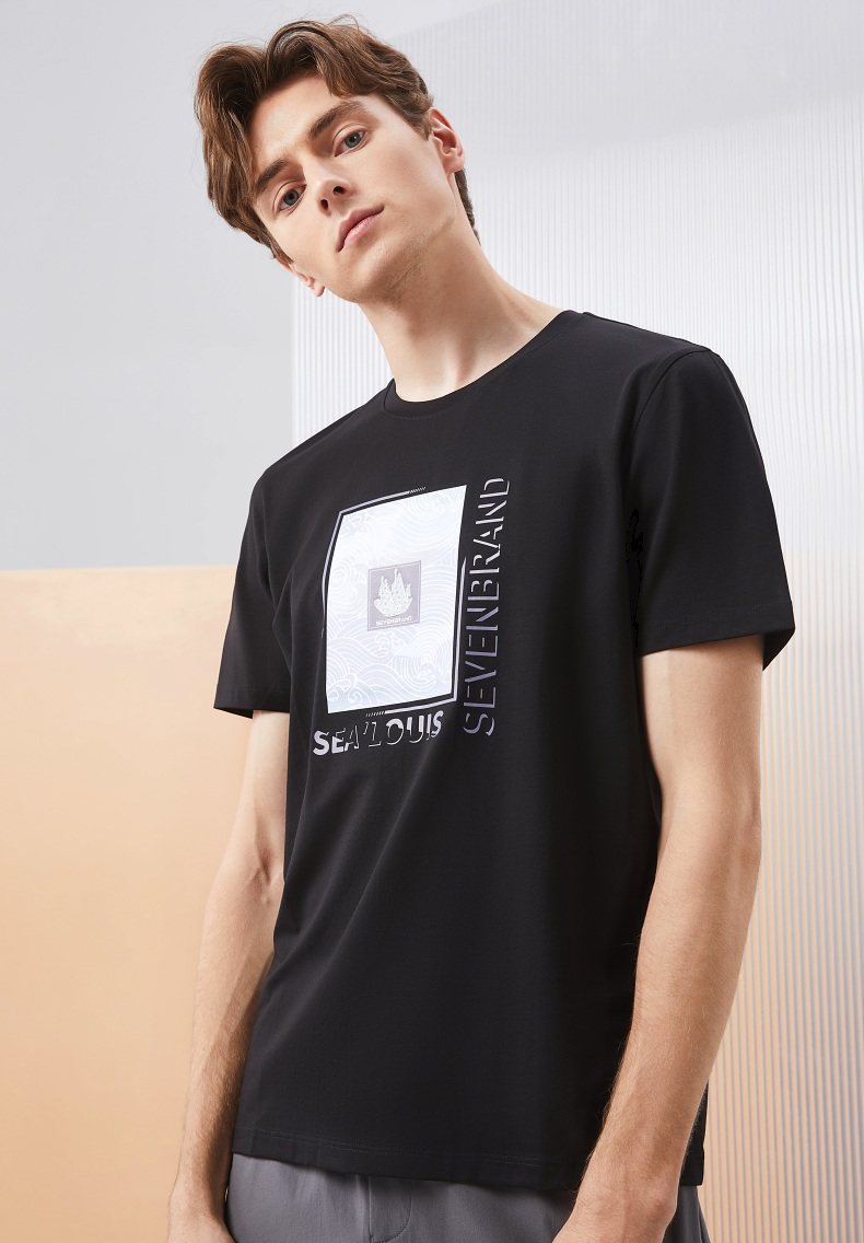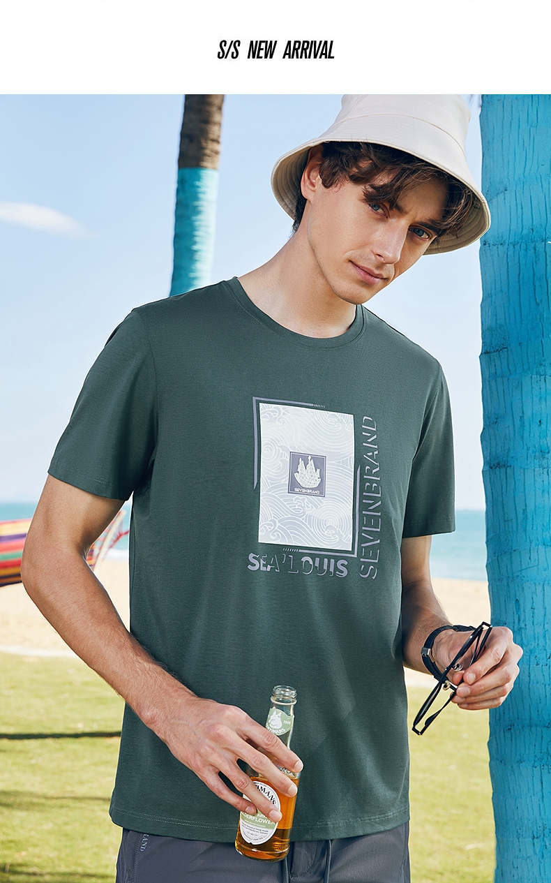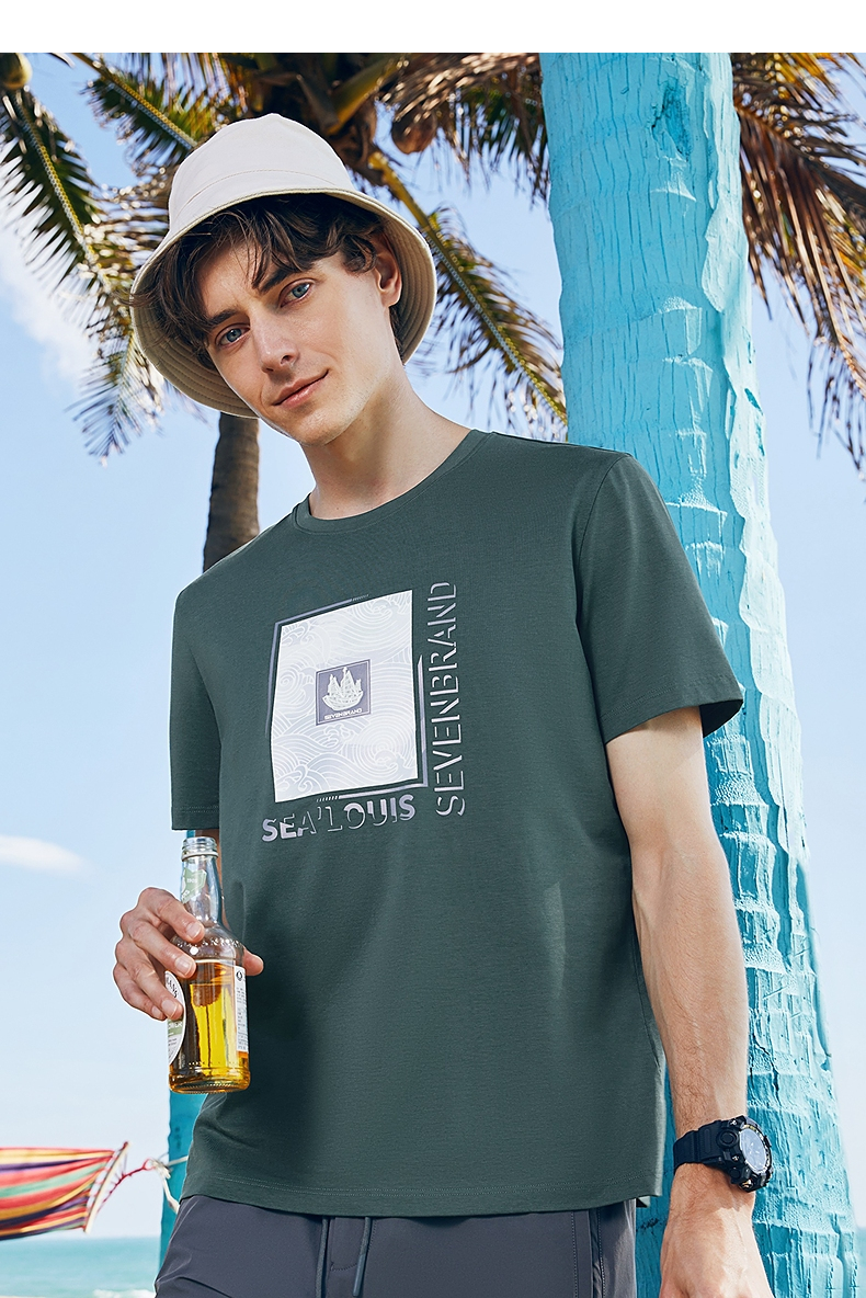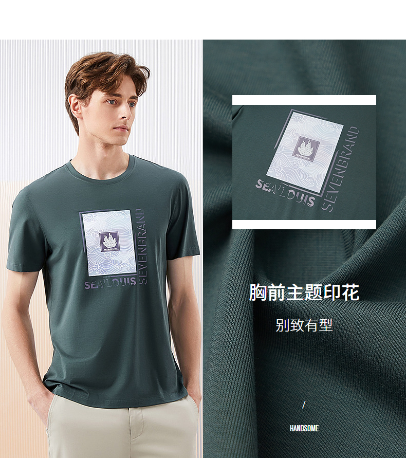 【含莫代尔】柒牌短袖T恤男夏季新款时尚百搭帆船印花圆领上衣薄 126T71980