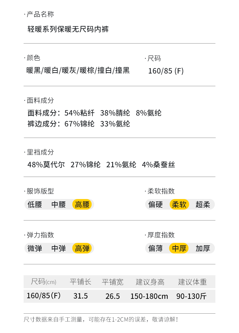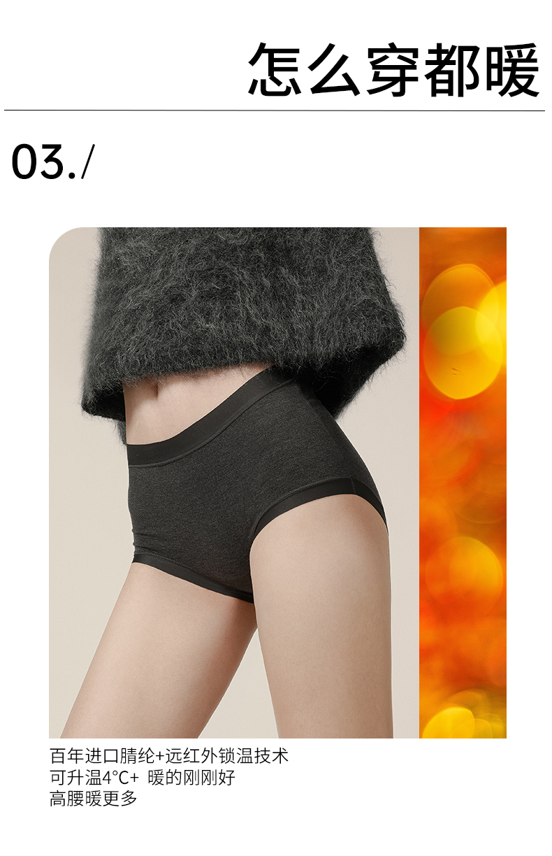 【颗里专场】内裤中高腰/中低腰可选,颗里轻暖系列保暖无尺码内裤3条