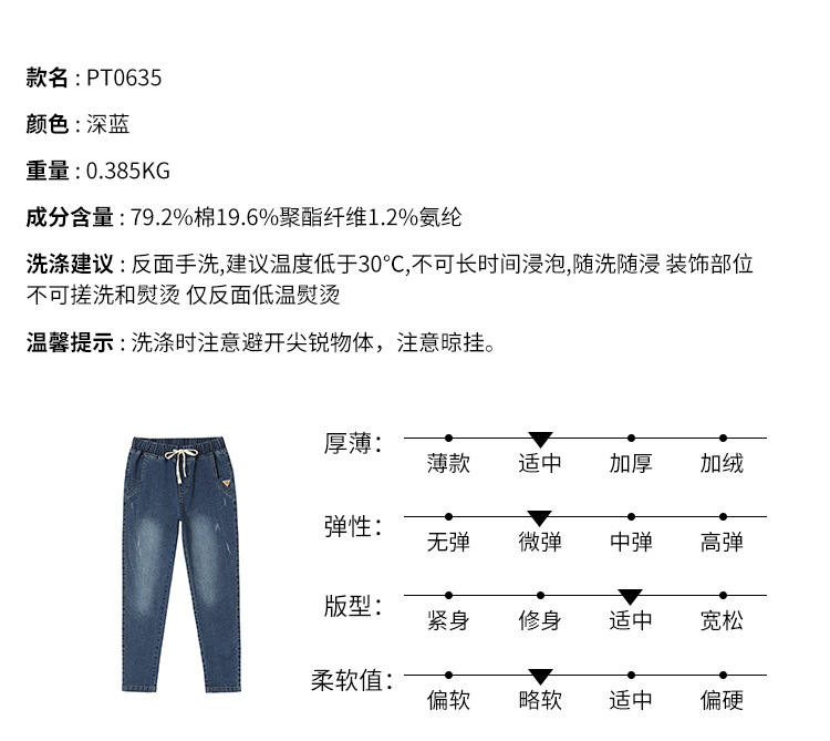百搭休闲,哈伦裤松紧腰宽松显瘦牛仔裤GYM-PT0635