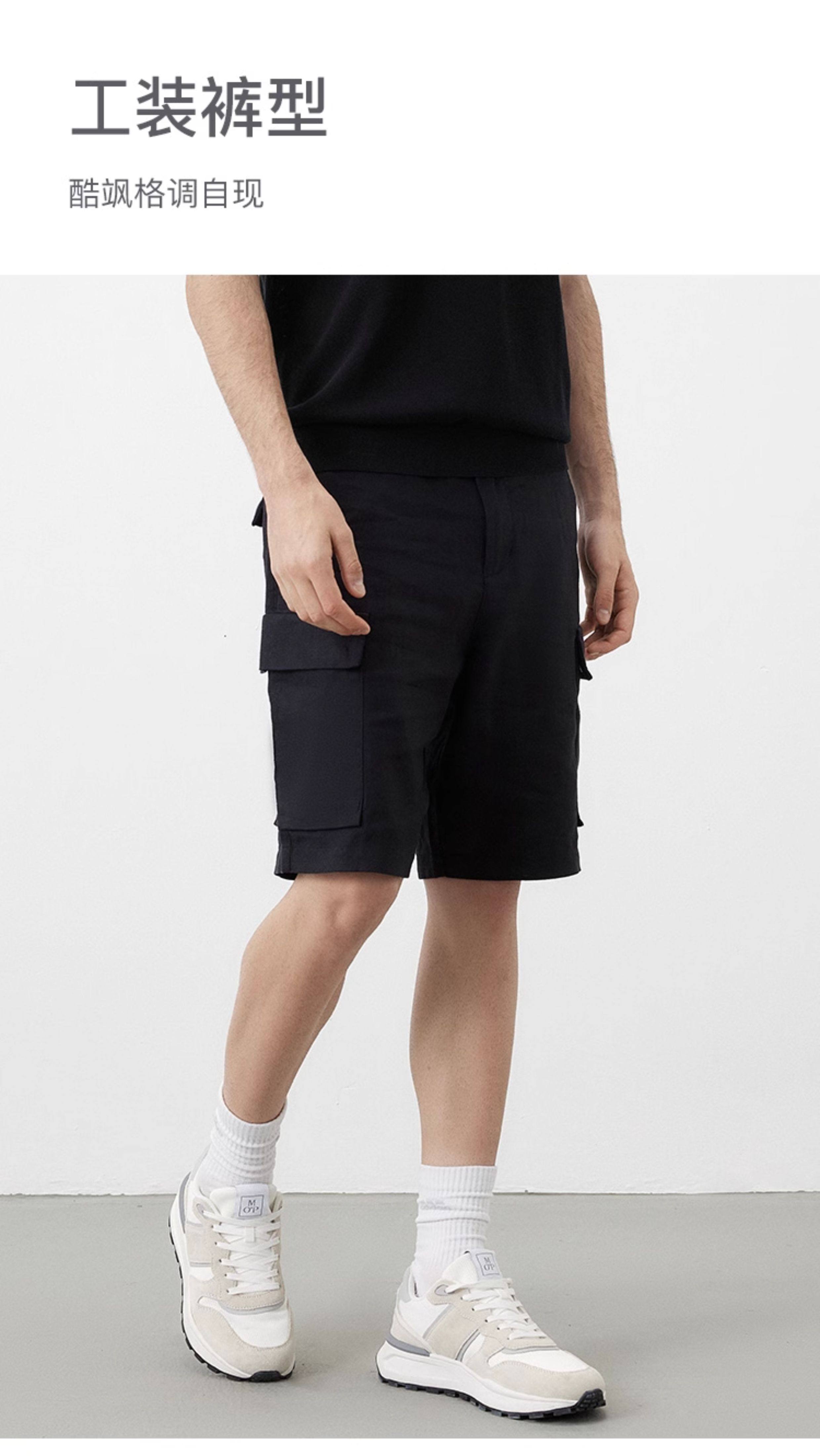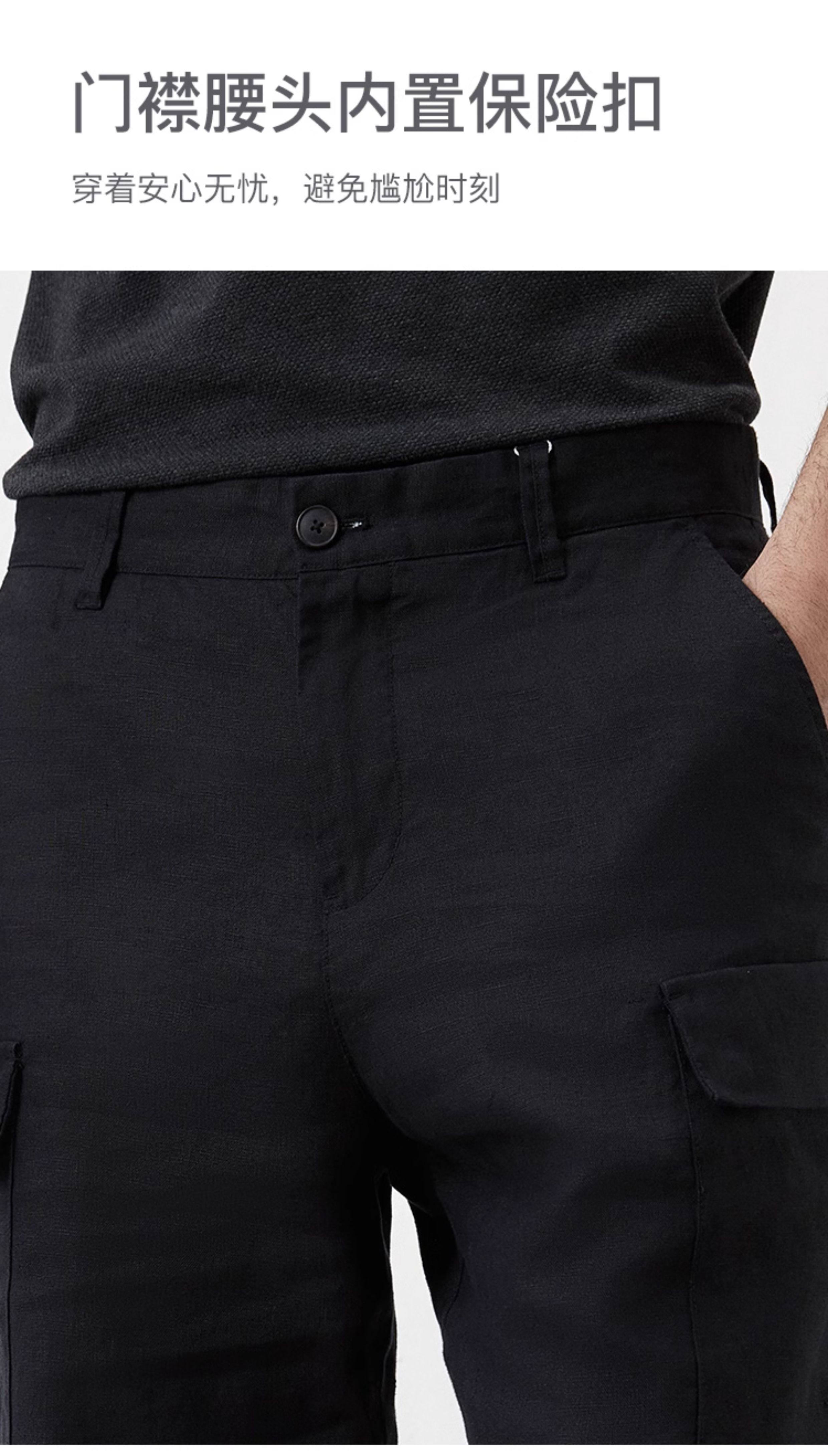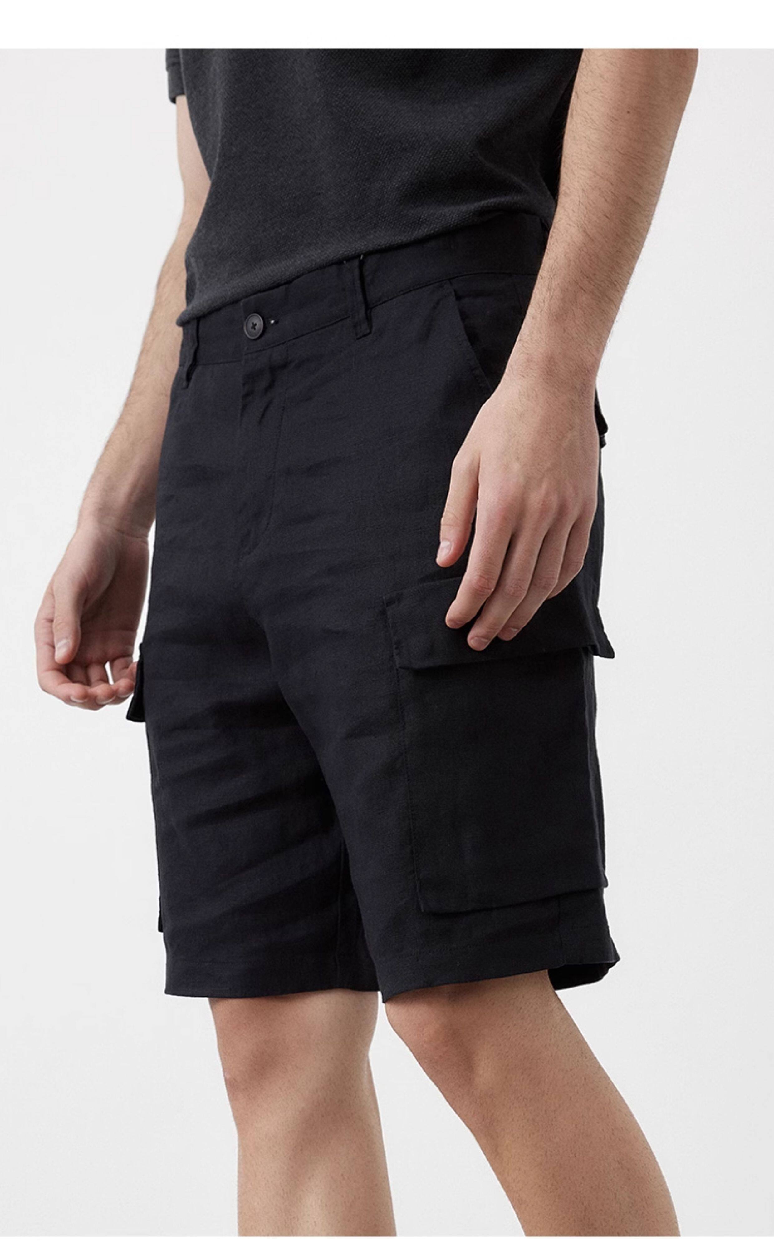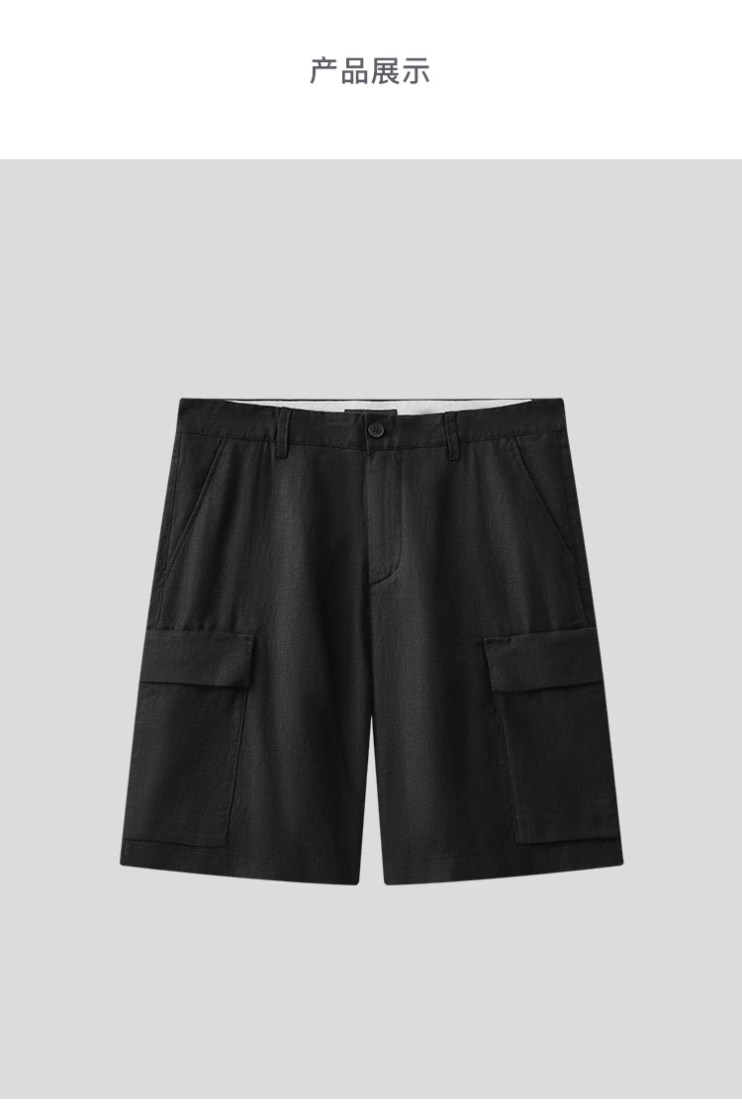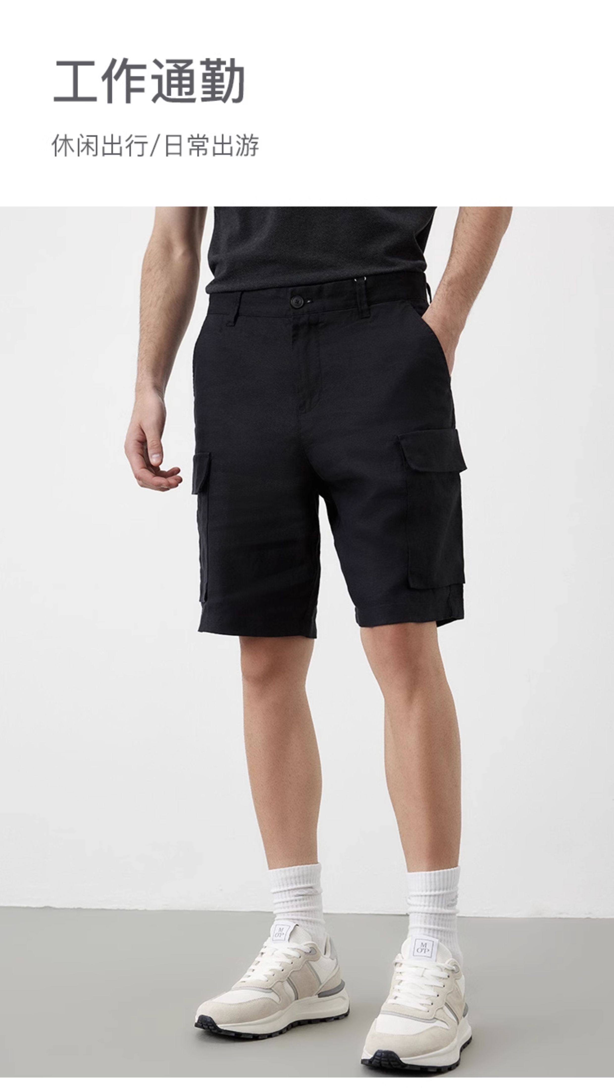 Marc O'Polo/MOP夏季新款休闲亚麻透气工装短裤黑色休闲男五分裤