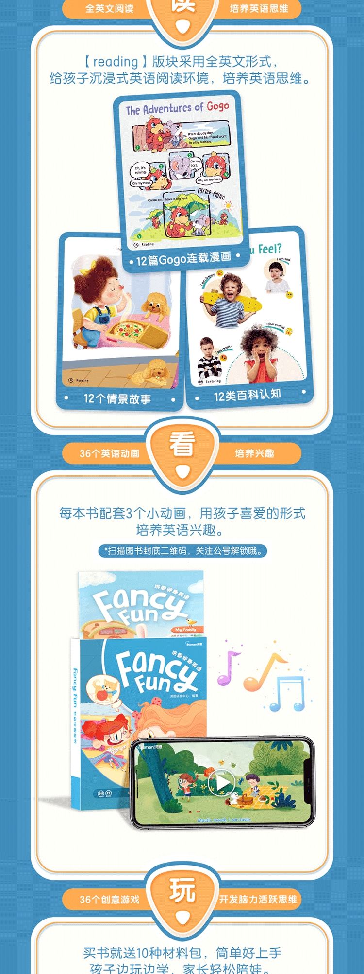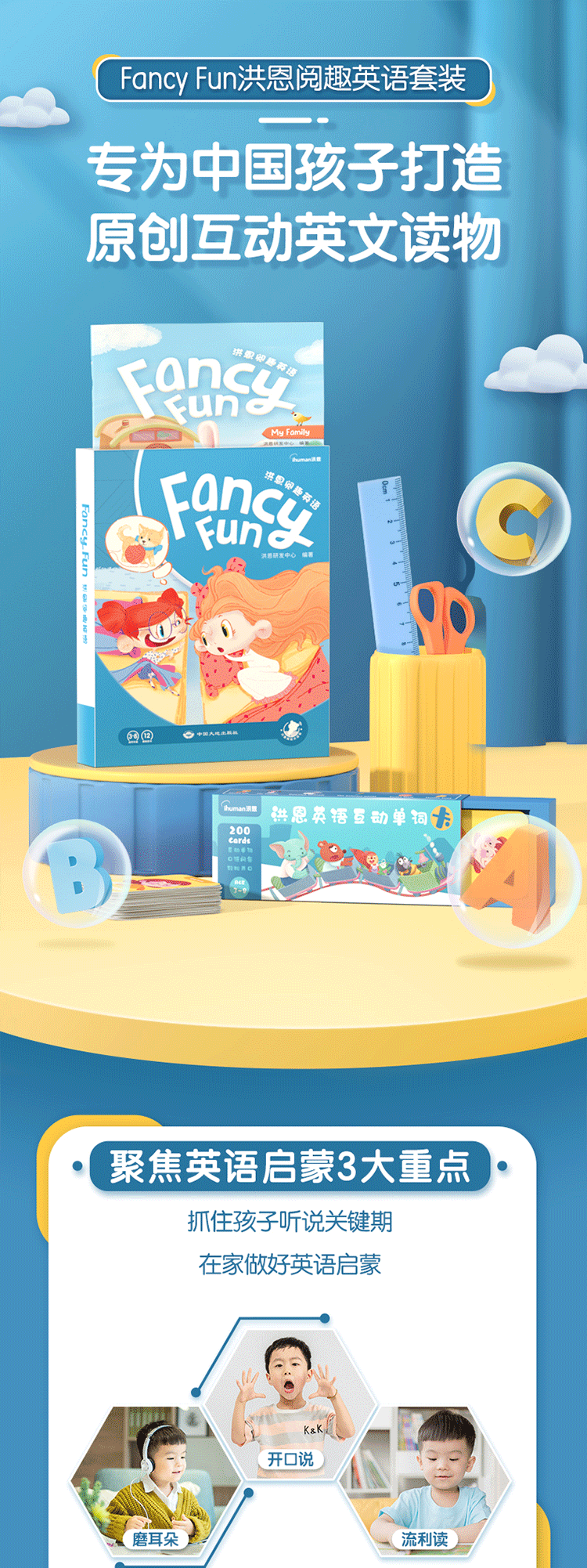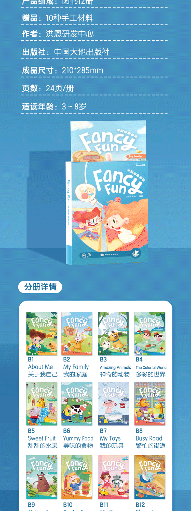 3-8岁推荐|洪恩阅趣英语 Fancy Fun套装 12大主题图书 覆盖1-3年级核心词 可点读