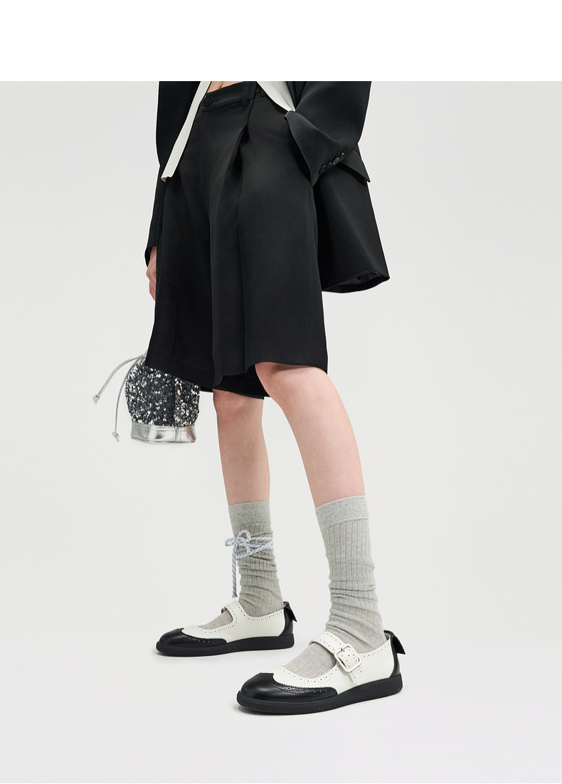 [福利价]lost in echo2025春夏新款浅口真皮轻便布洛克薄底玛丽珍小皮鞋女