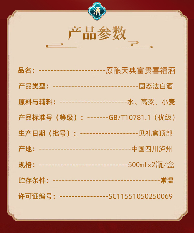 泸州老窖原酿天典富贵喜福 42° 500ml浓香型白酒