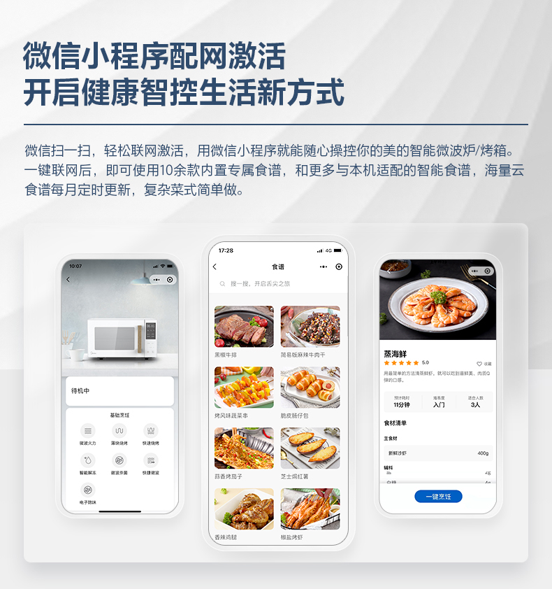 美的(Midea)20升 多功能家用微波炉 大平板均匀加热 智能解冻 智能菜单 PM20B1