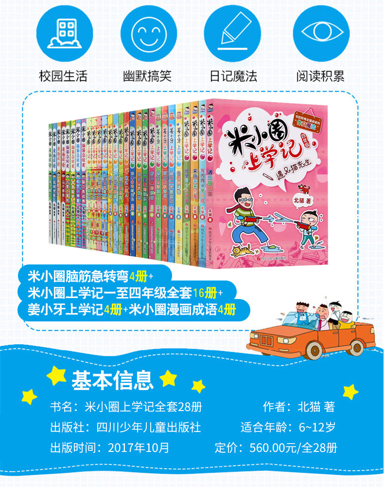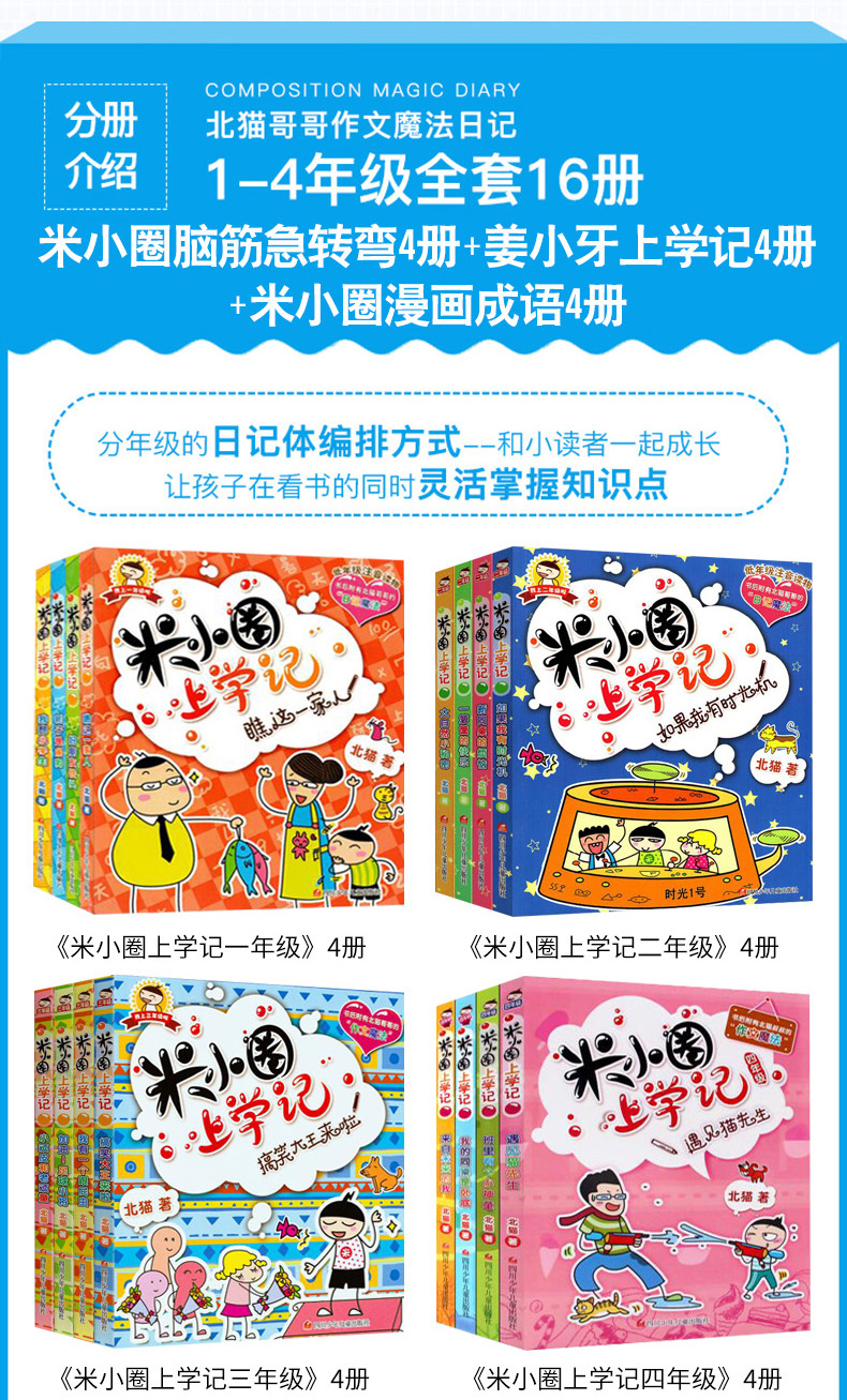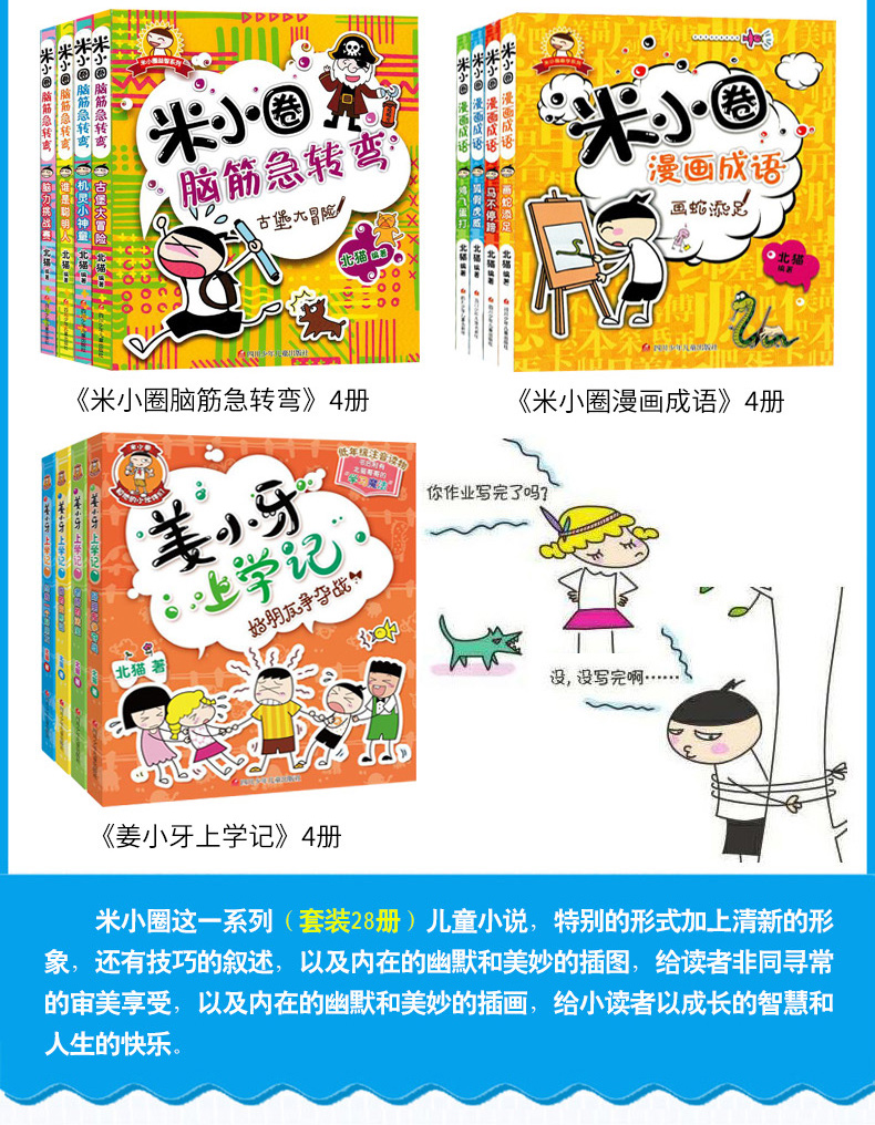 1.米小圈上学记一年级(全4册) 2.米小圈上学记二年级(全4册) 3.米小圈上学记三年级(全4册) 4.米小圈漫画成语故事(全4册) 5.米小圈脑筋急转弯(全4册) 6.米小圈上学记四年级(全4册) 7.姜小牙上学记(全4册) |