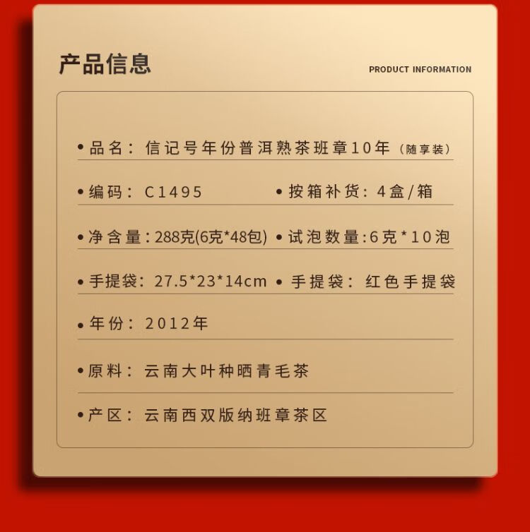 八马茶叶信记号年份普洱茶.班章10年随享装288g/盒