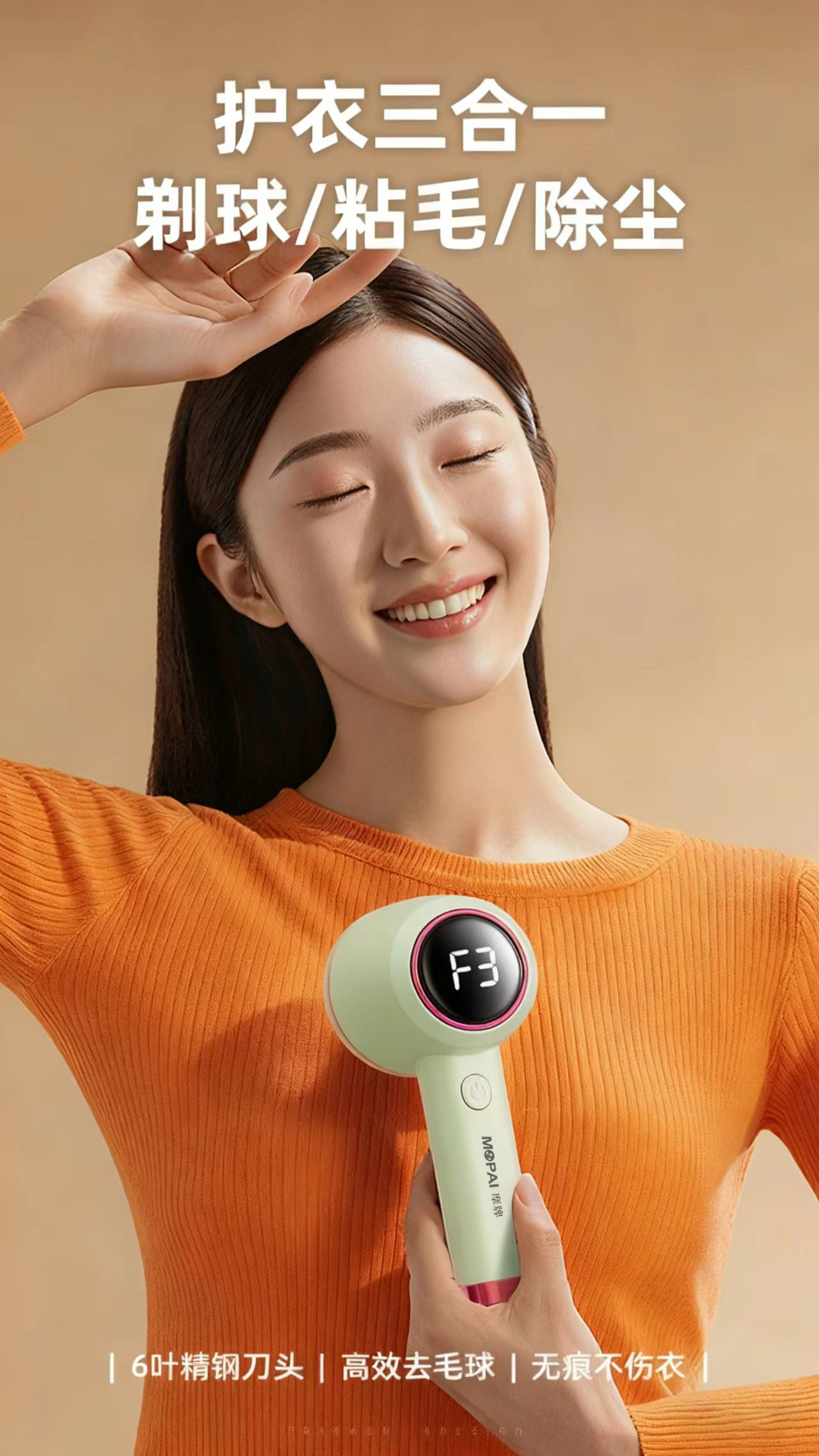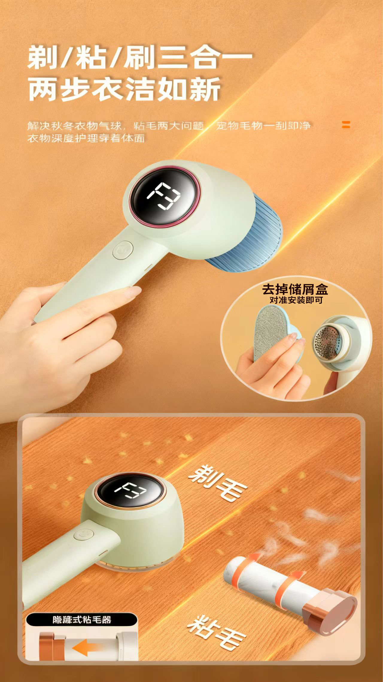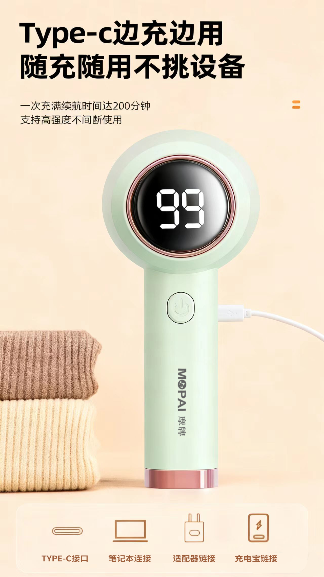 【剃球粘毛除尘 护衣三合一】摩牌 三合一毛球修剪器YZ-223 智能数显 5D蜂窝网罩 6叶精钢刀片 无痕不伤衣 三档档位 轻量小巧 适应不同衣物面料