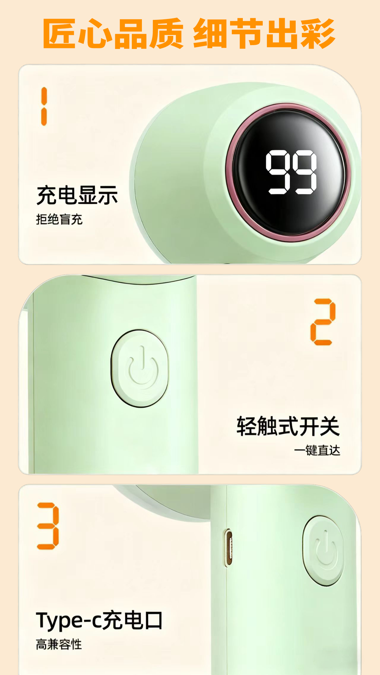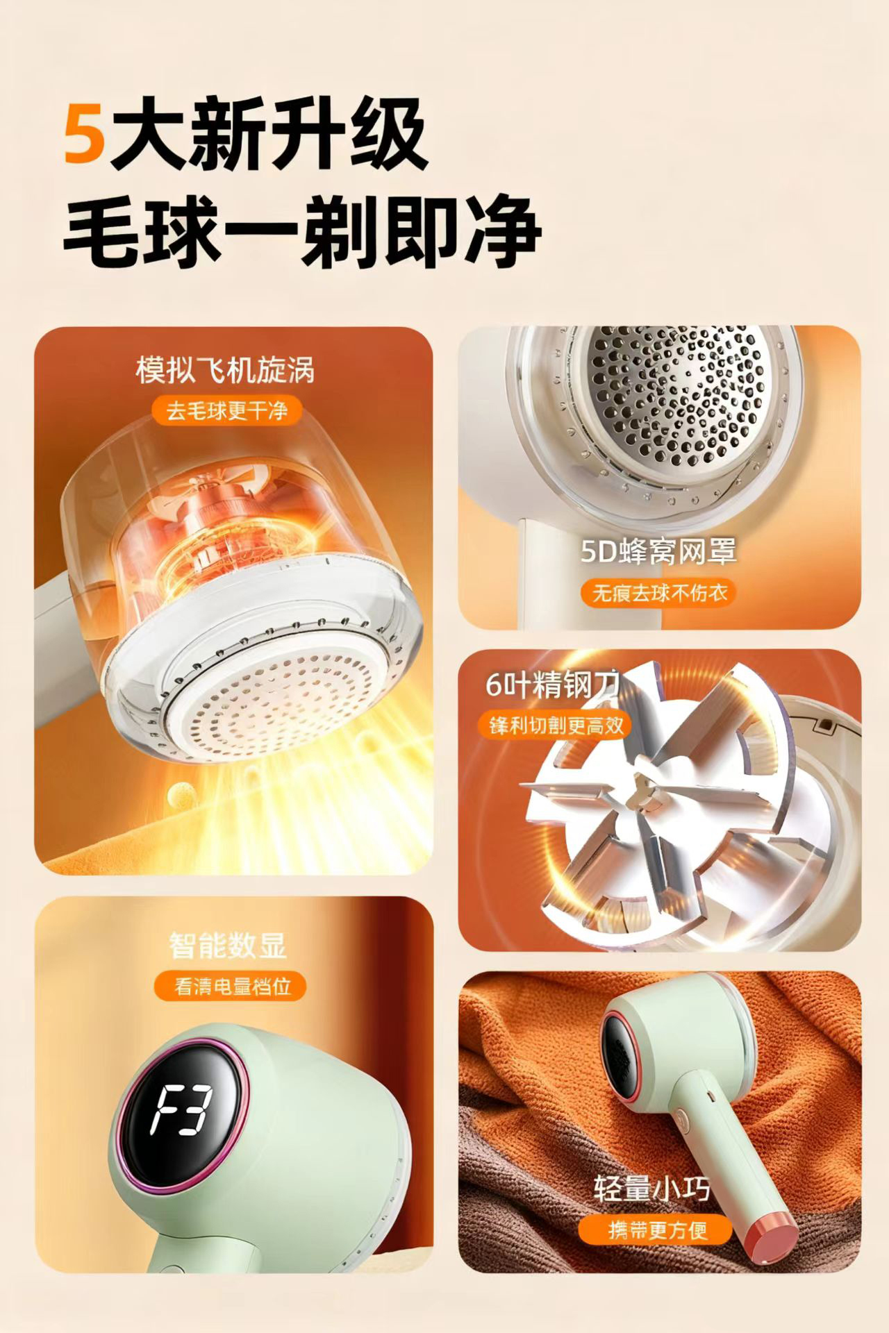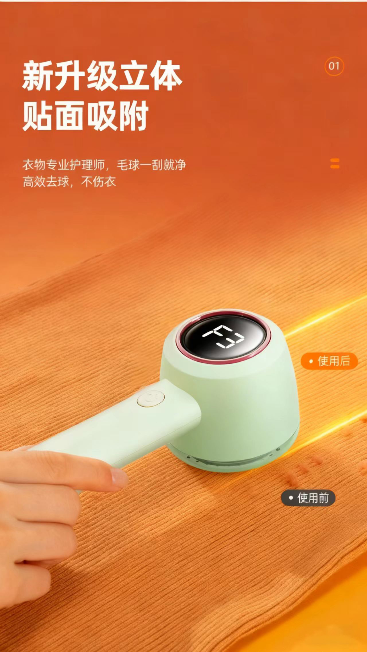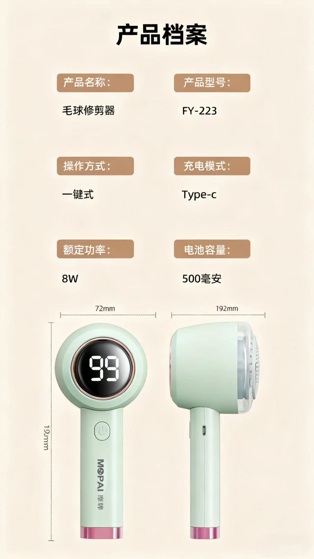 【剃球粘毛除尘 护衣三合一】摩牌 三合一毛球修剪器YZ-223 智能数显 5D蜂窝网罩 6叶精钢刀片 无痕不伤衣 三档档位 轻量小巧 适应不同衣物面料