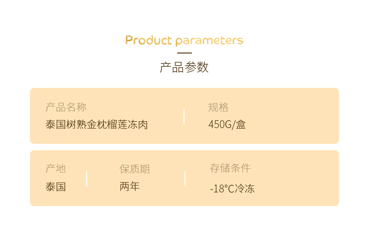 泰国进口 冷冻金枕头榴莲肉 450g*1盒(包邮直发)