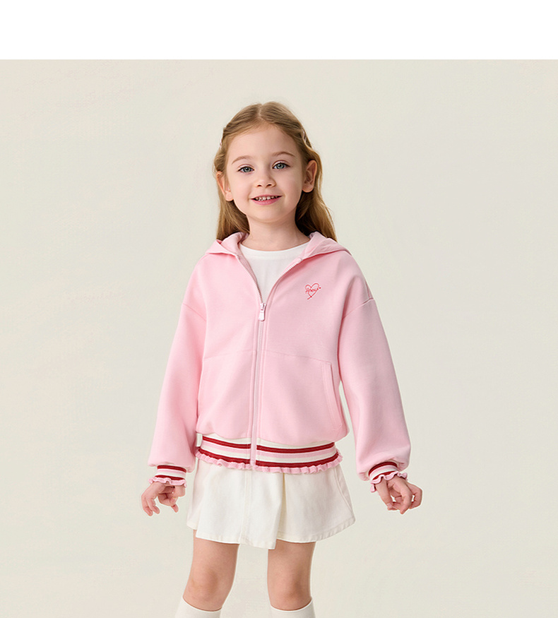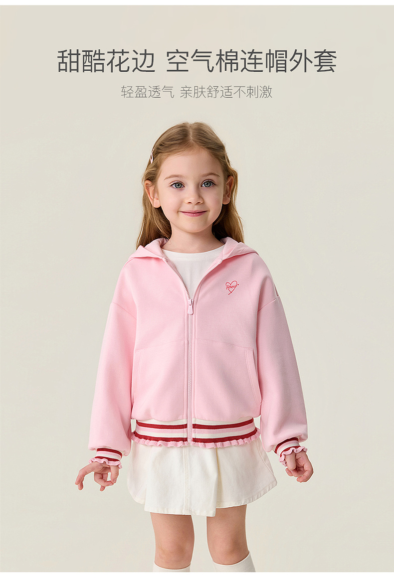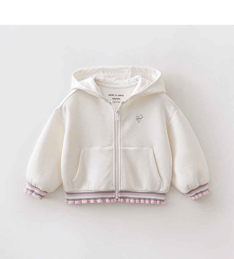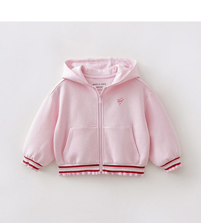 马克珍妮甜酷花边女童空气棉连帽外套2026年春装新款560105