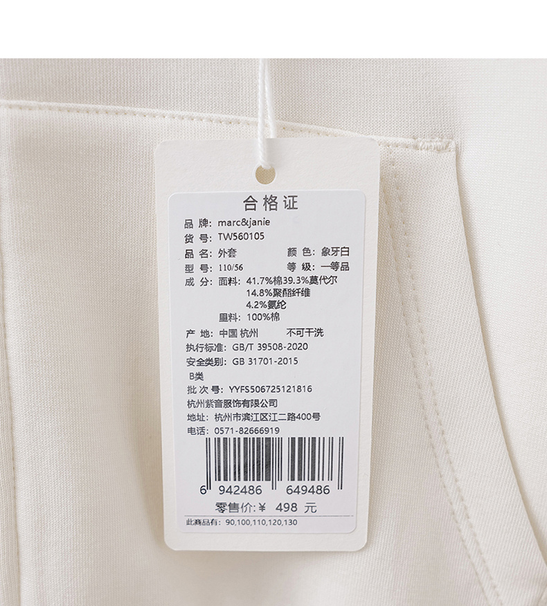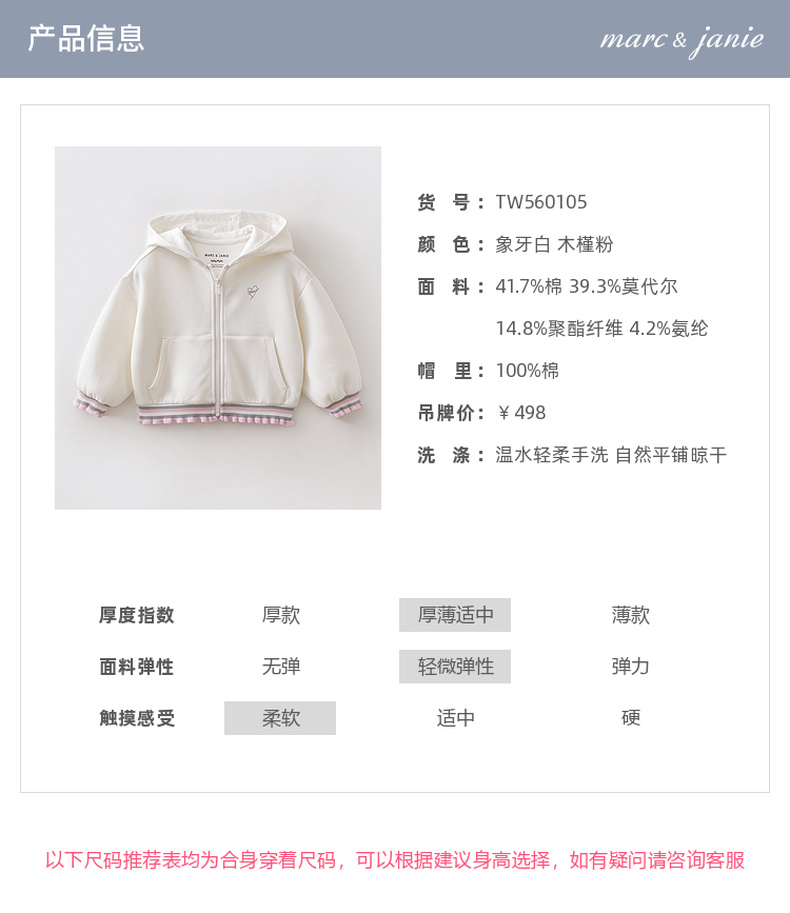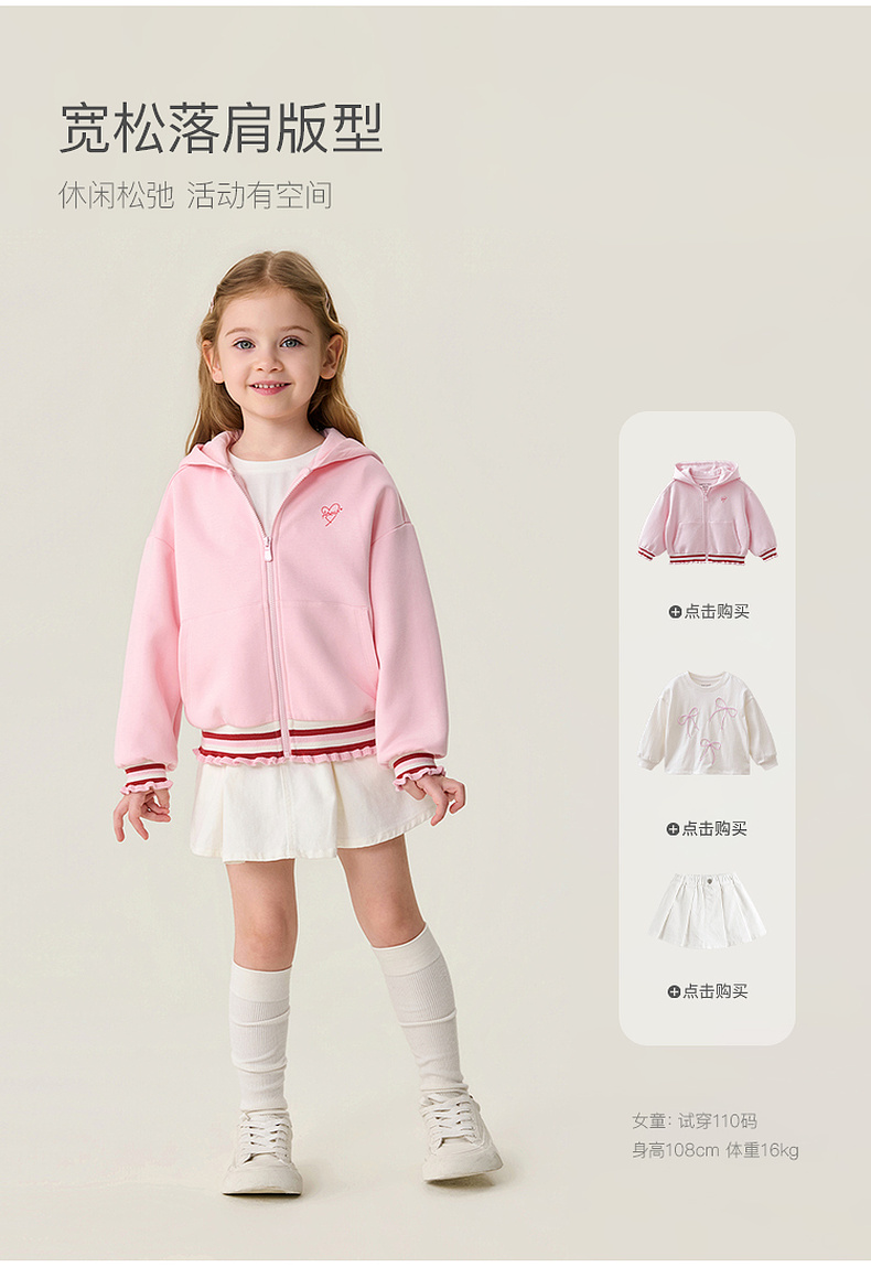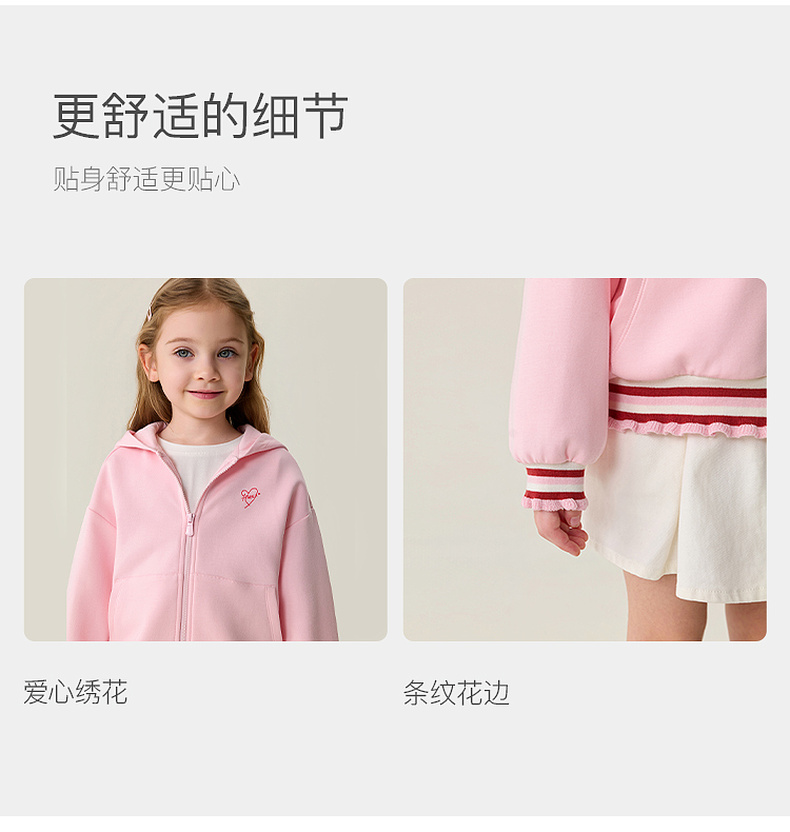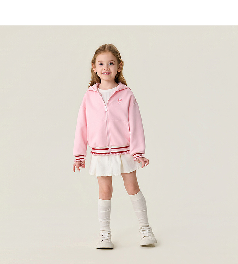 马克珍妮甜酷花边女童空气棉连帽外套2026年春装新款560105