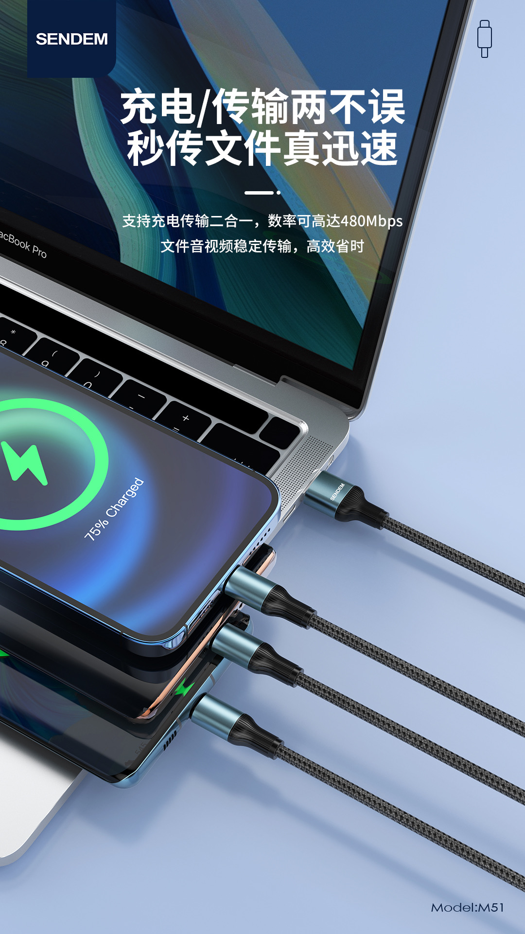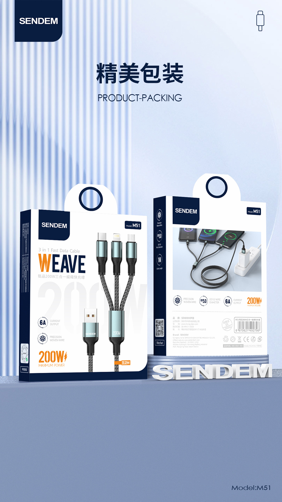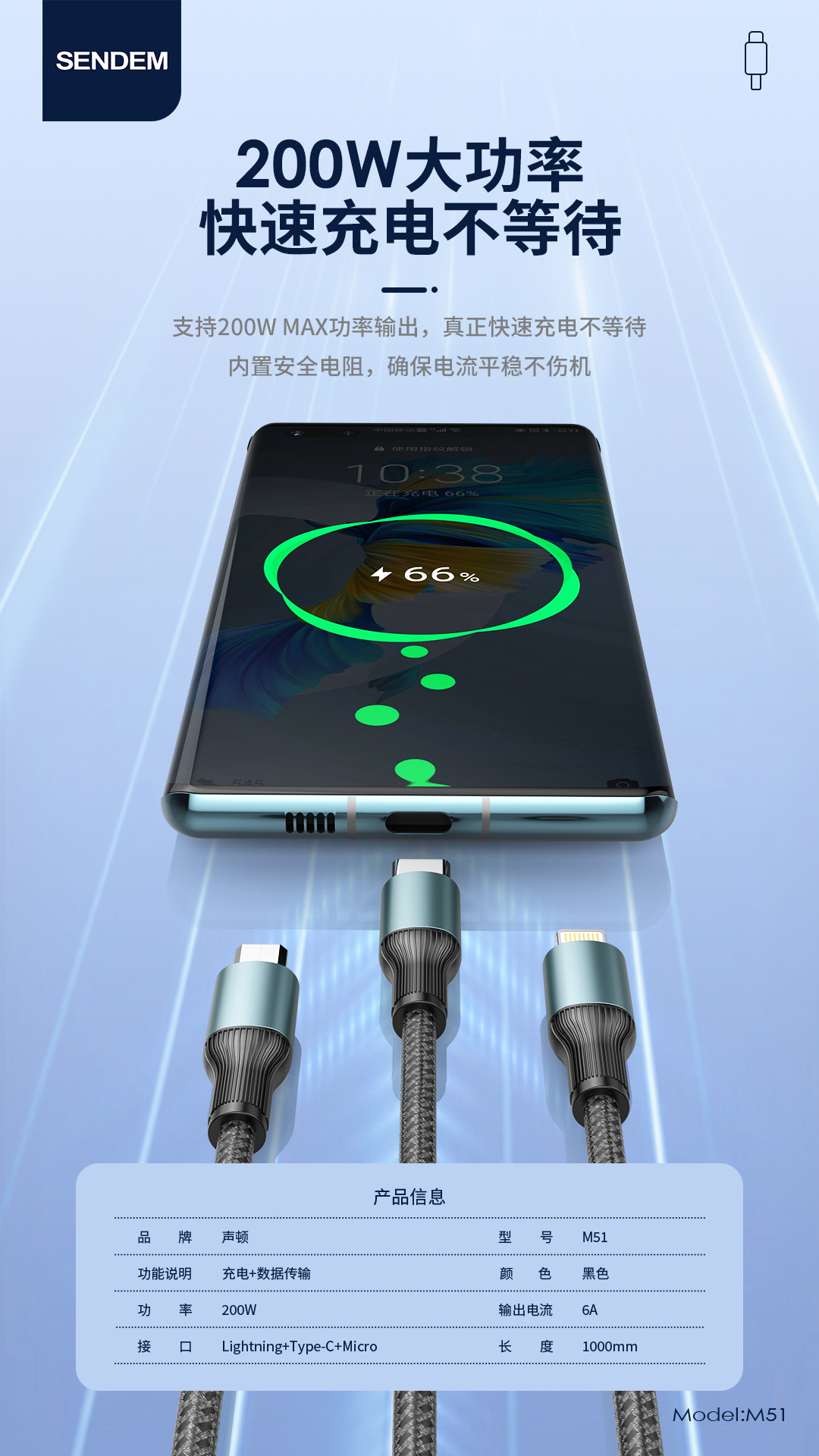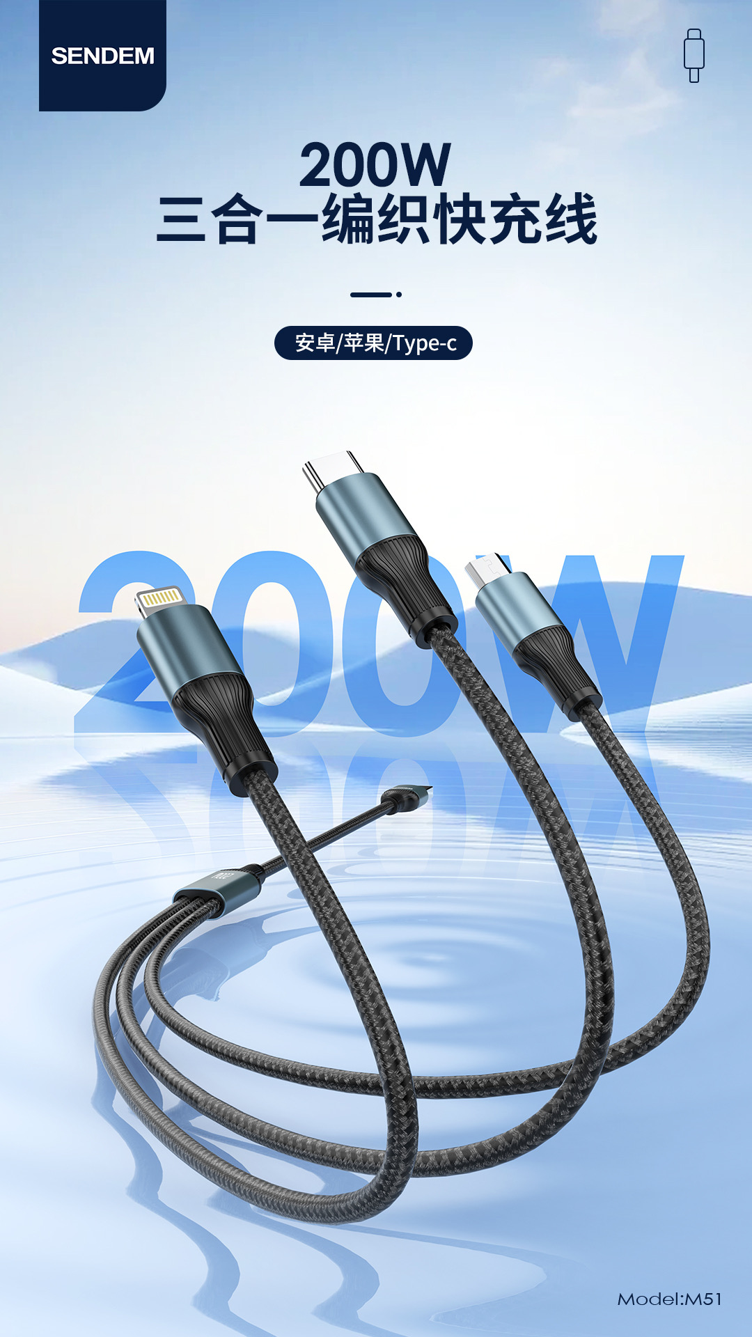 200w一拖三闪充编织数据线金属闪充快充