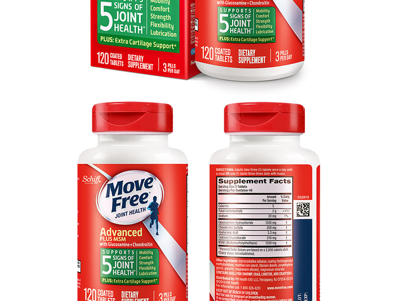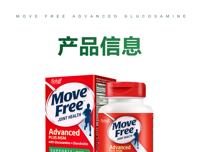 【跨境】美国Schiff旭福MoveFree益节氨基葡萄糖维骨力120粒绿瓶 新老包装随机发货