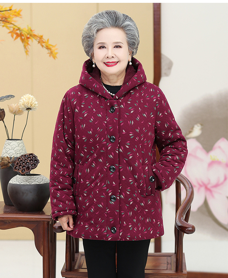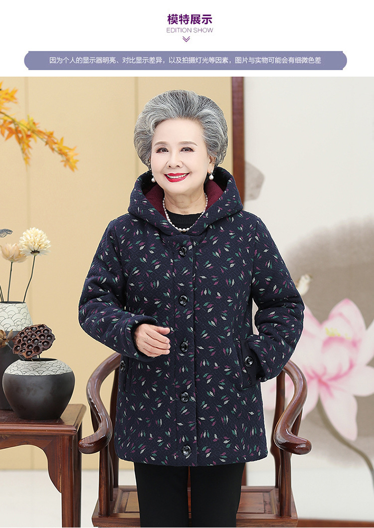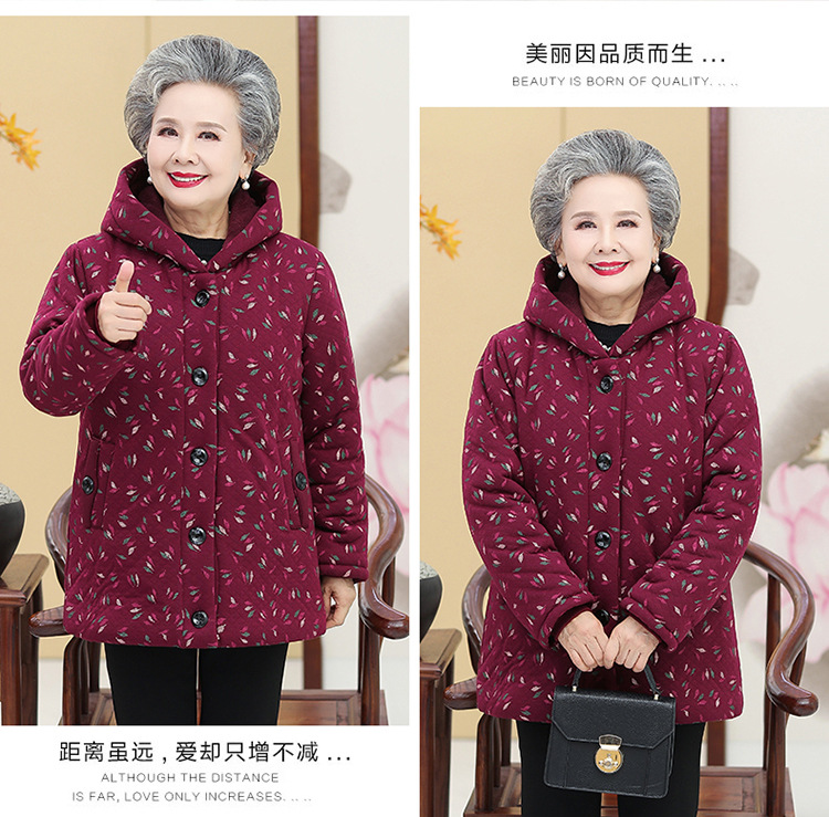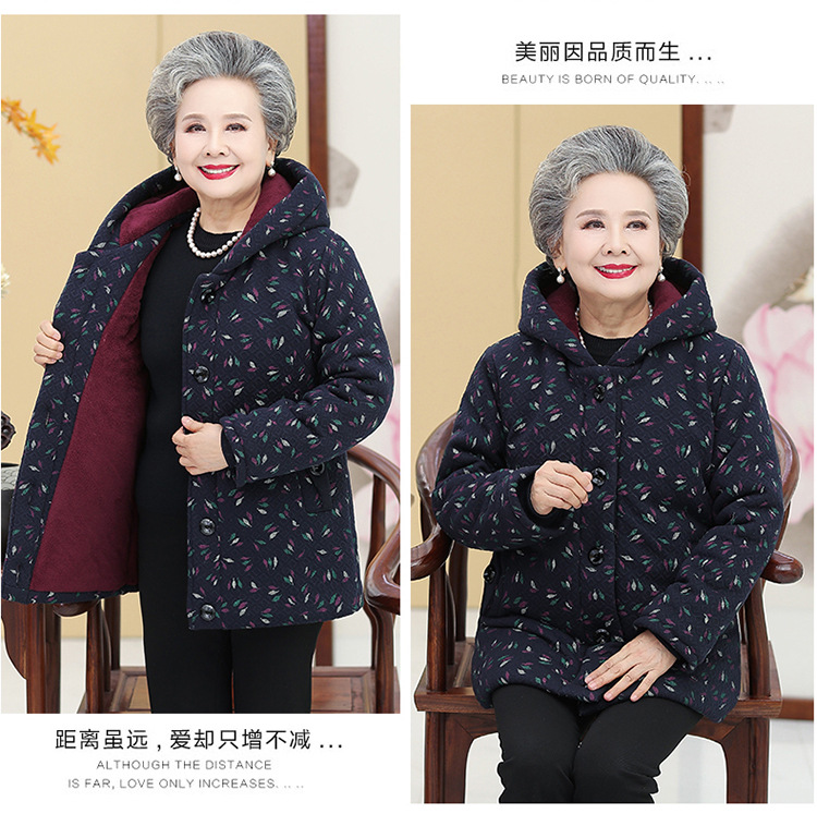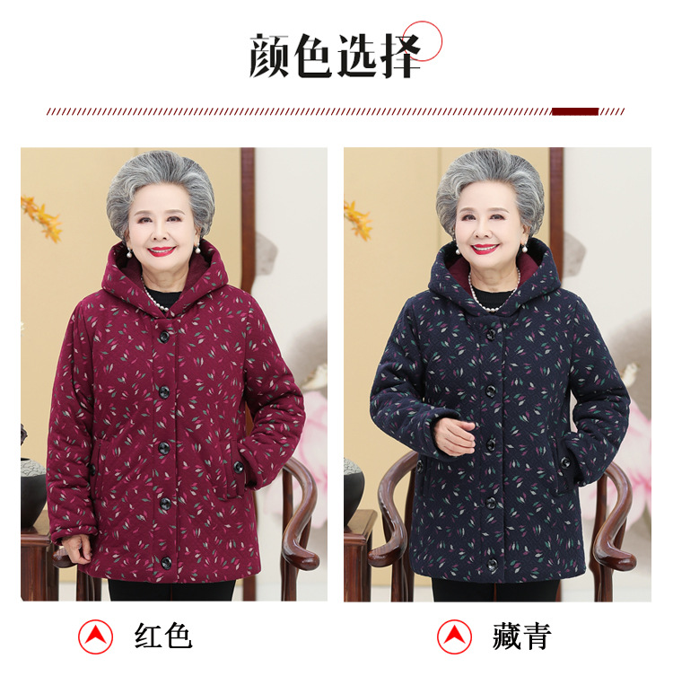【新款中老年人棉衣女奶奶冬装】加绒加厚外套老太太衣服妈妈连帽棉袄